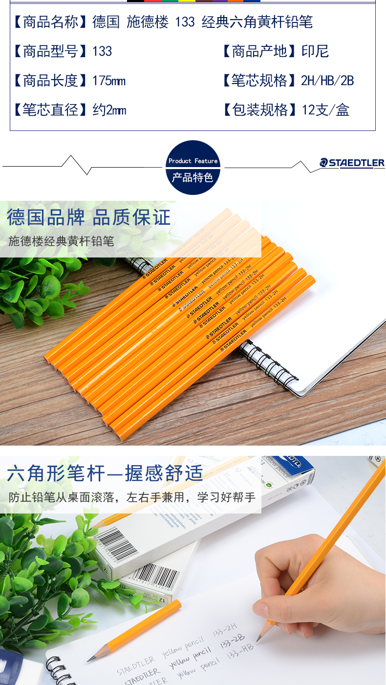 施德楼黄色木杆铅笔133-2H