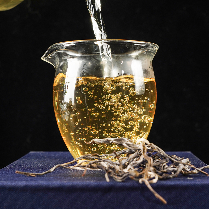 茶汤金黄厚实,干净明亮,茶香气劲高扬,花香独特,清淡中略带甘甜,清柔中又夹带刚劲,强而有力的茶气,让品饮的过程中,体现出茶汤的刚阳之气,气足韵长,口感丰富而饱满,让你久久难忘。