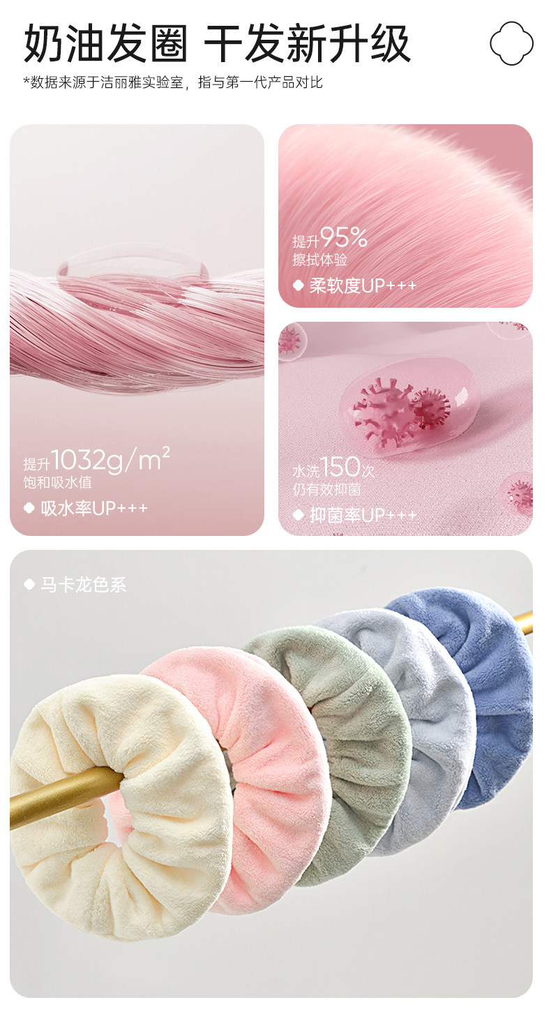 洁丽雅束发带吸水10A抑菌干发圈盘发护发2025新款加大加厚包头巾