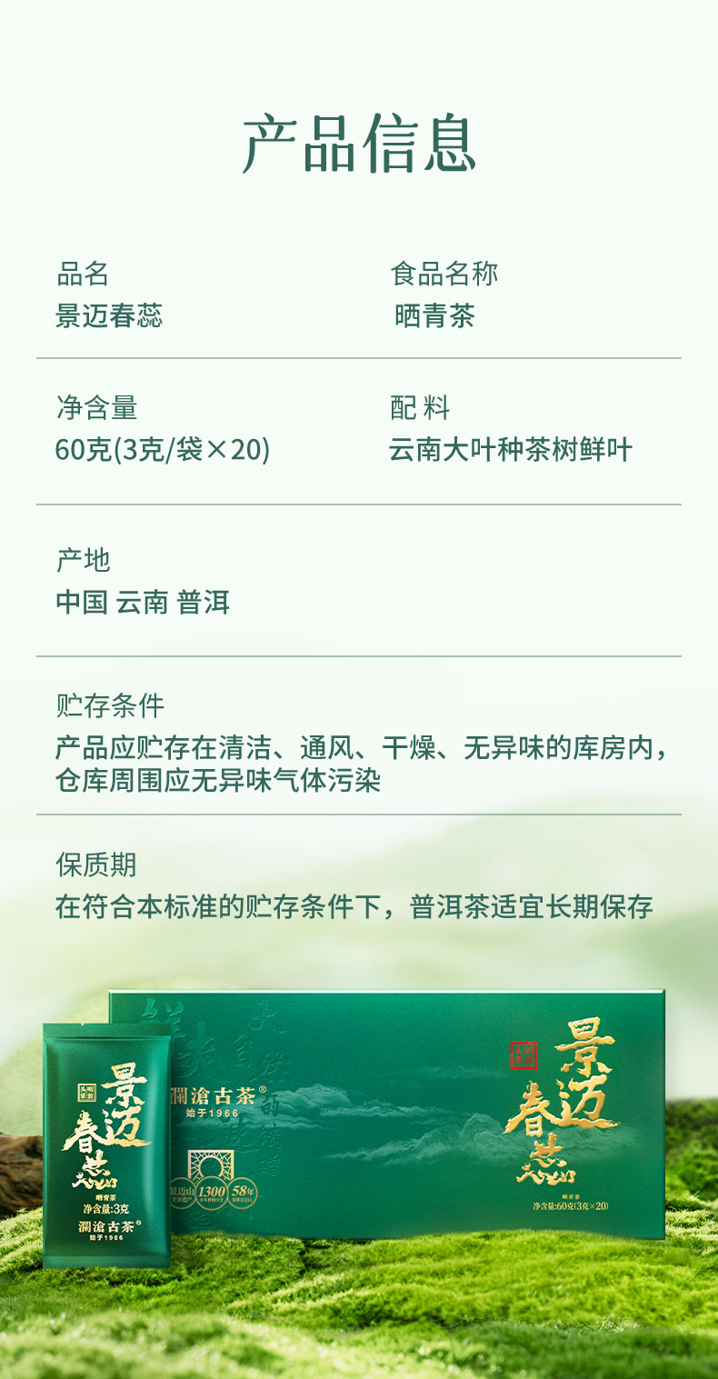 澜沧古茶2024年景迈春蕊景迈山明前特级春散茶普洱茶生茶60g(3g*20包)