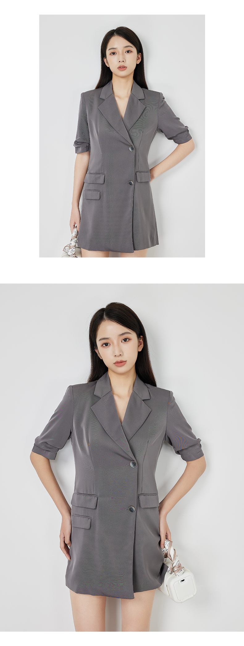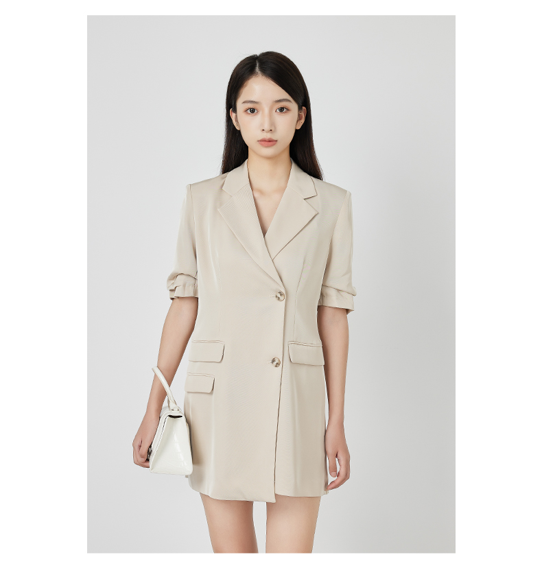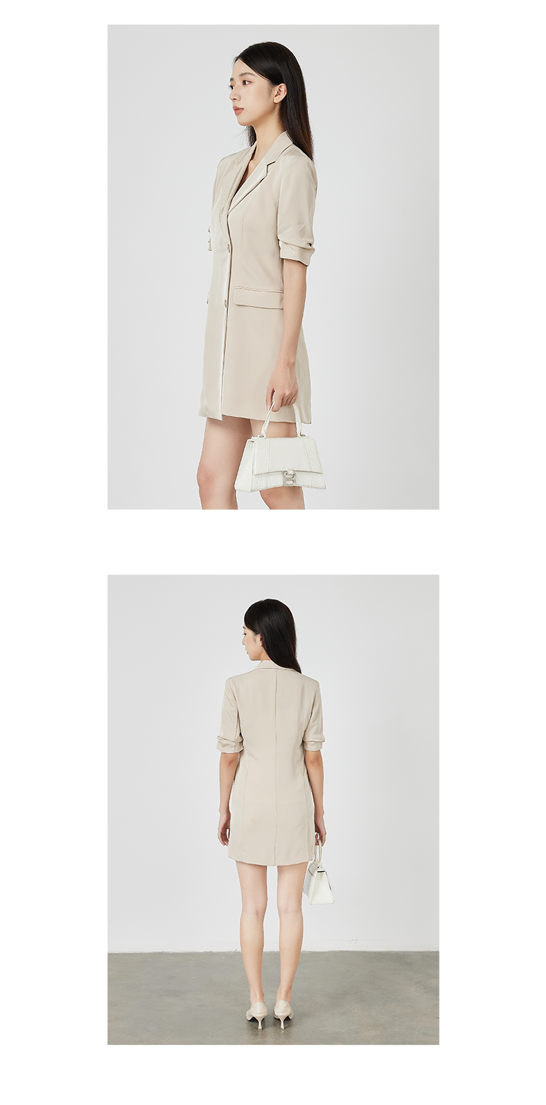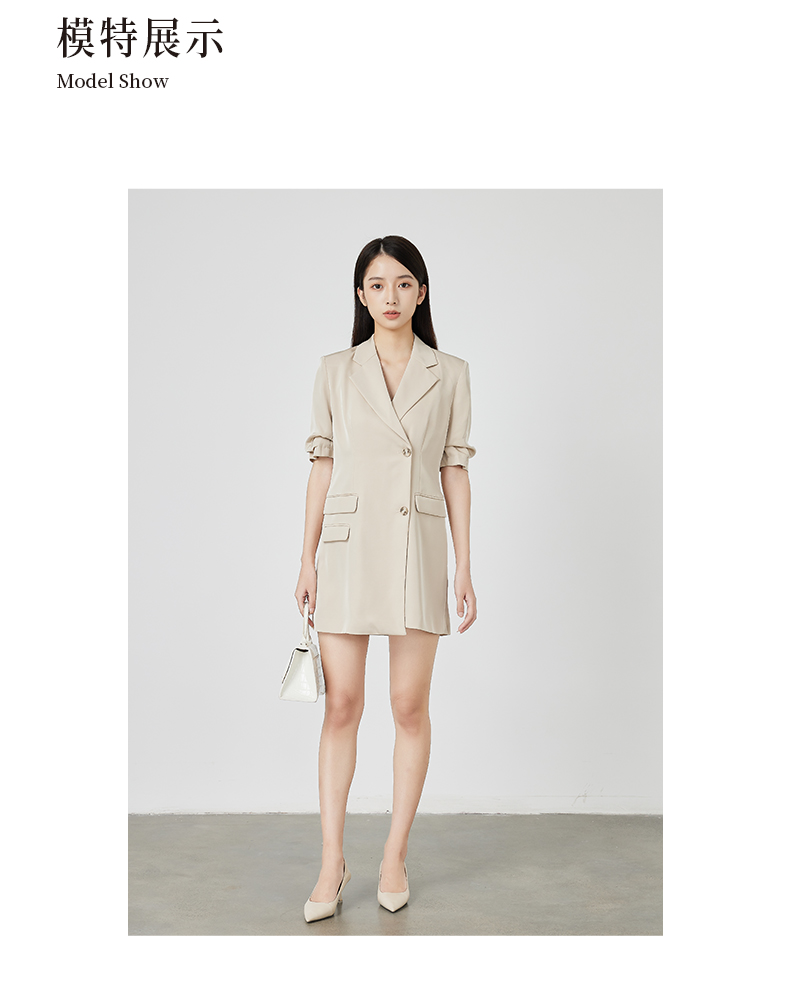 NUTS春秋季新款时尚通勤风西装款式设计感中袖连衣裙女231102001B