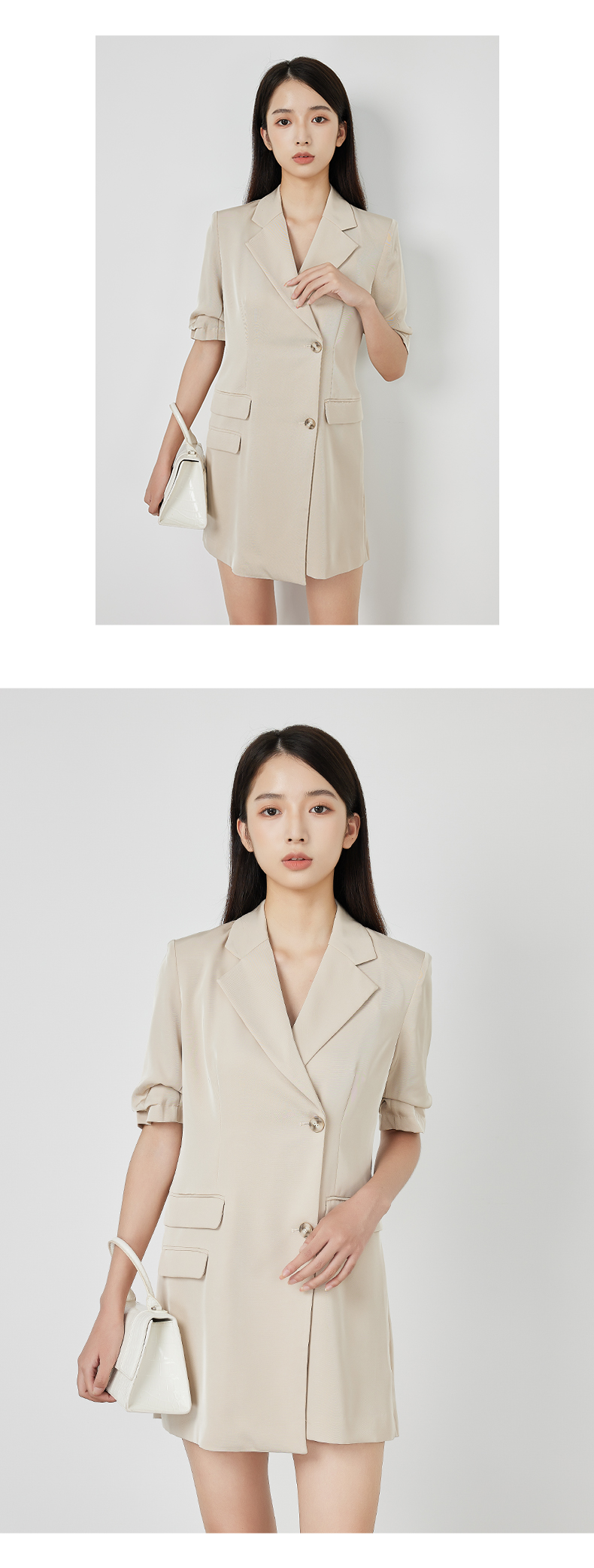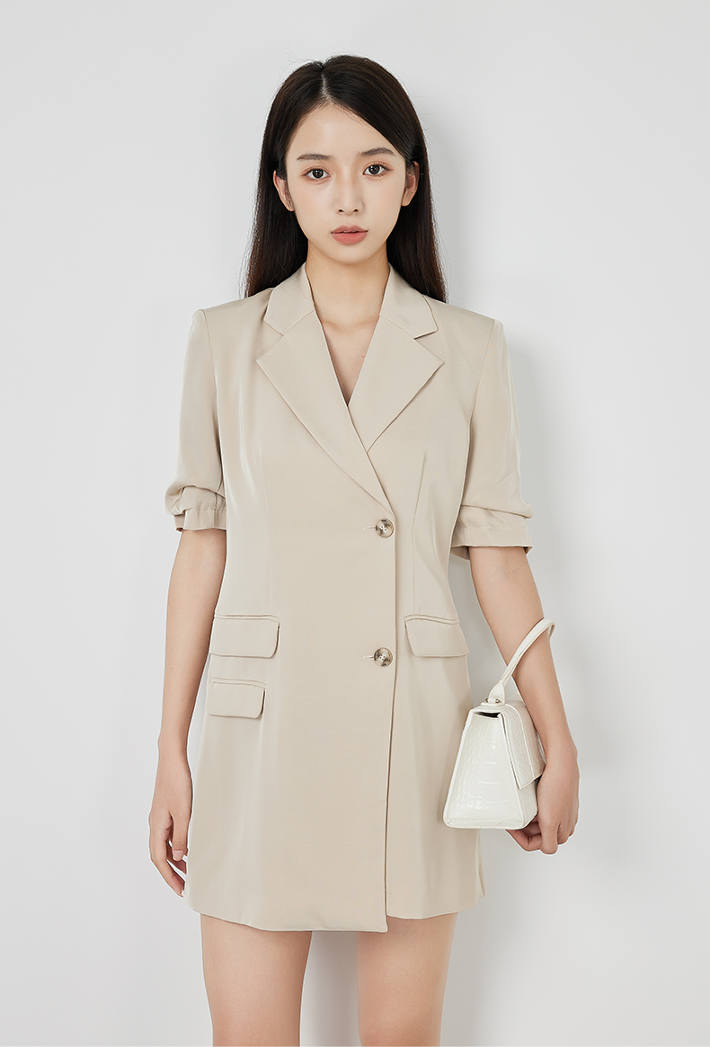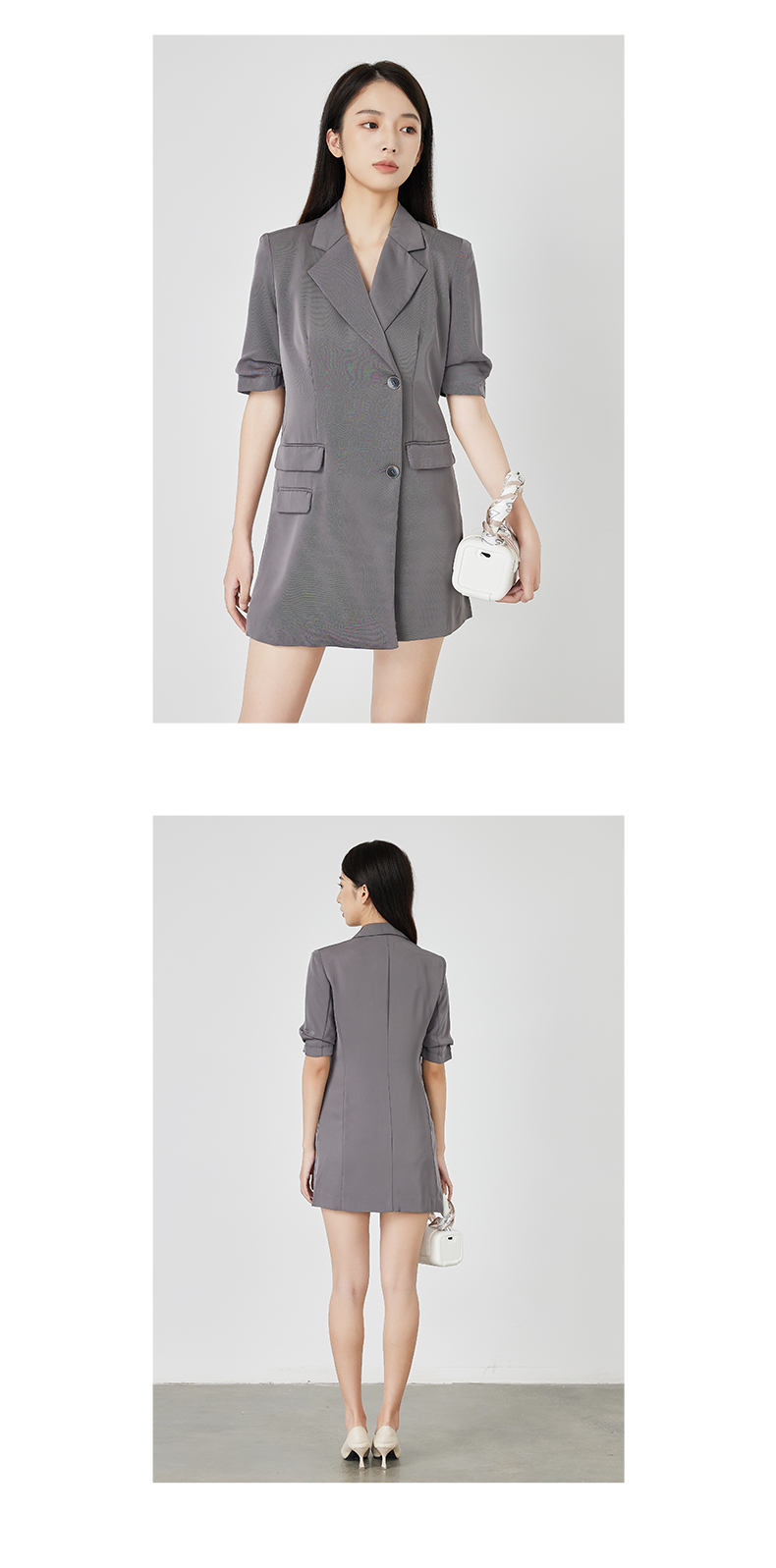 NUTS春秋季新款时尚通勤风西装款式设计感中袖连衣裙女231102001B