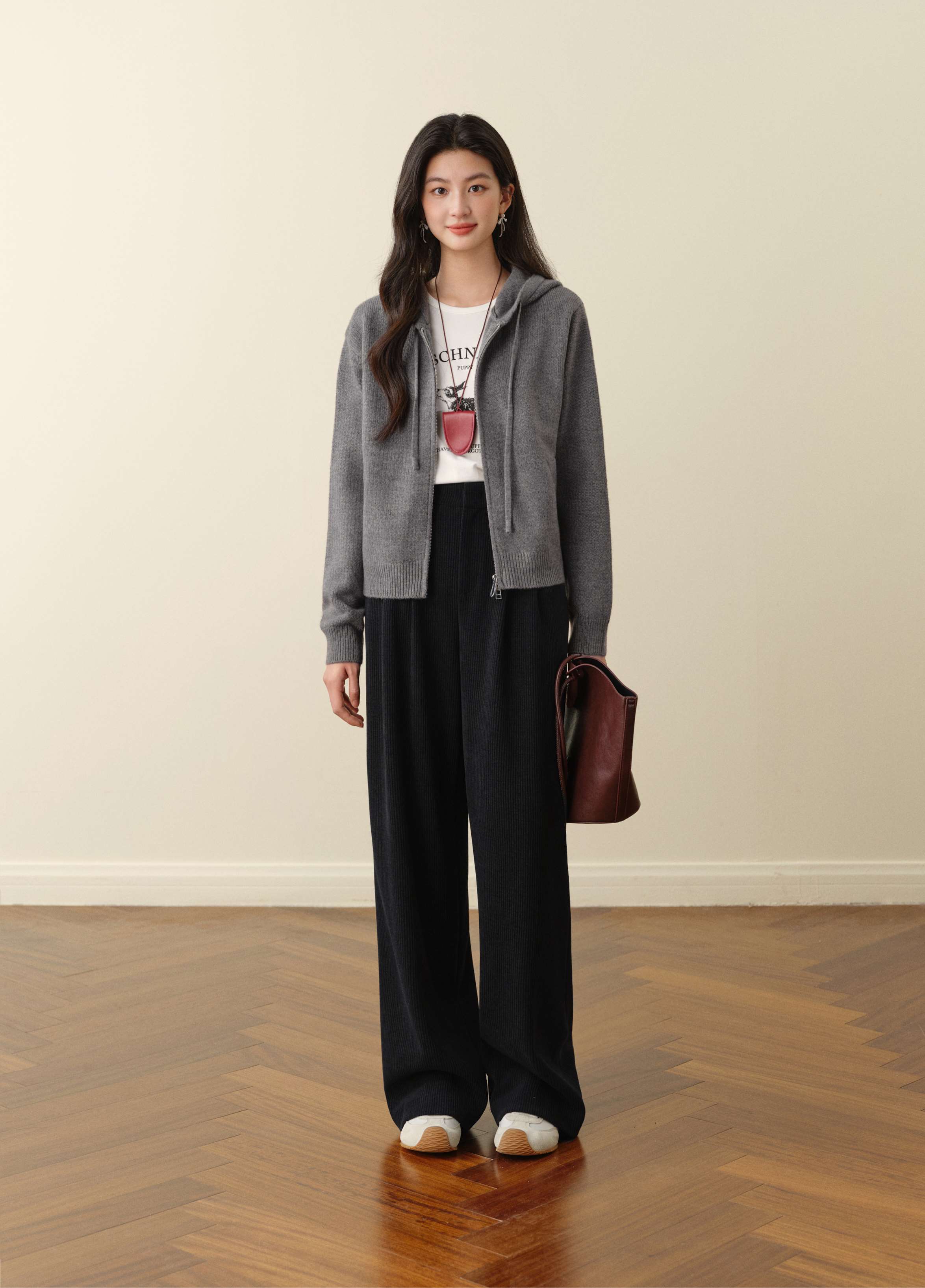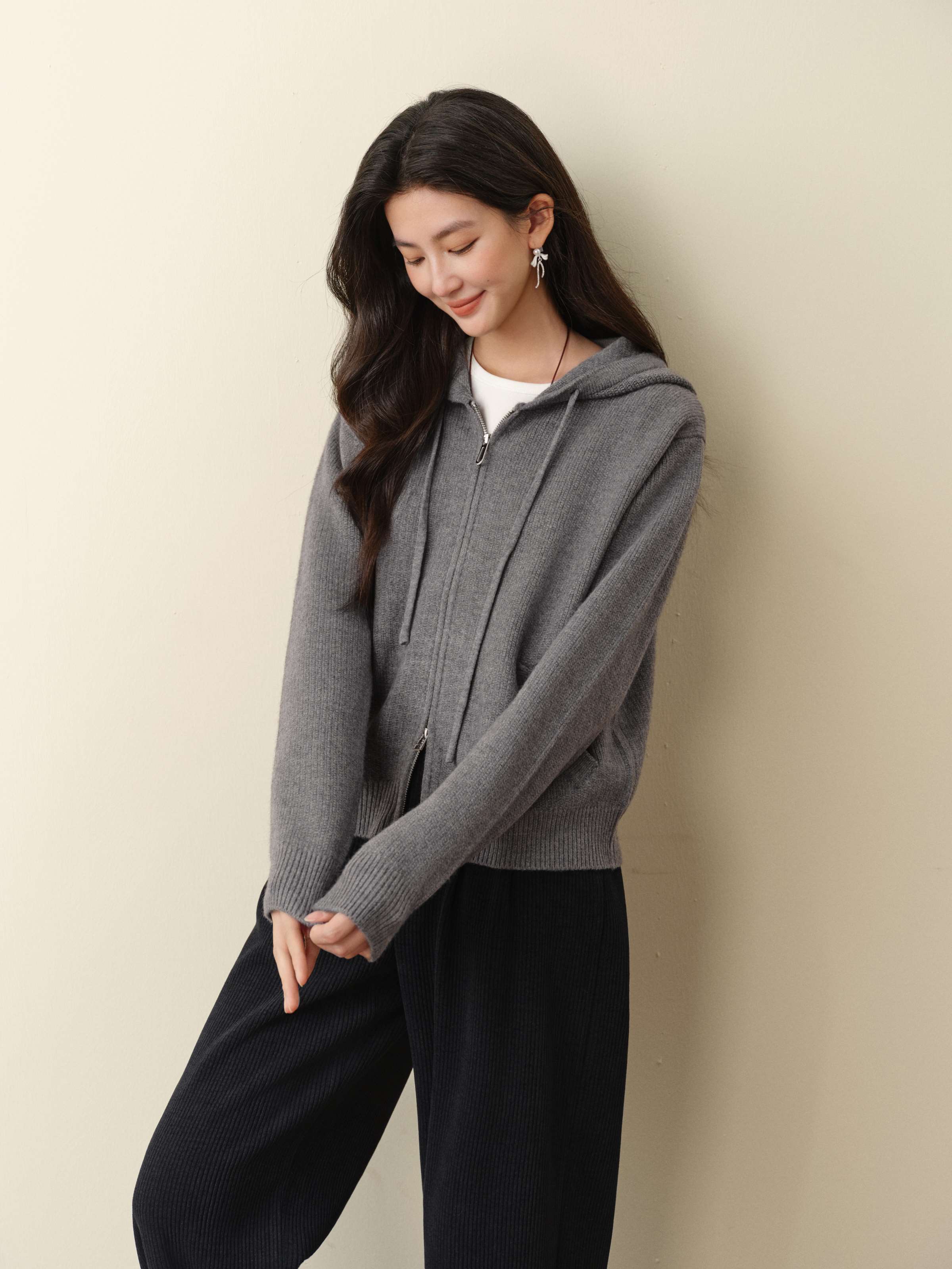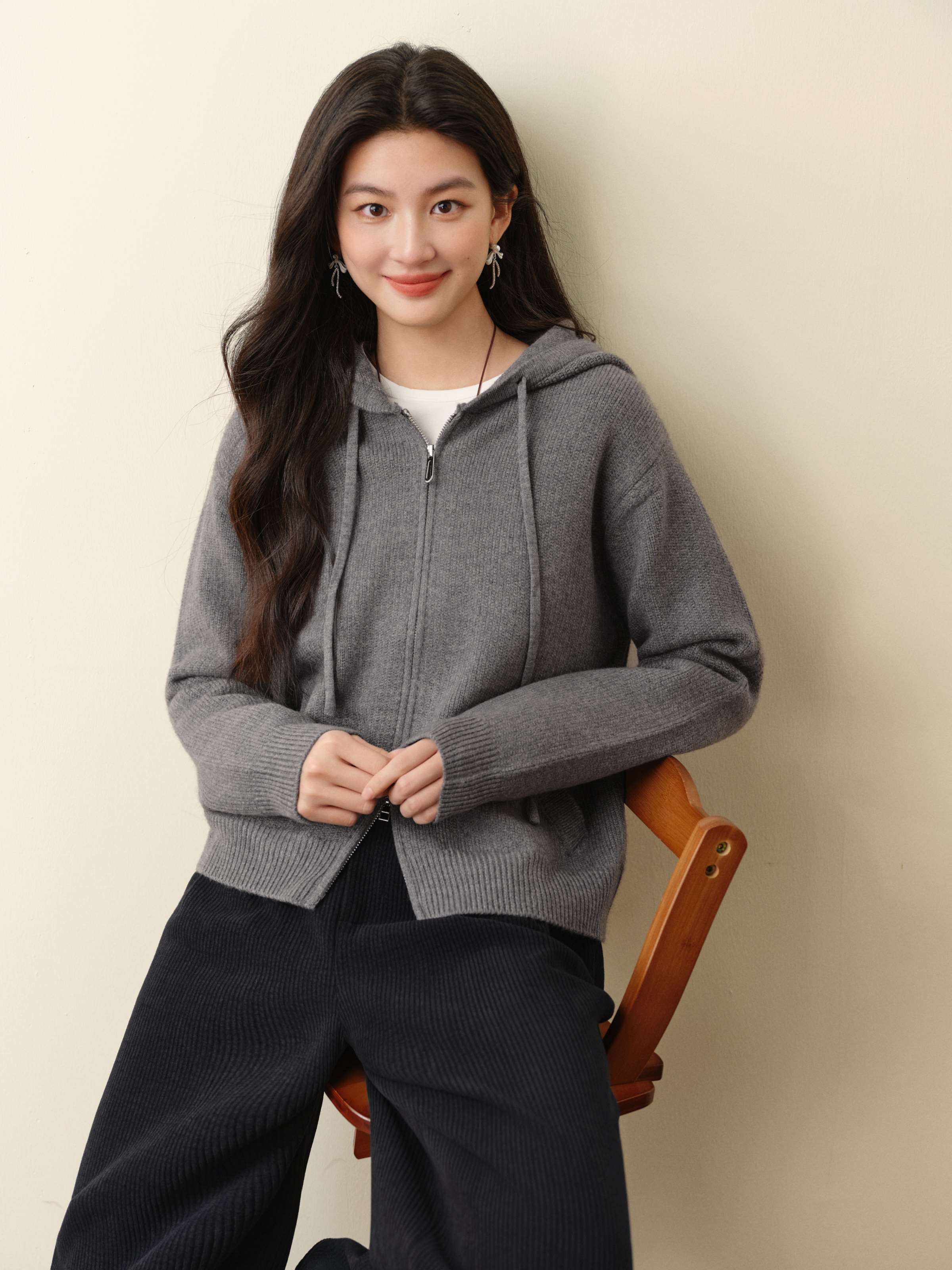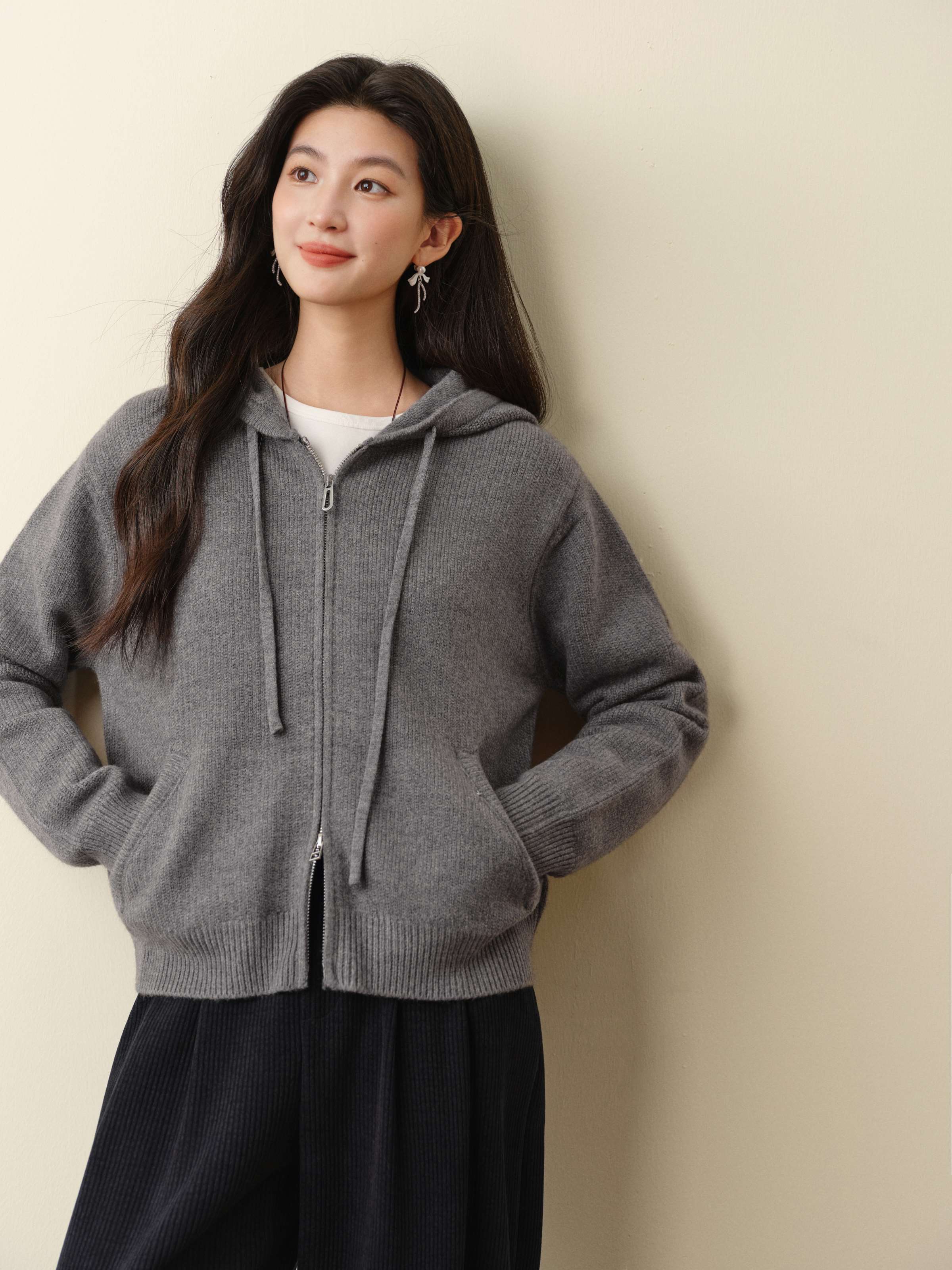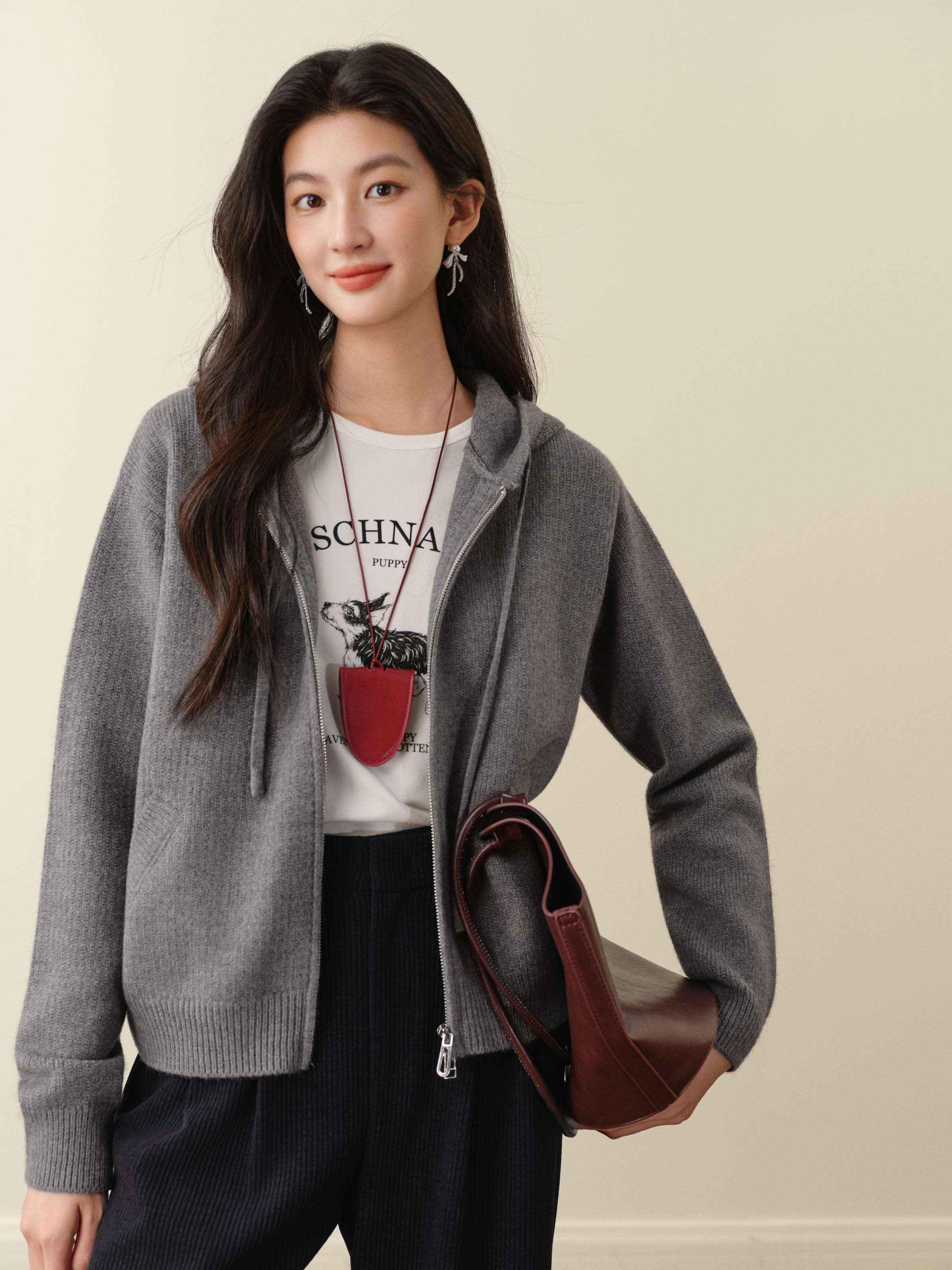 【严选】诗凡黎双拉链韩系慵懒连帽针织开衫7G9433081-4