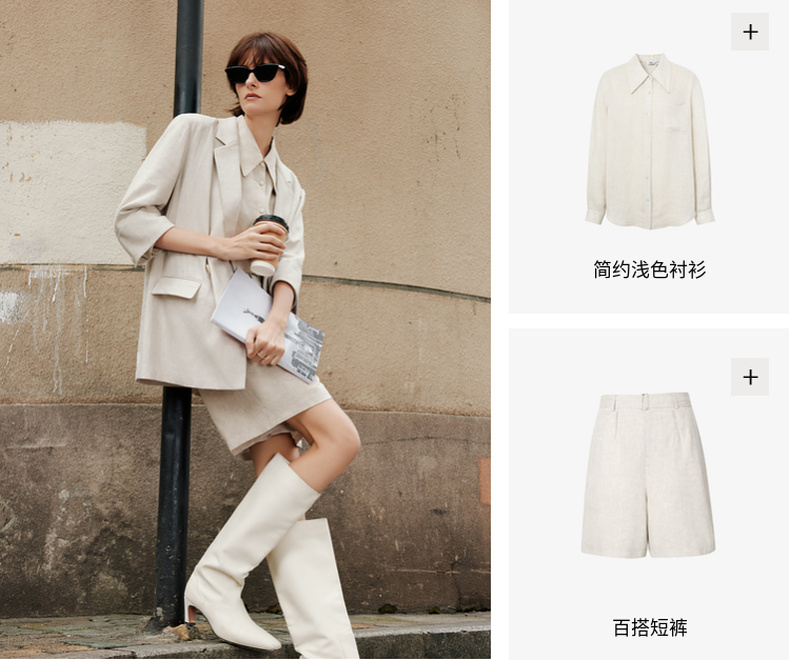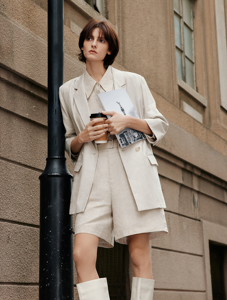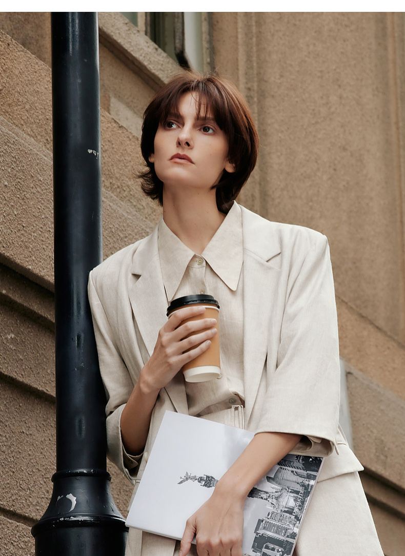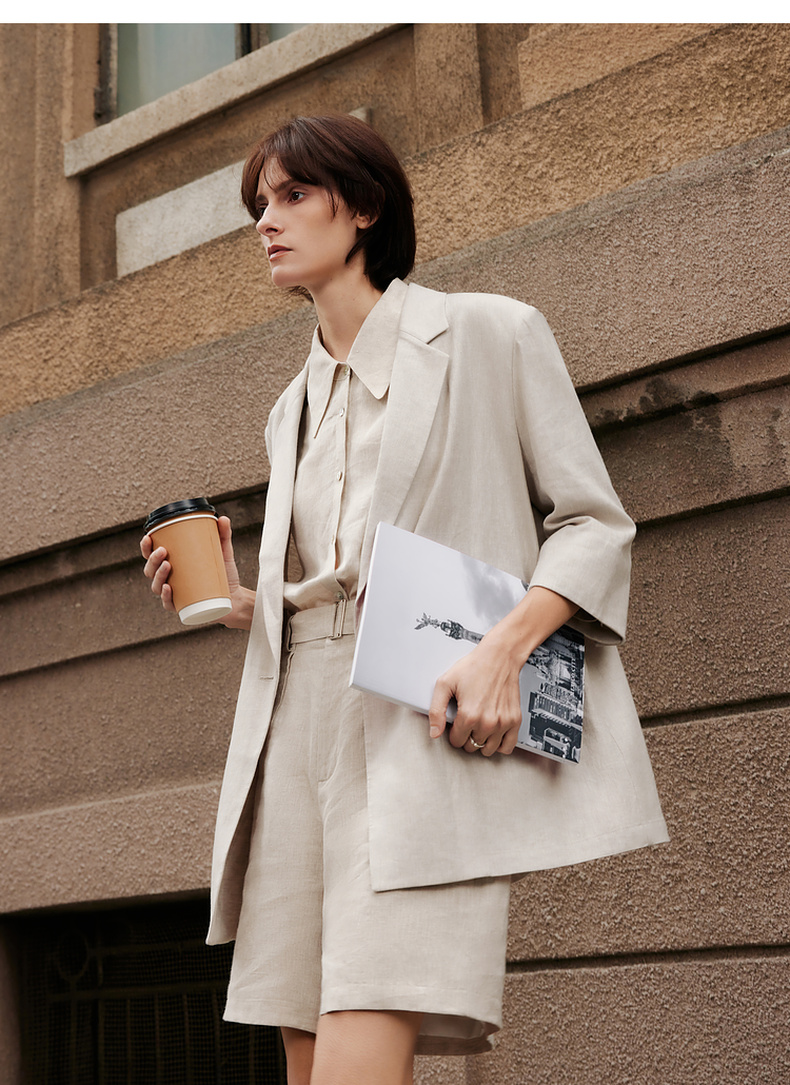 【商场同款】麦檬七分袖亚麻浅色百搭无里西装5F4113081