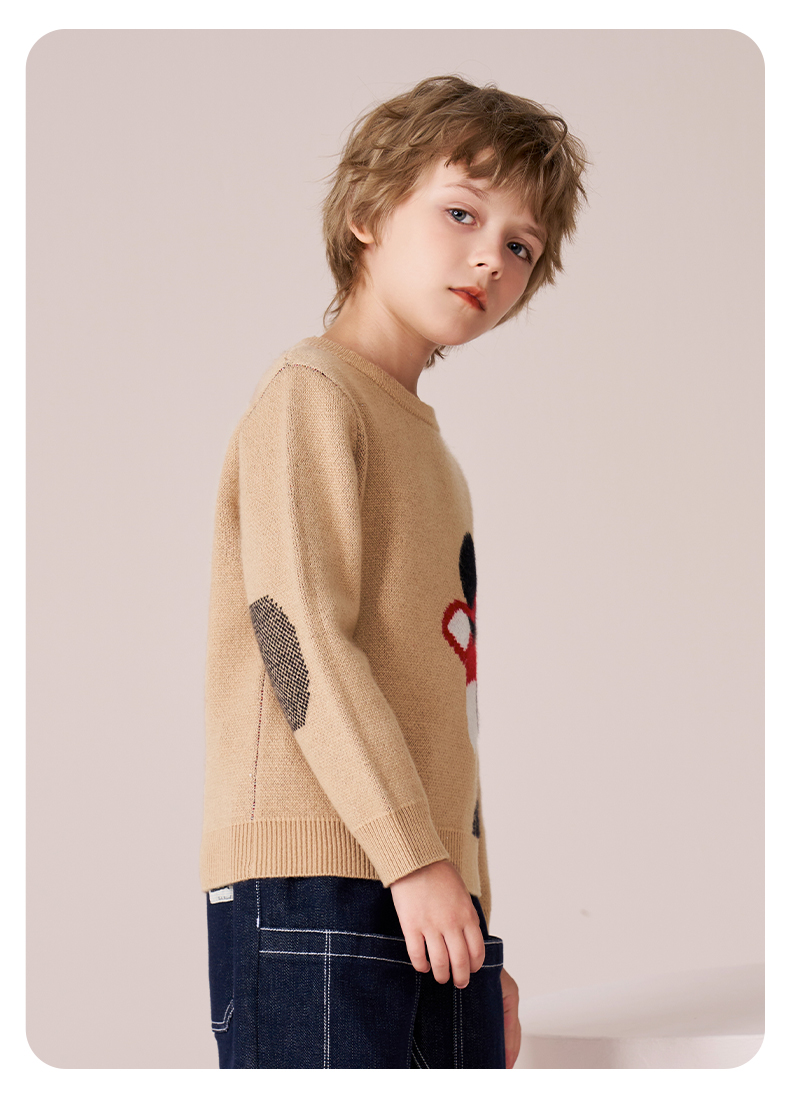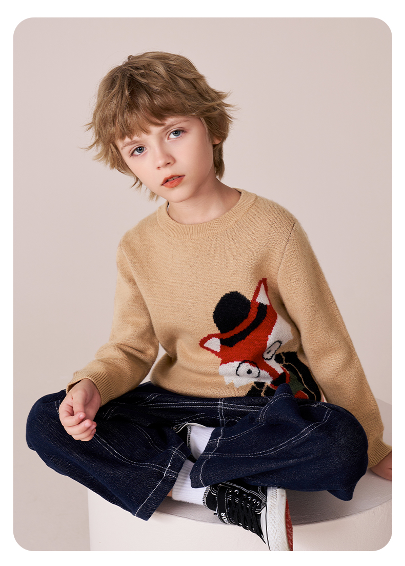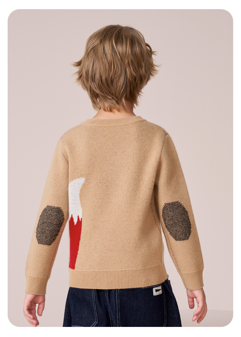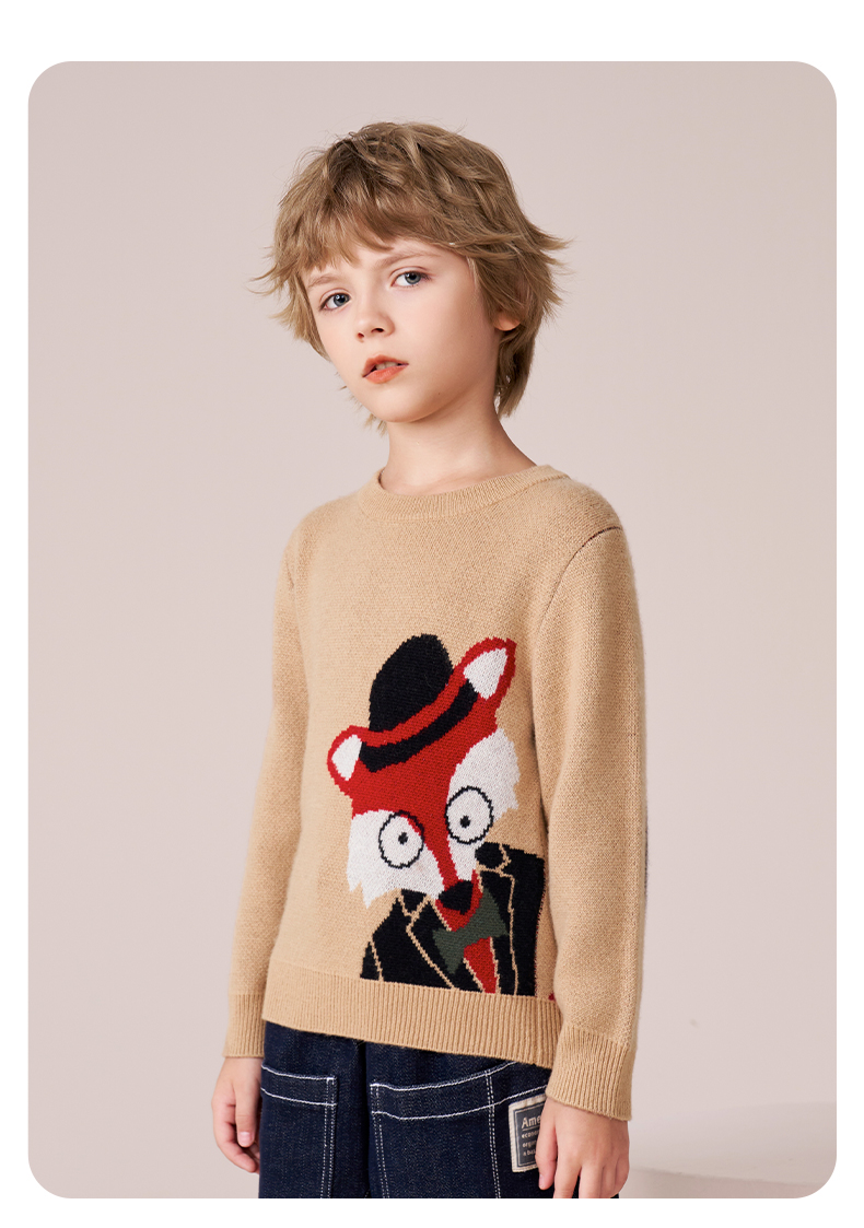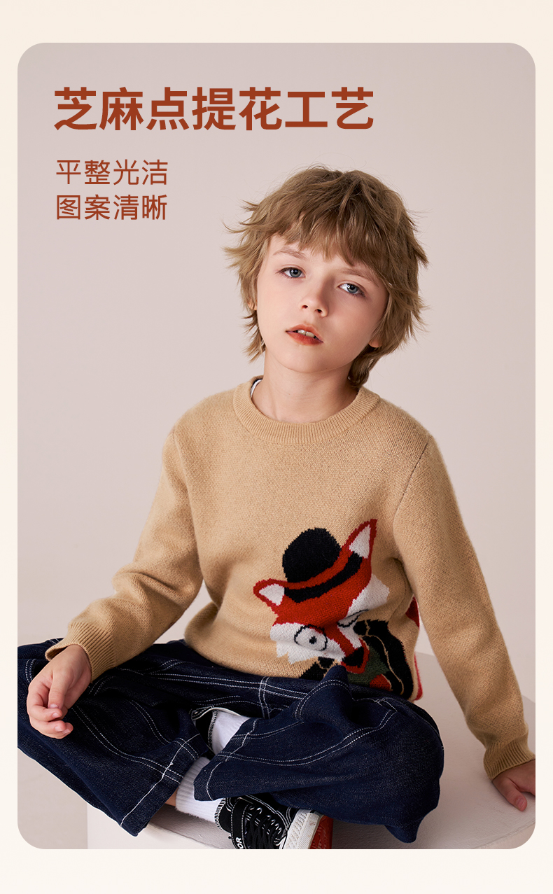 mettekids儿童100%羊绒衫2023秋冬新款提花工艺加厚针织男童毛衣