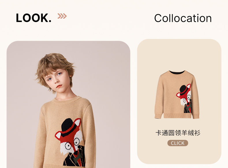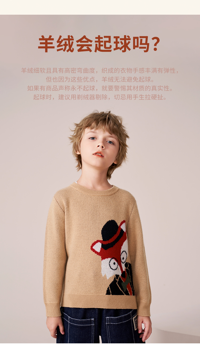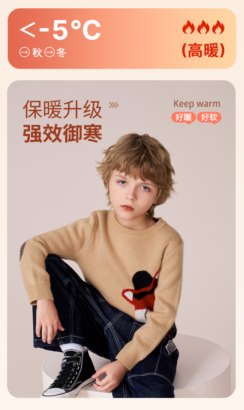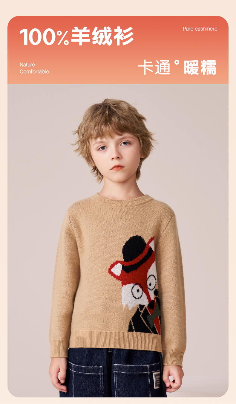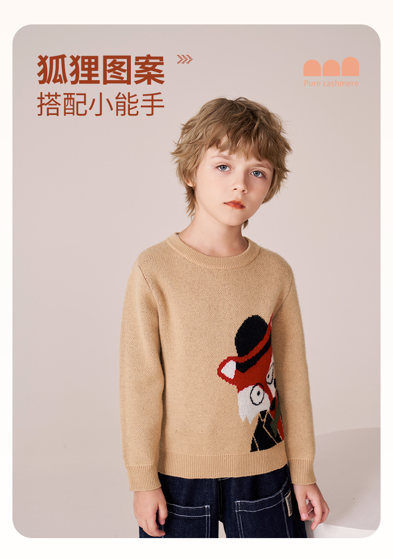 mettekids儿童100%羊绒衫2023秋冬新款提花工艺加厚针织男童毛衣