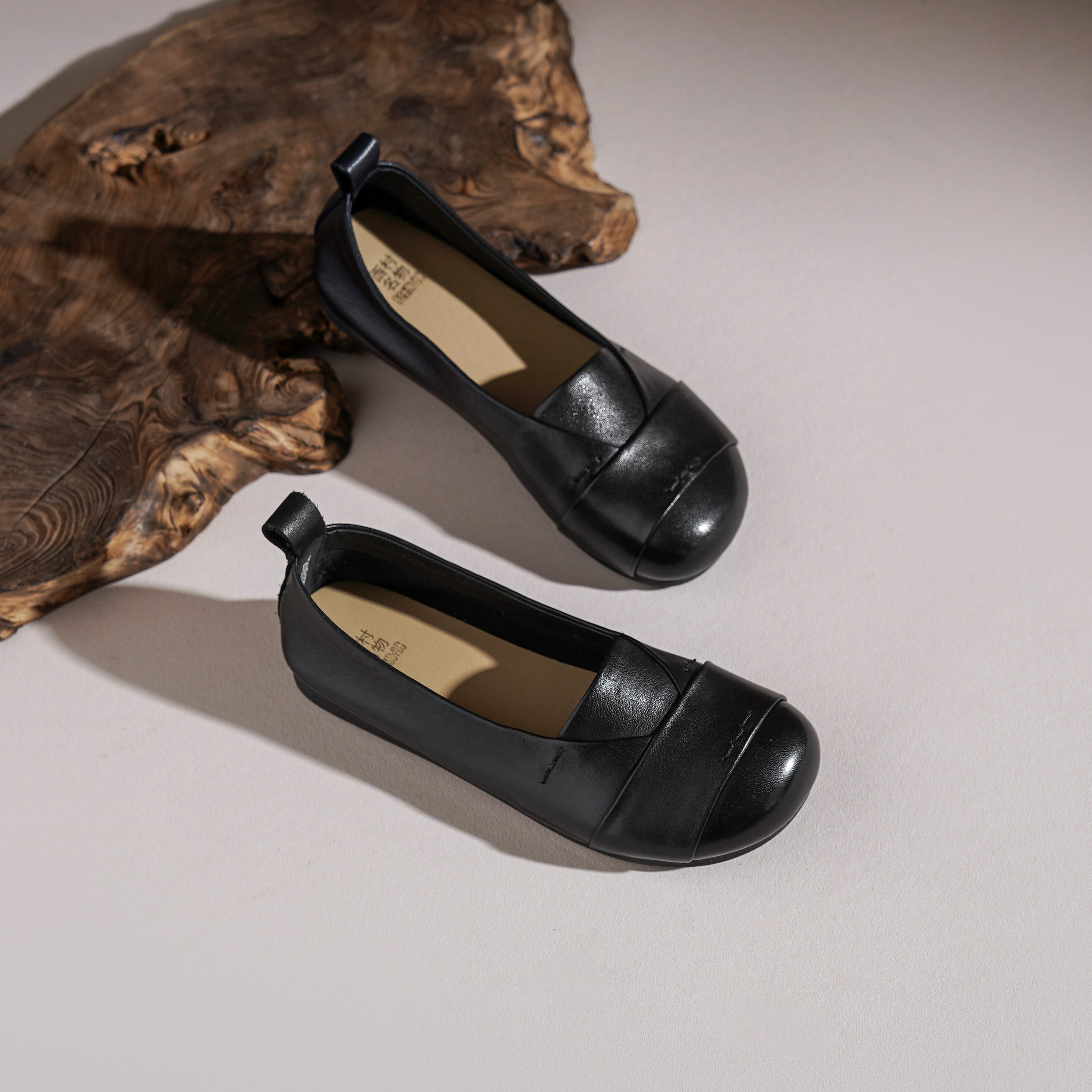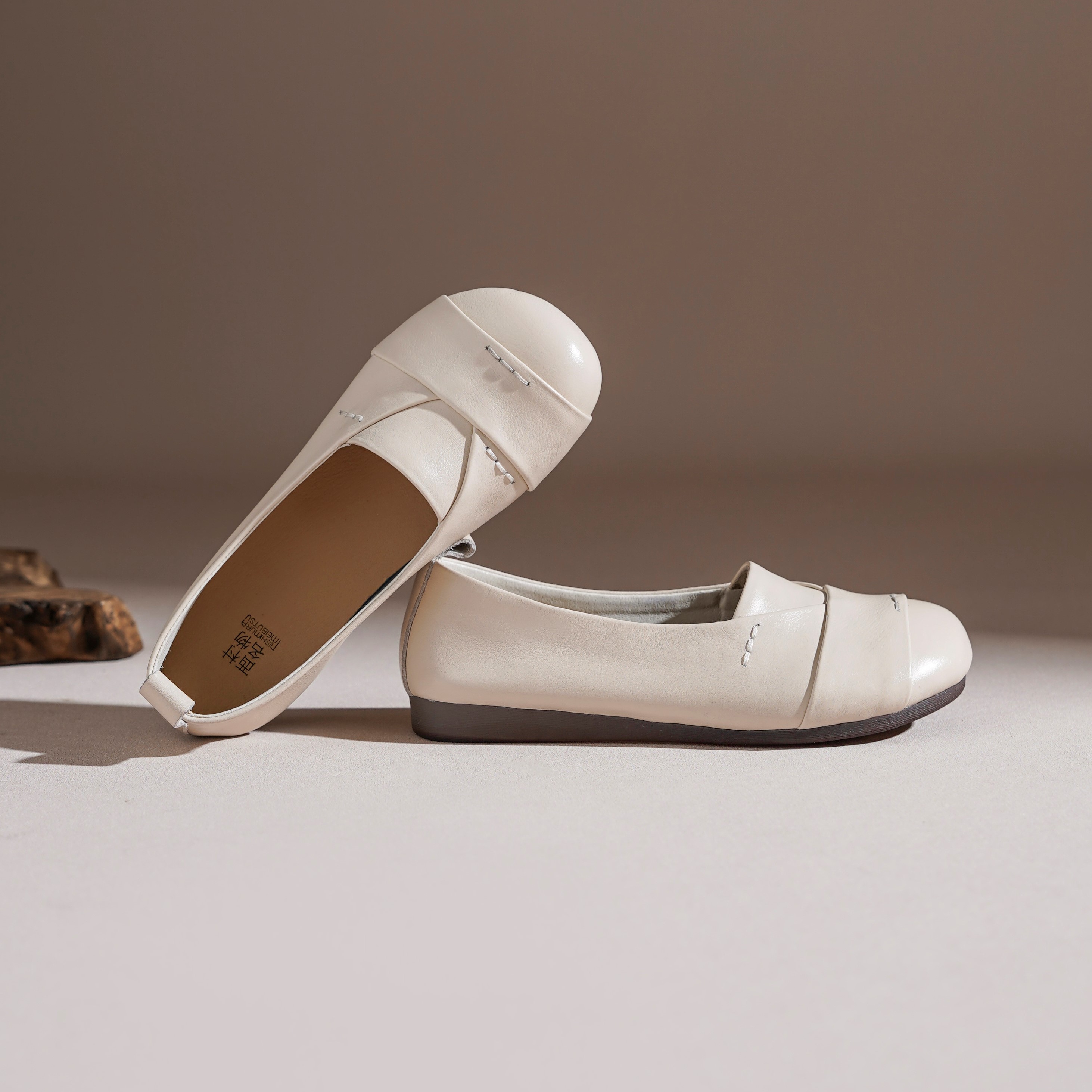 【牛皮革】西村名物2026年春季新款舒适平跟软底软面浅口单鞋妈妈鞋T26AE17791