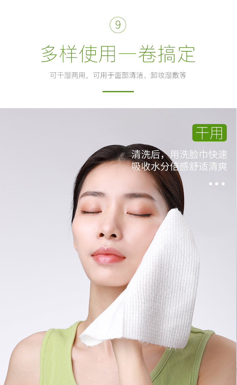 尔木萄绿森林加厚卷筒洗脸巾70片一次性纯棉加厚绵柔洁面巾纸擦脸卷筒式无菌卸妆棉女