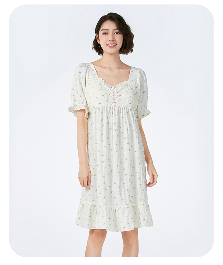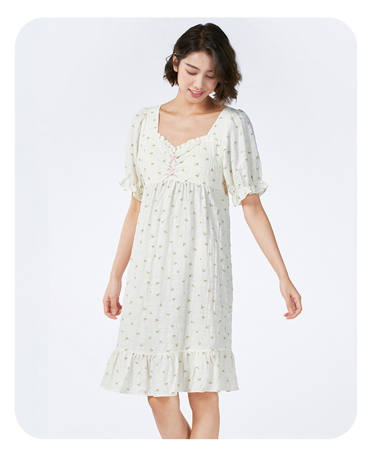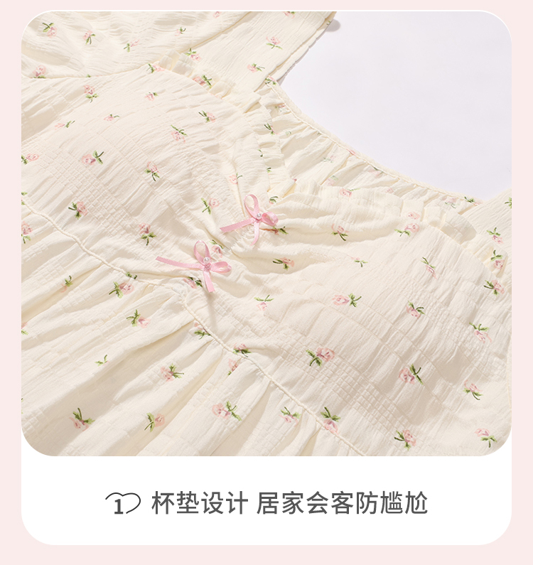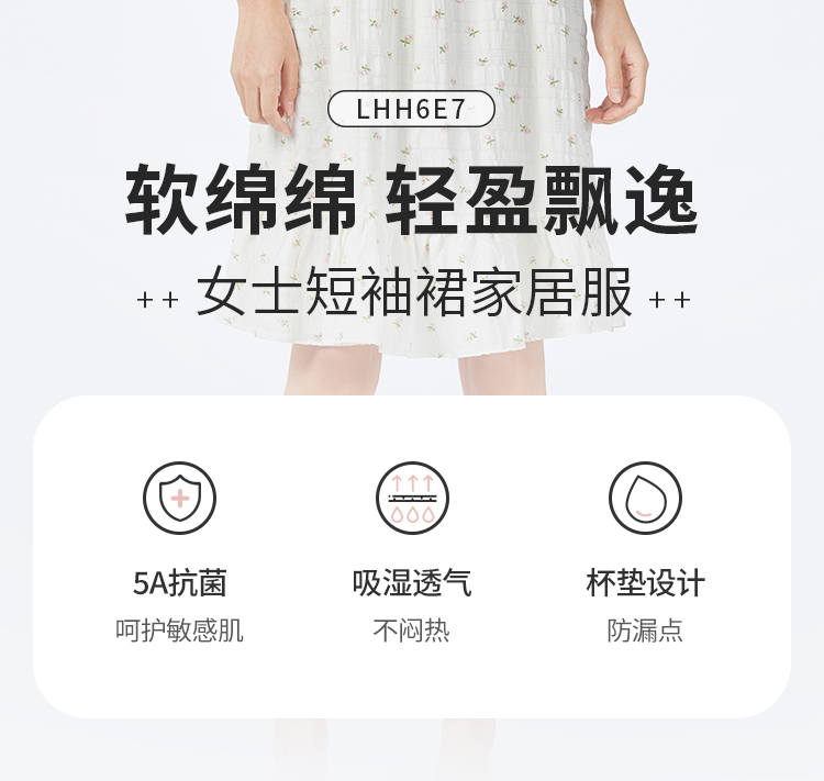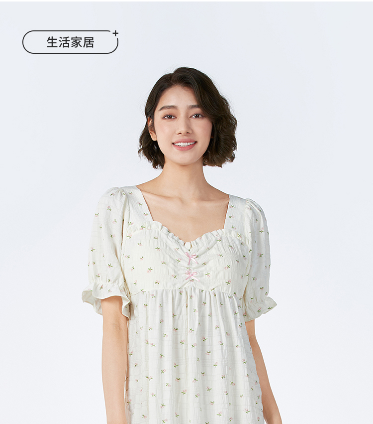 都市丽人女士软绵绵短袖套装薄梭织皱布提条生活家居短袖类LHH6E7