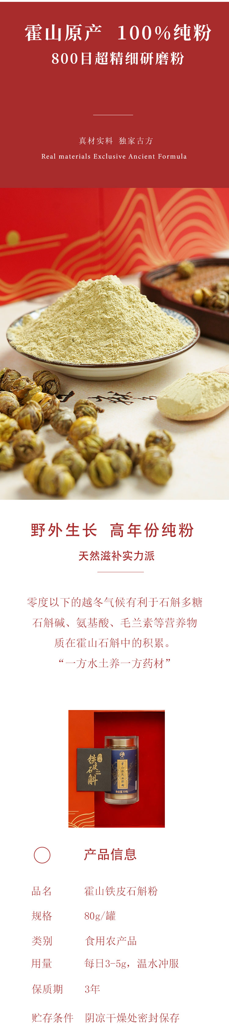 【霍山铁皮石斛粉】精选霍山5年以上铁皮石斛磨粉 易于吸收 食用便捷 方便保存 适合熬夜党/加班党/老胃病……