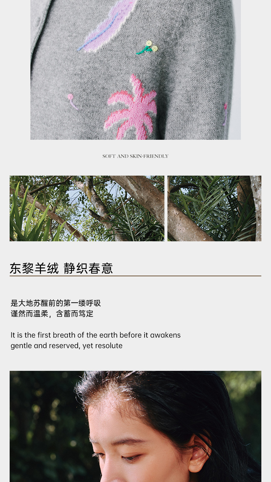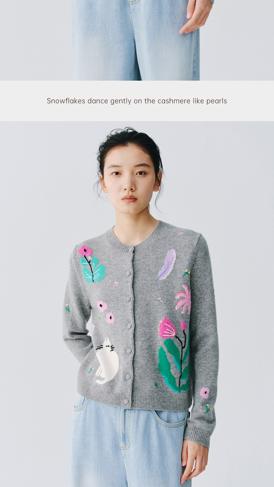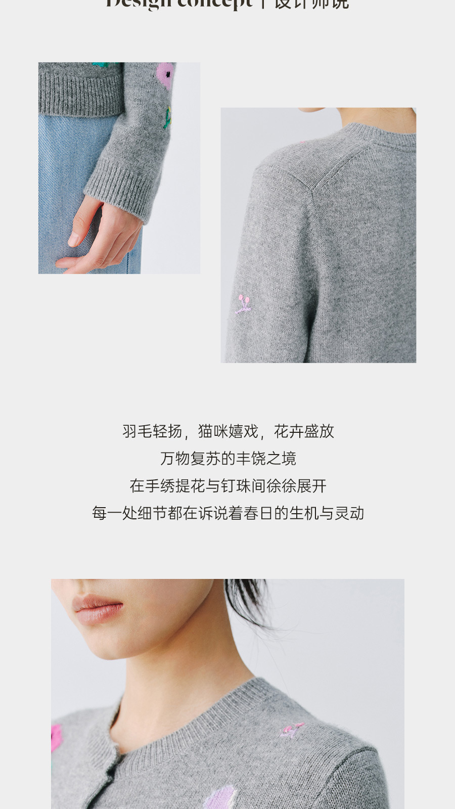 东黎 • 万物复苏 猫猫花园 山羊绒女士春季钉珠手绣提花开衫 6215