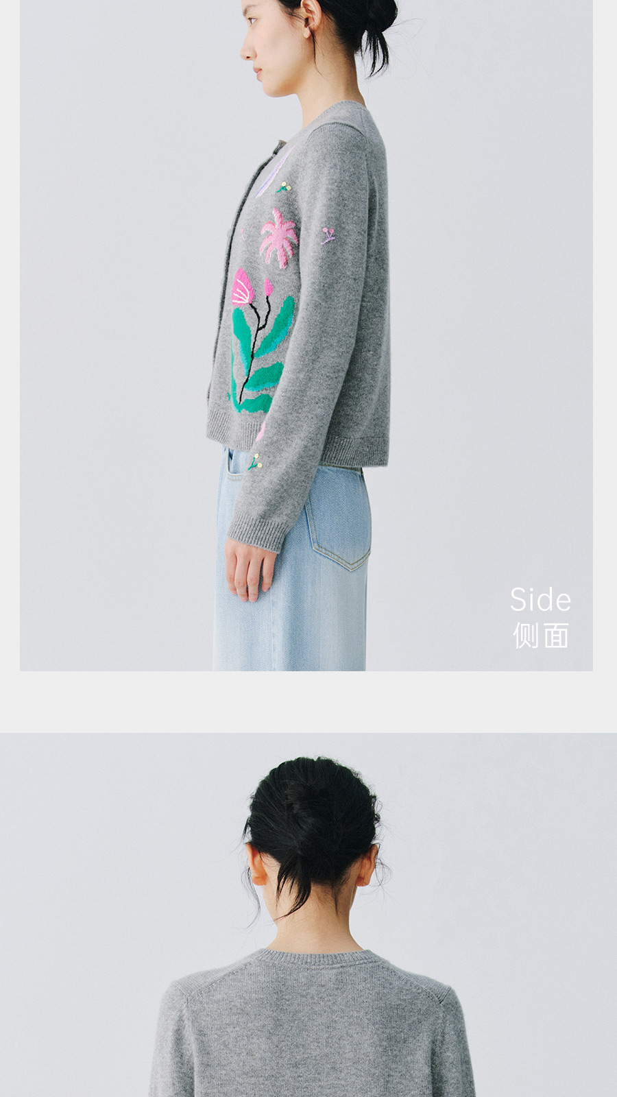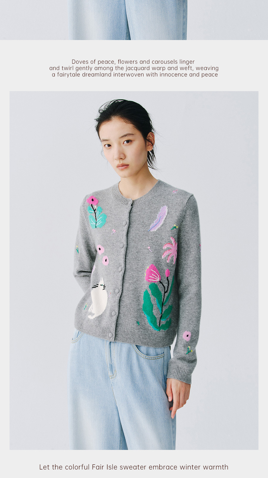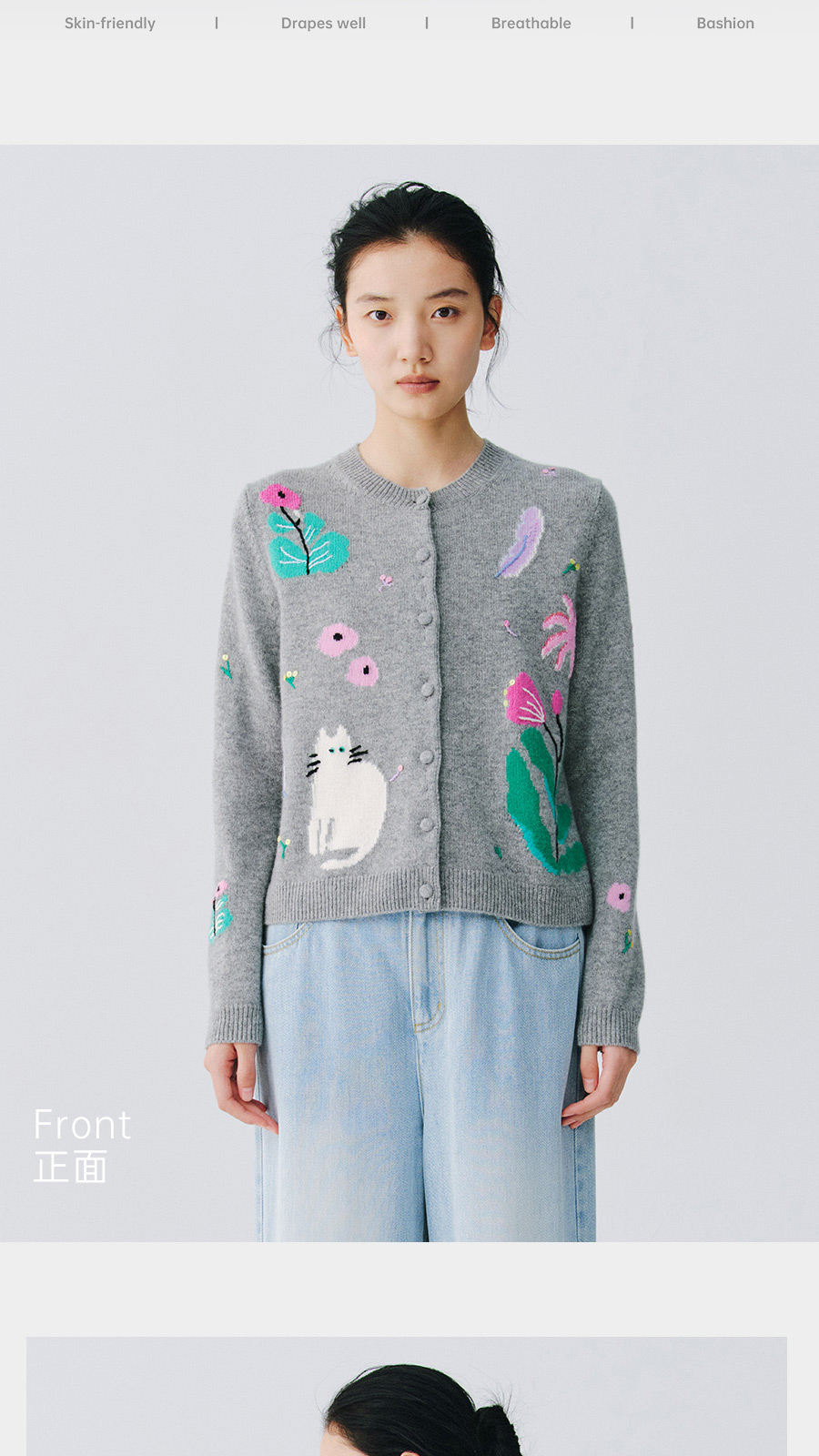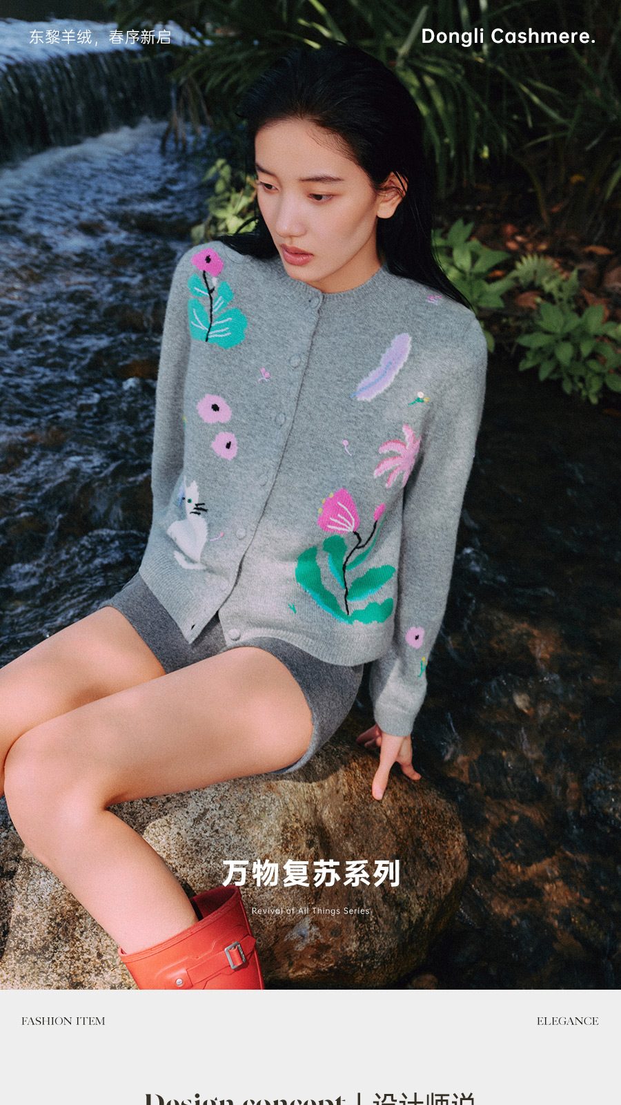 东黎 • 万物复苏 猫猫花园 山羊绒女士春季钉珠手绣提花开衫 6215