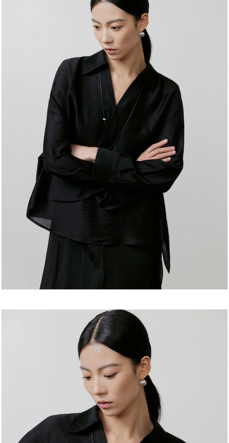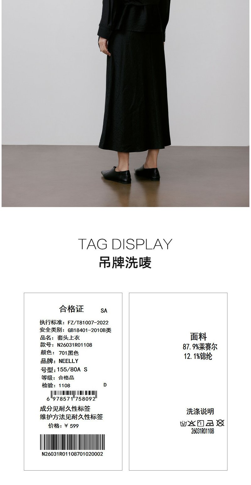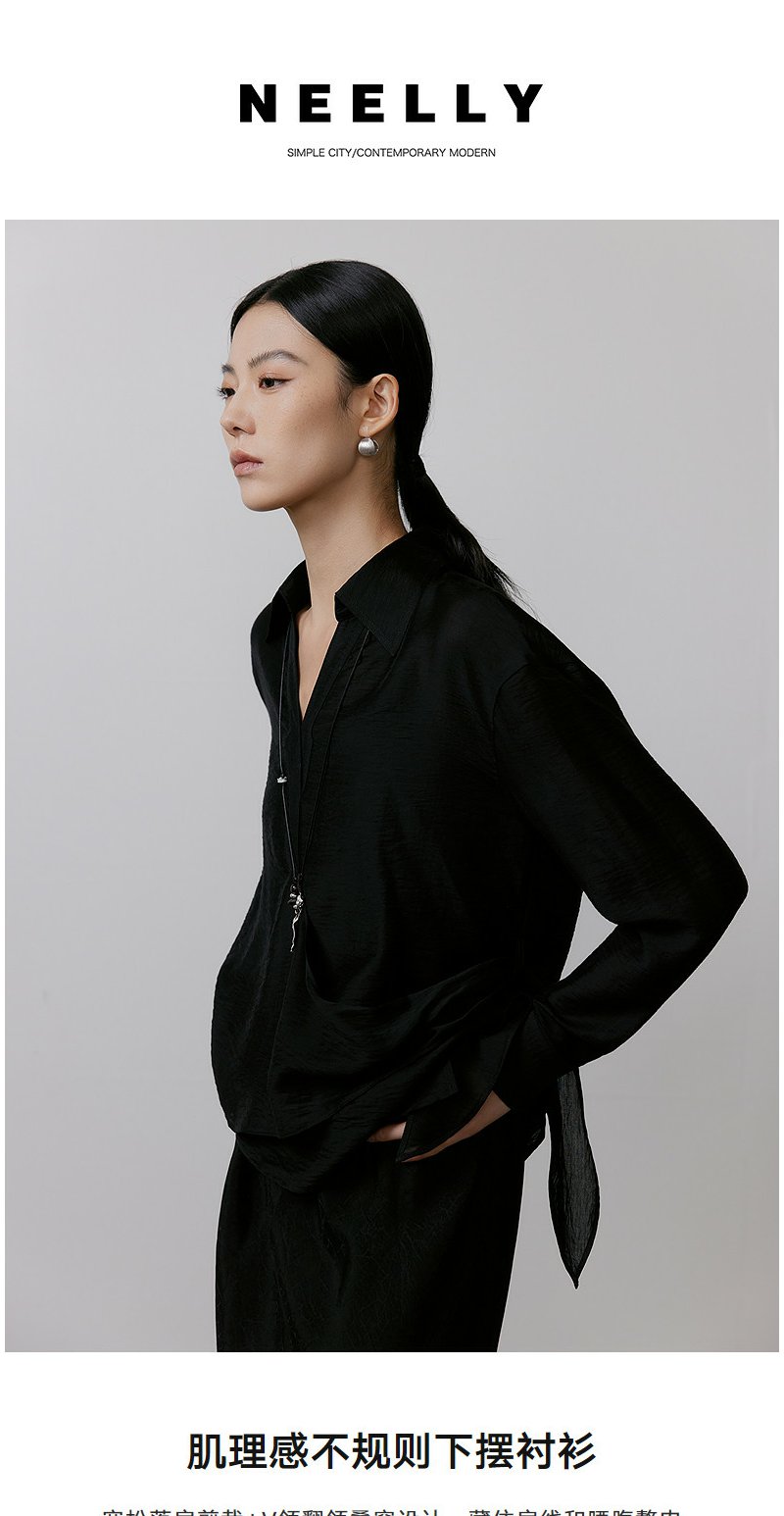 NEELLY纳俪商场同款春季新款休闲肌理感宽松衬衫女随性设计感上衣N26031R01108