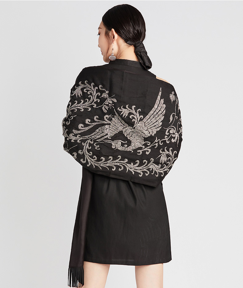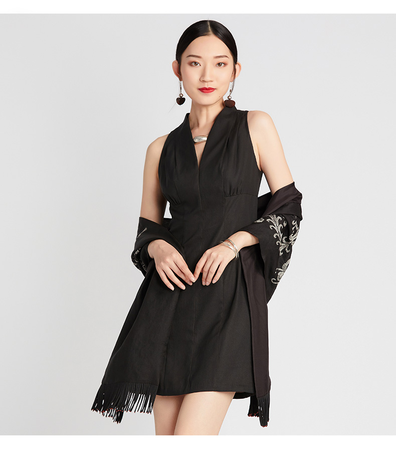 TANGY Collection/天意精品2021年春夏新品真丝V领礼服莨绸连衣裙