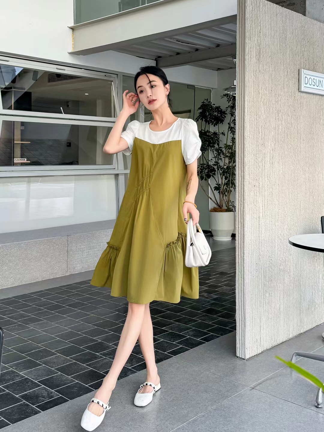88076 # 黑 绿 L-XL 气质减龄泡泡袖宽松连衣裙 夏季新款短裙小个子