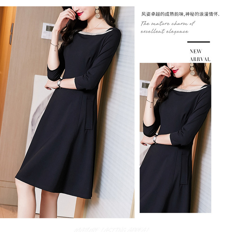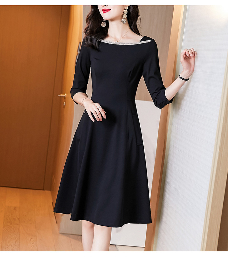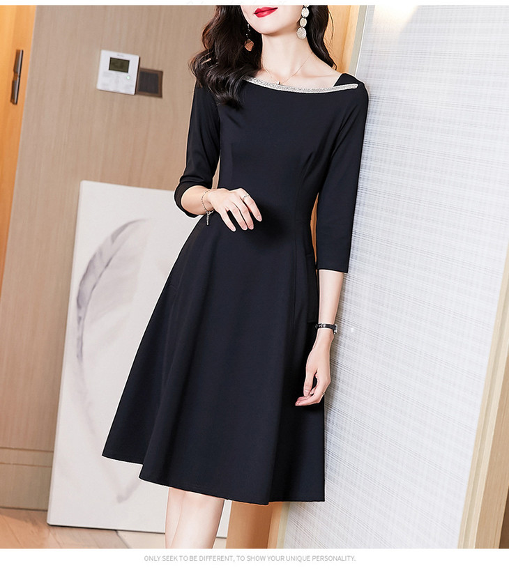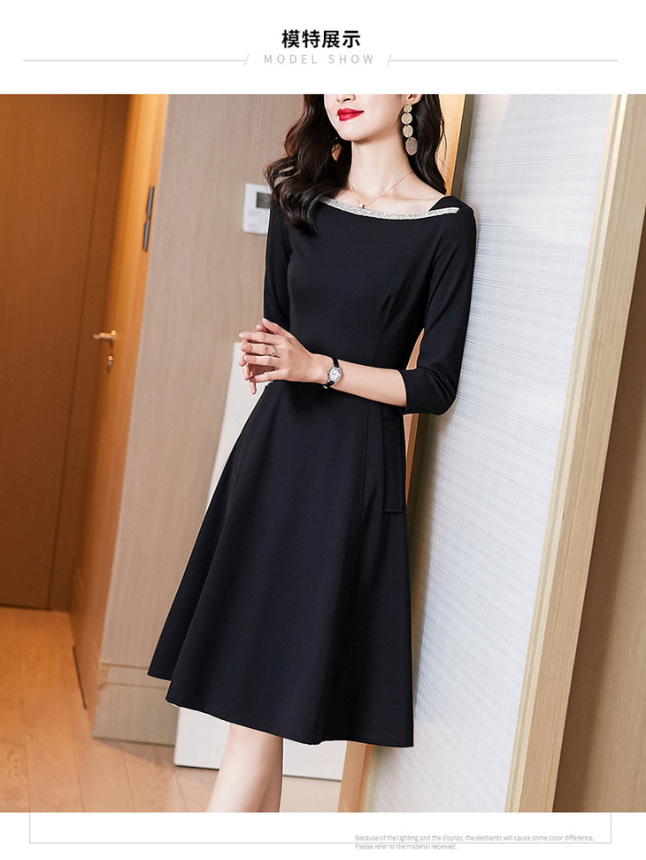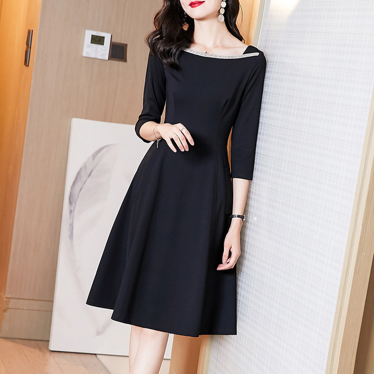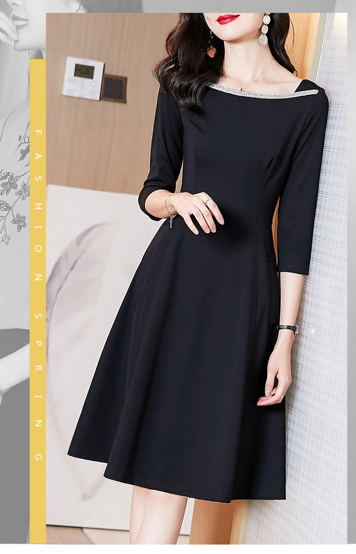 新款知性气质经典小黑裙,时尚通勤法式修身显瘦中长款连衣裙AHM- ymd2211