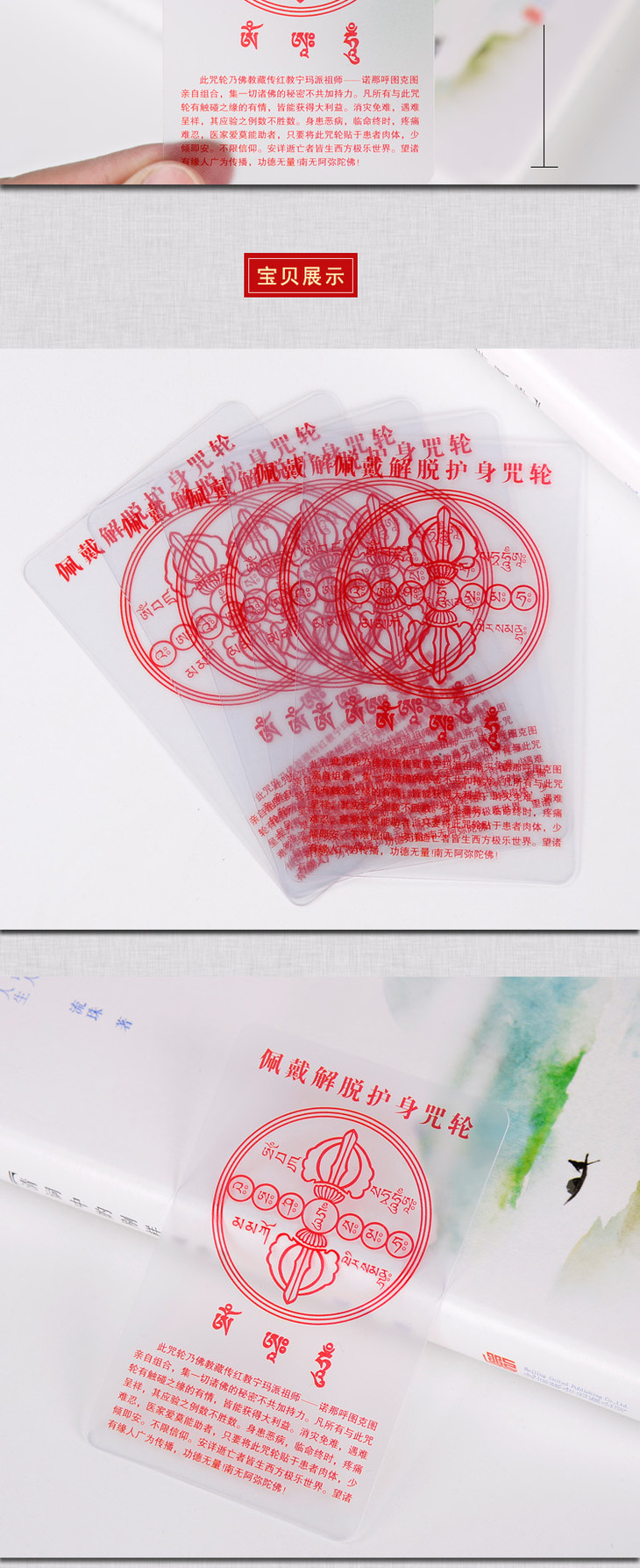 护身辟邪佛卡PVC佩戴 护身咒轮透明磨砂单面佛卡护身卡小唐卡片