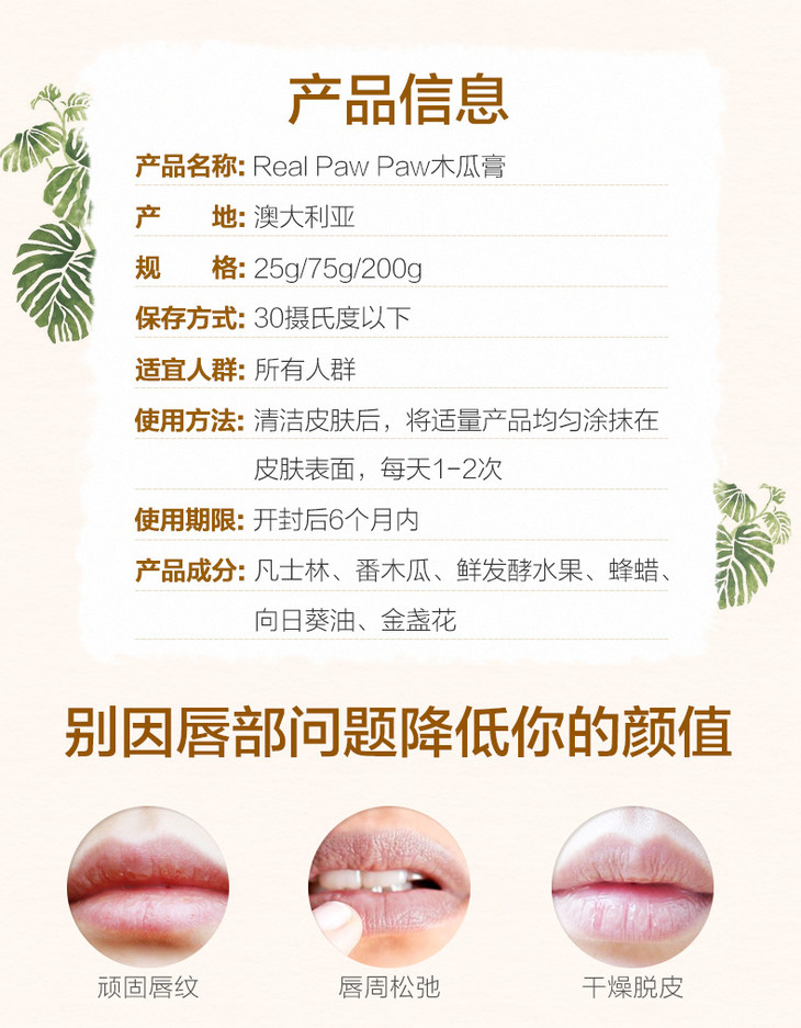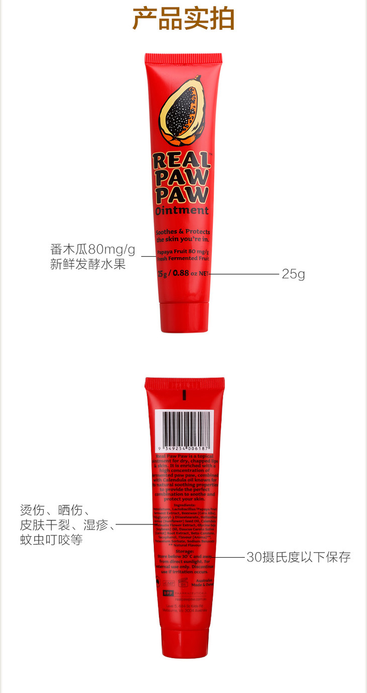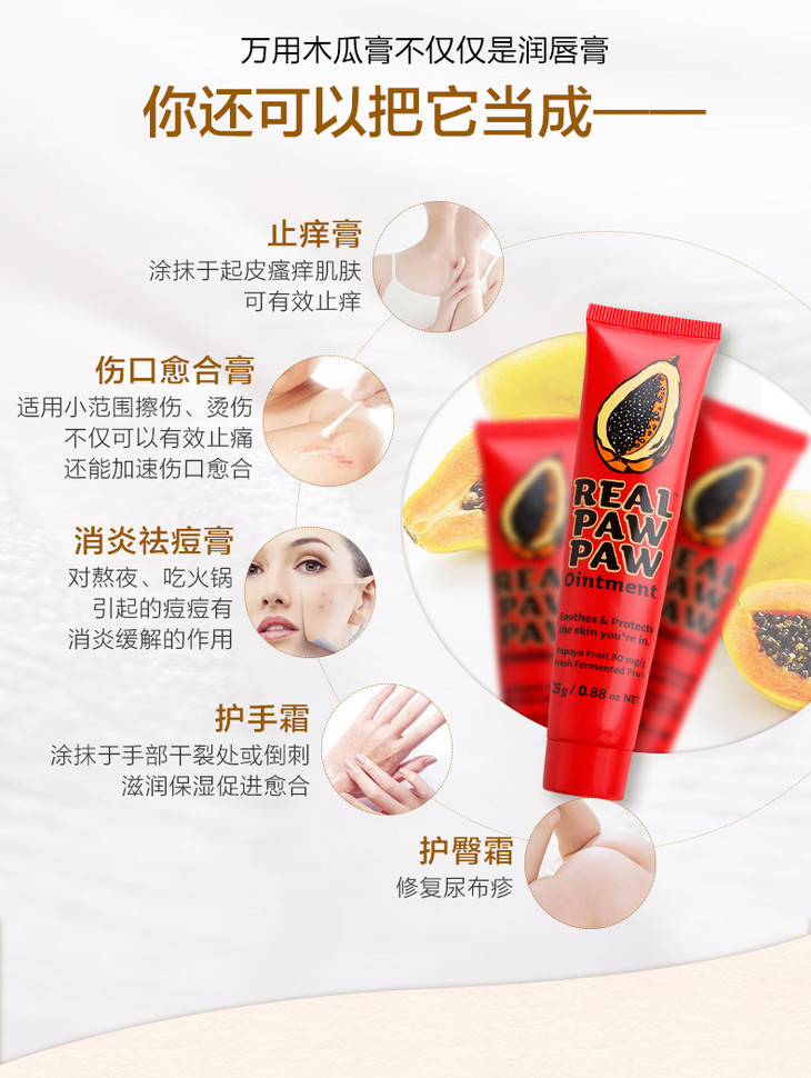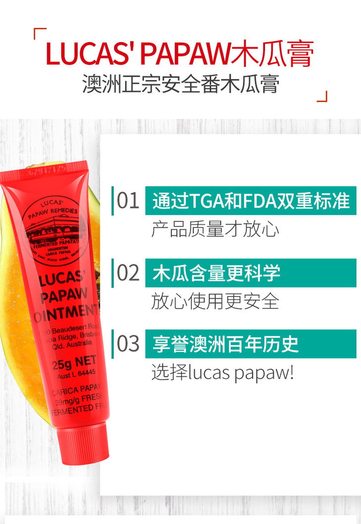 澳洲Lucas Papaw番木瓜膏 无色万用润唇膏保湿止痒祛痘25g/75g