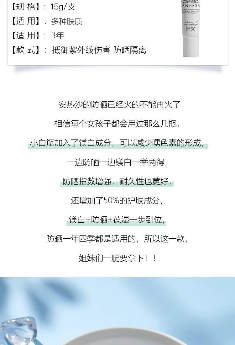 【溯源专属】安热沙美白清透防晒啫喱15g*2支装/SPF50防水防汗高倍防晒【临期清仓】