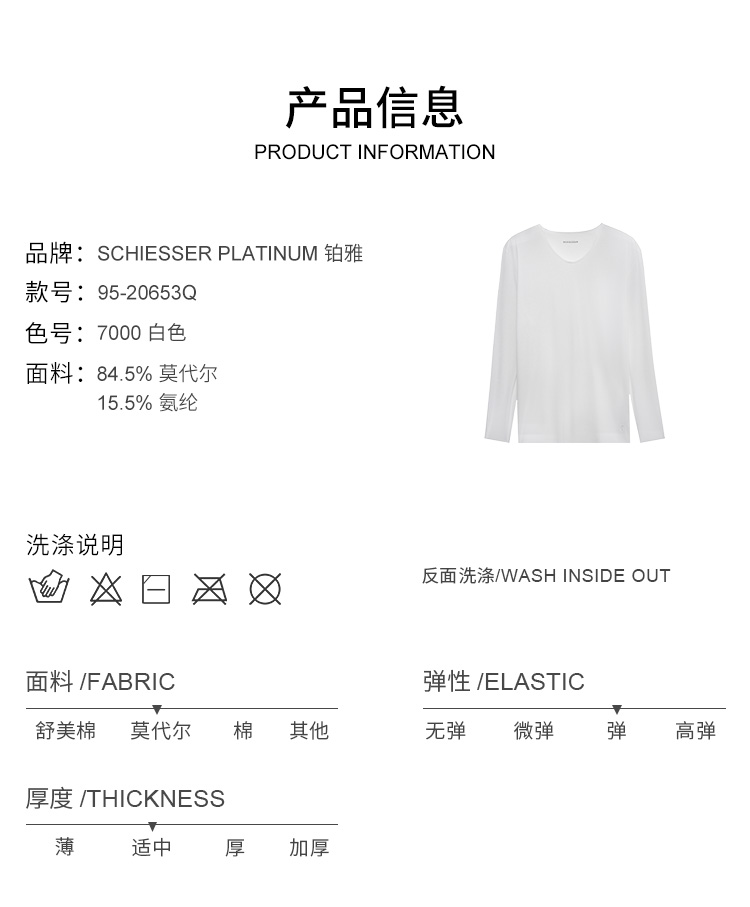 【120S莫代尔】SCHIESSR德国舒雅高端铂雅随型裁v领上衣,120支纱高支莫代尔,平纹双面布随型裁款式手感密实软糯爽滑95/20653Q