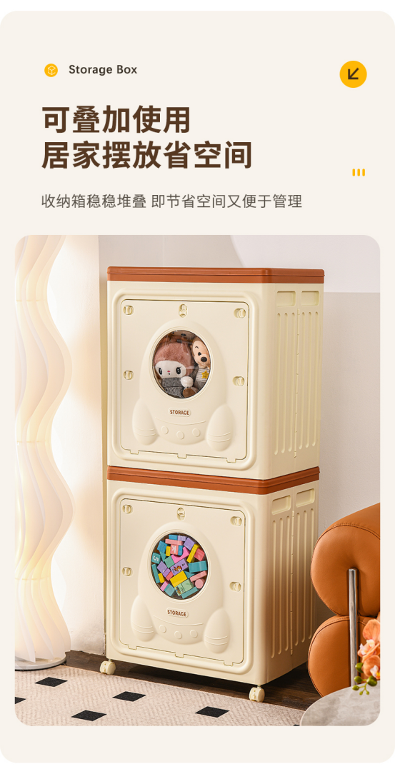 【简约而不简单的设计】 这款收纳箱以其简洁而优雅的线条,诠释了现代家居的精髓。米色的箱体,如同晨光中温柔的一抹,为室内增添了几分宁静与雅致 【实用收纳,井然有序】 无论是衣物、饰品还是日常小物,都能找到它们的专属空间。每一次的开启与闭合,都是对美好生活的精心整理,让您的客厅告别杂乱无章,享受井然有序的舒适与惬意。
