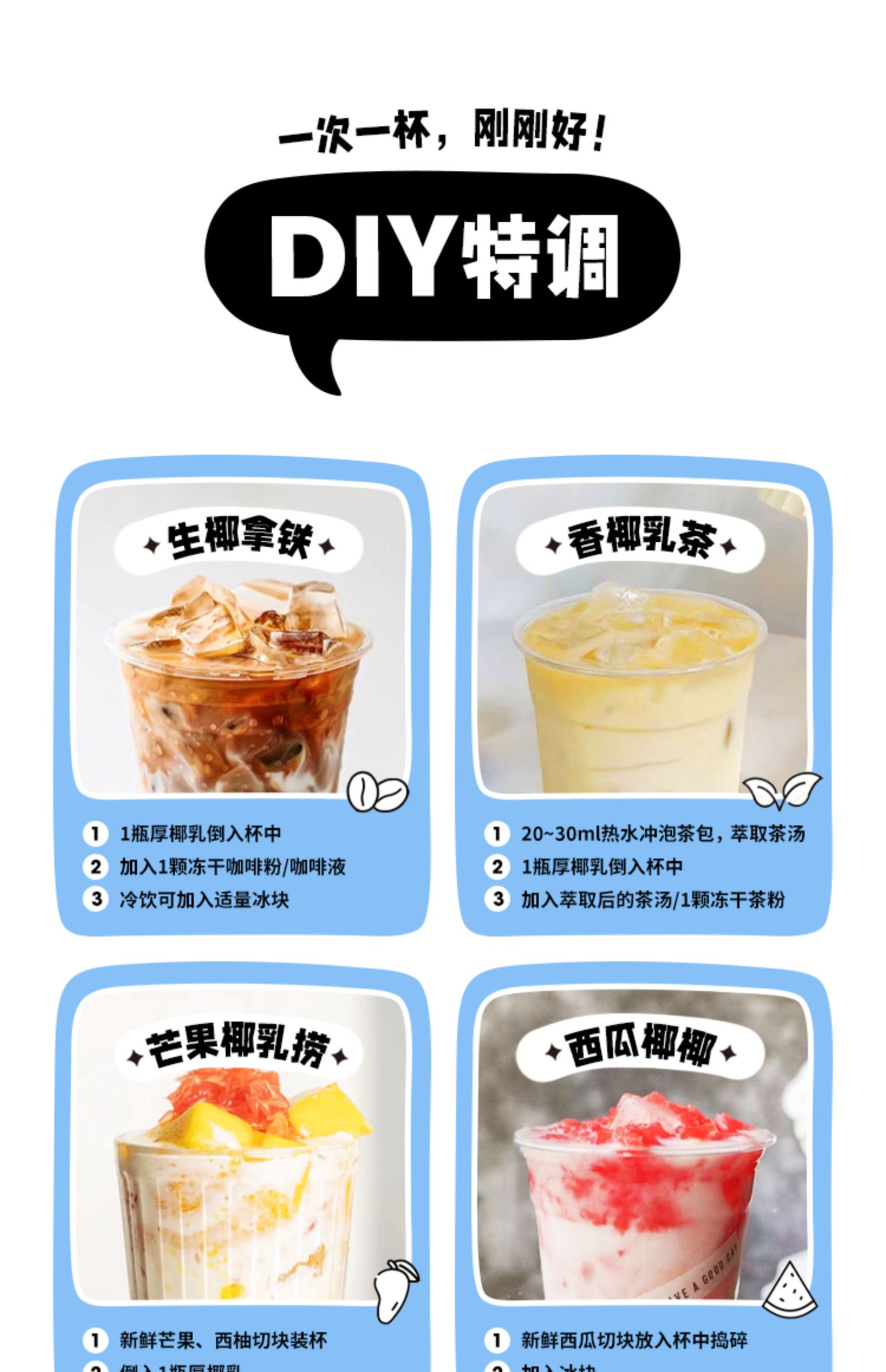 椰子知道0糖厚椰乳 整颗原椰进口 生椰拿铁咖啡伴侣