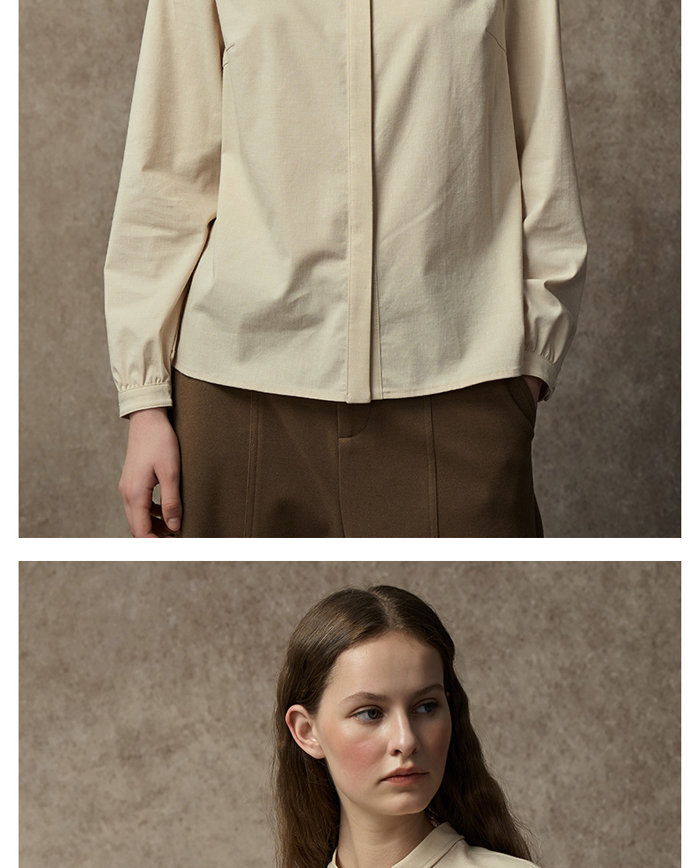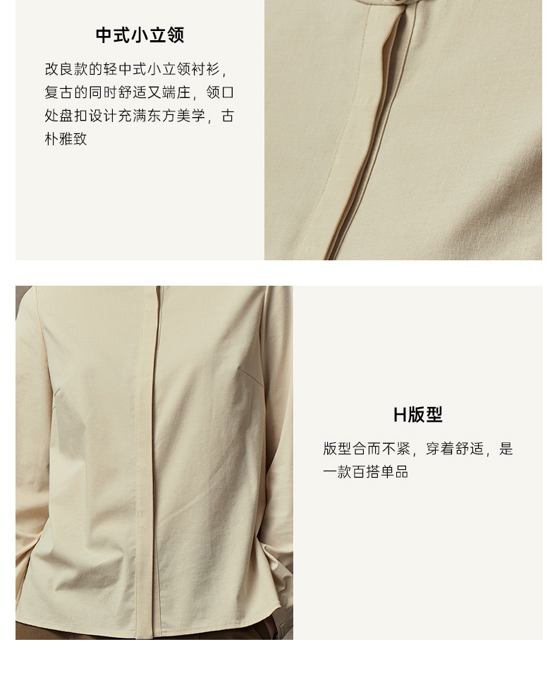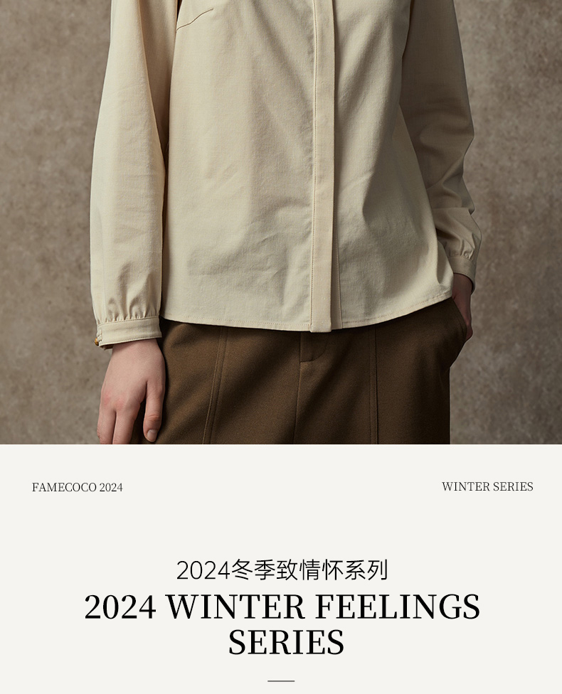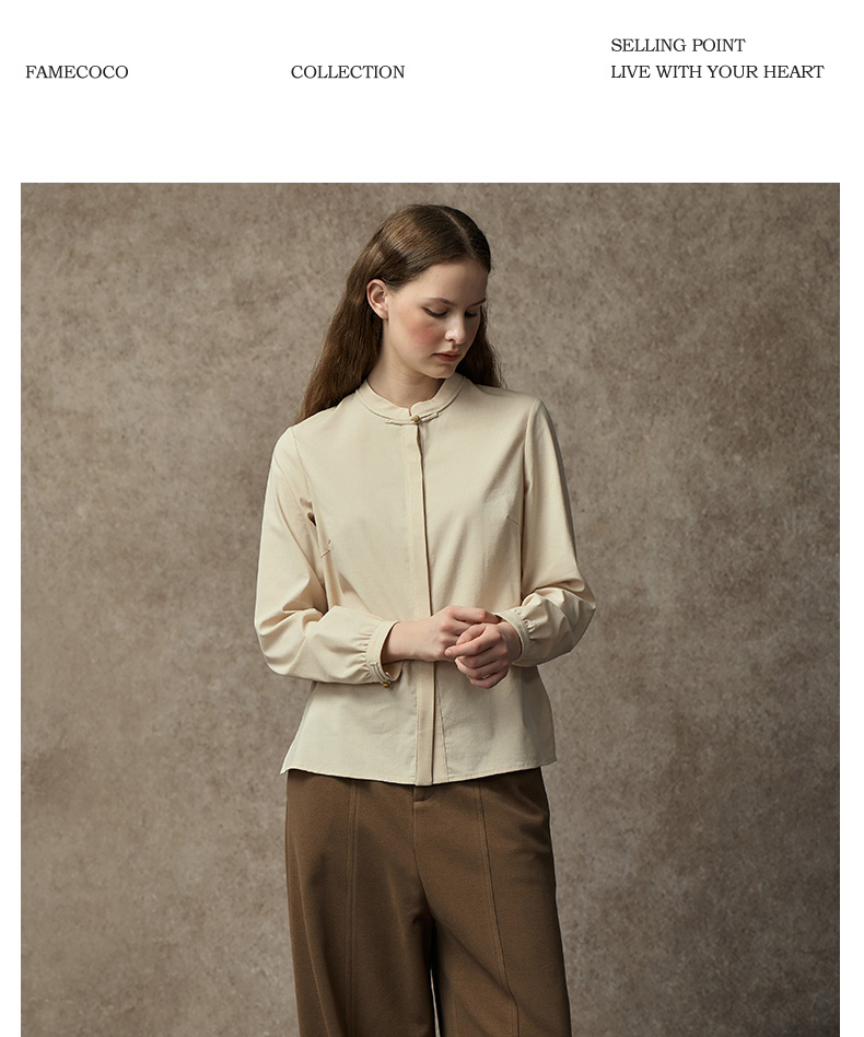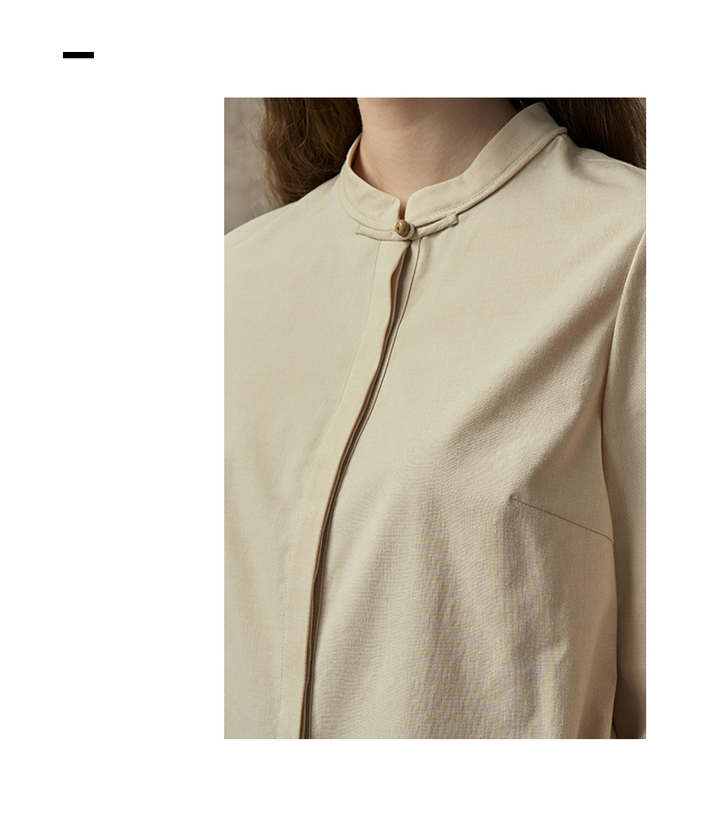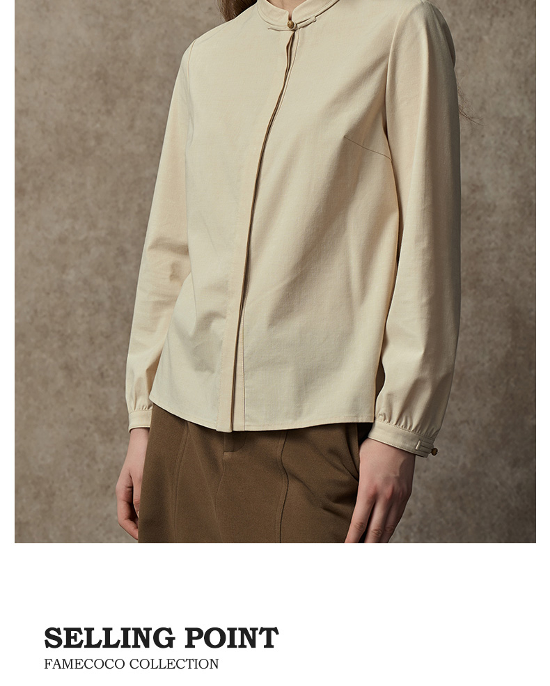 Famecoco范可儿中式立领双色棉麻加厚衬衫FAC8BH001