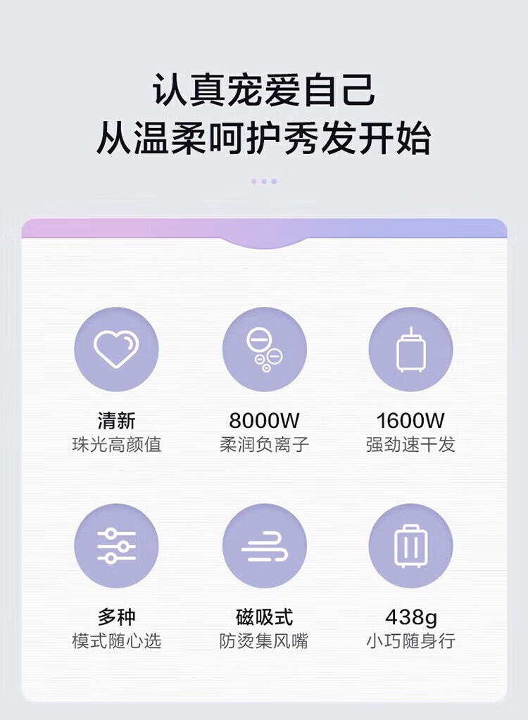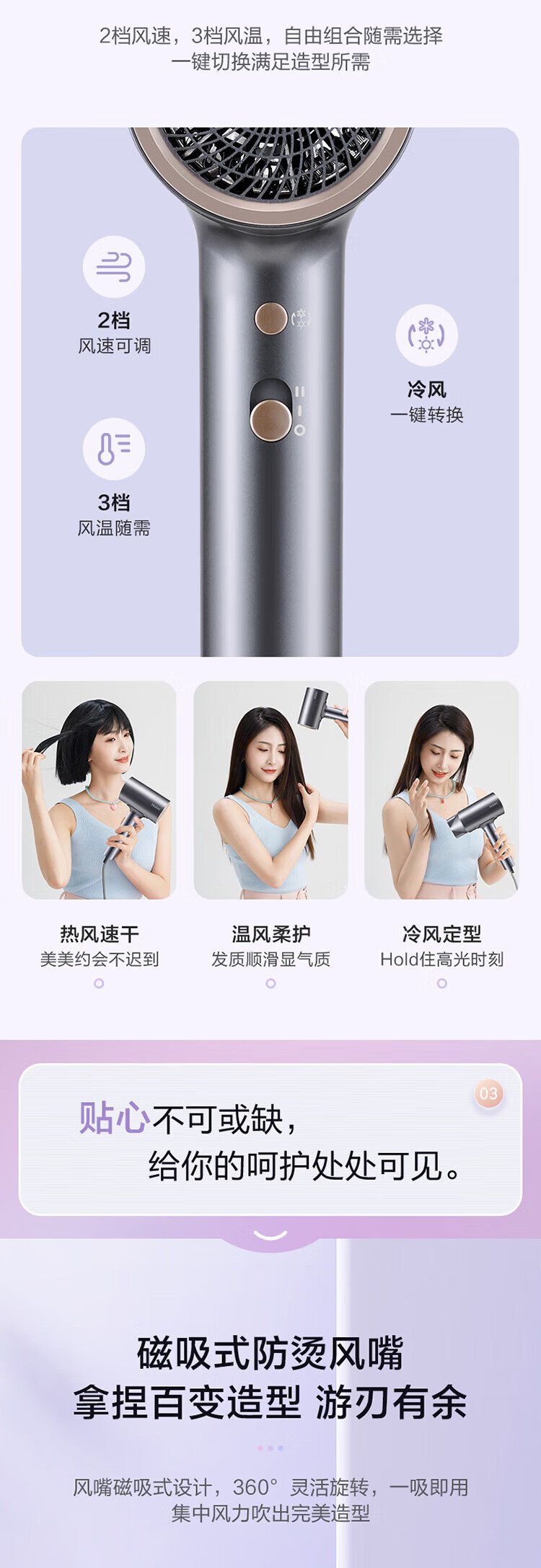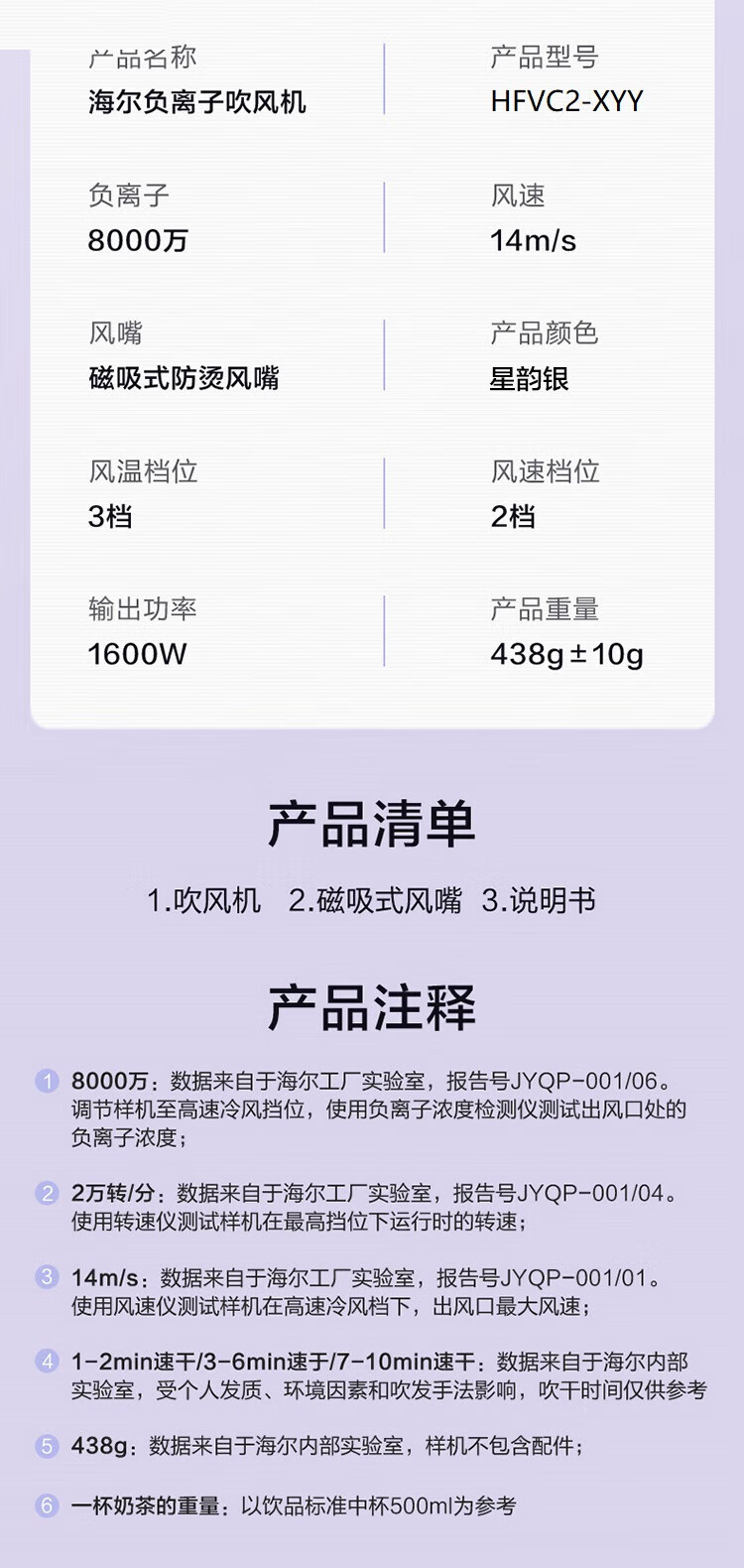 海尔负离子磁吸风嘴高速吹风机多挡位风速 HFVC2-XYY