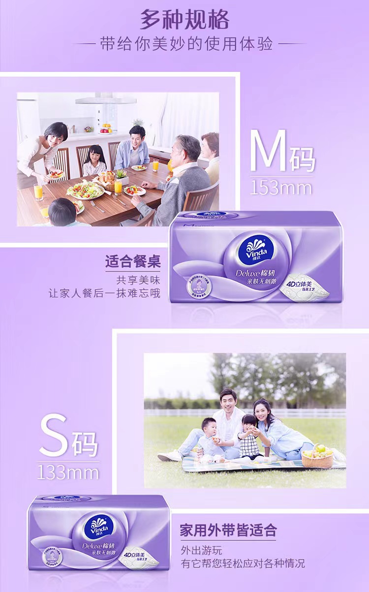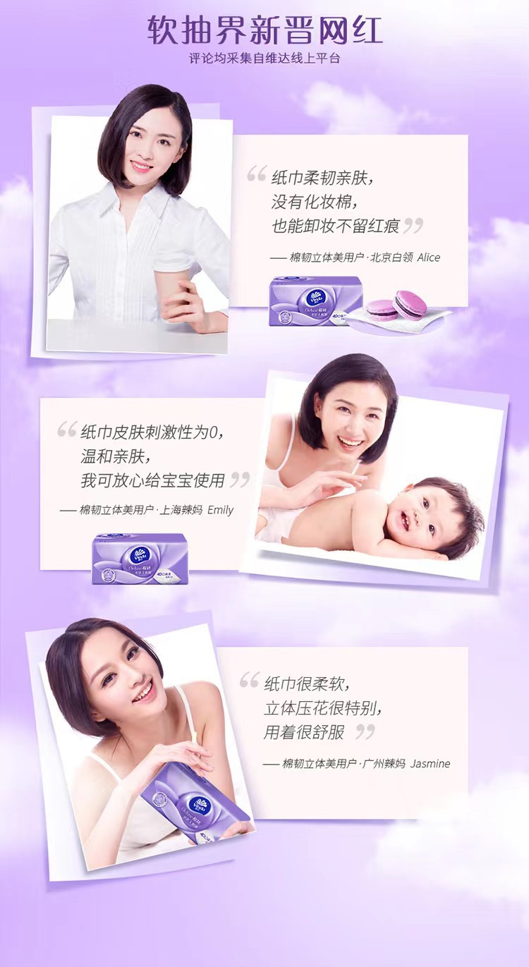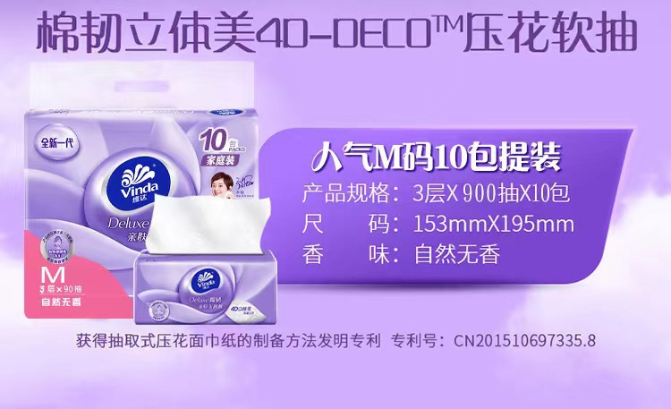 维达立体美压花抽纸 代发10包1提3层中M码量贩装无香家用纸巾 V2836