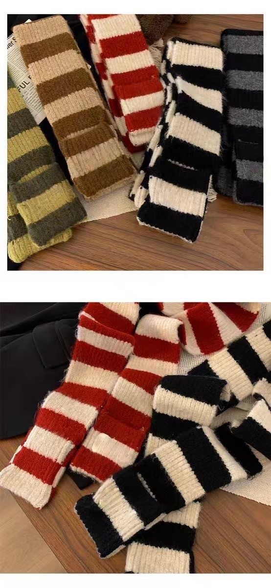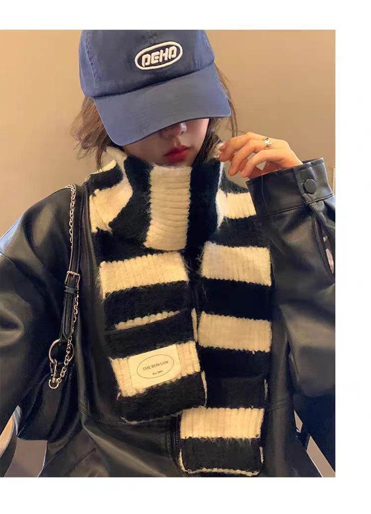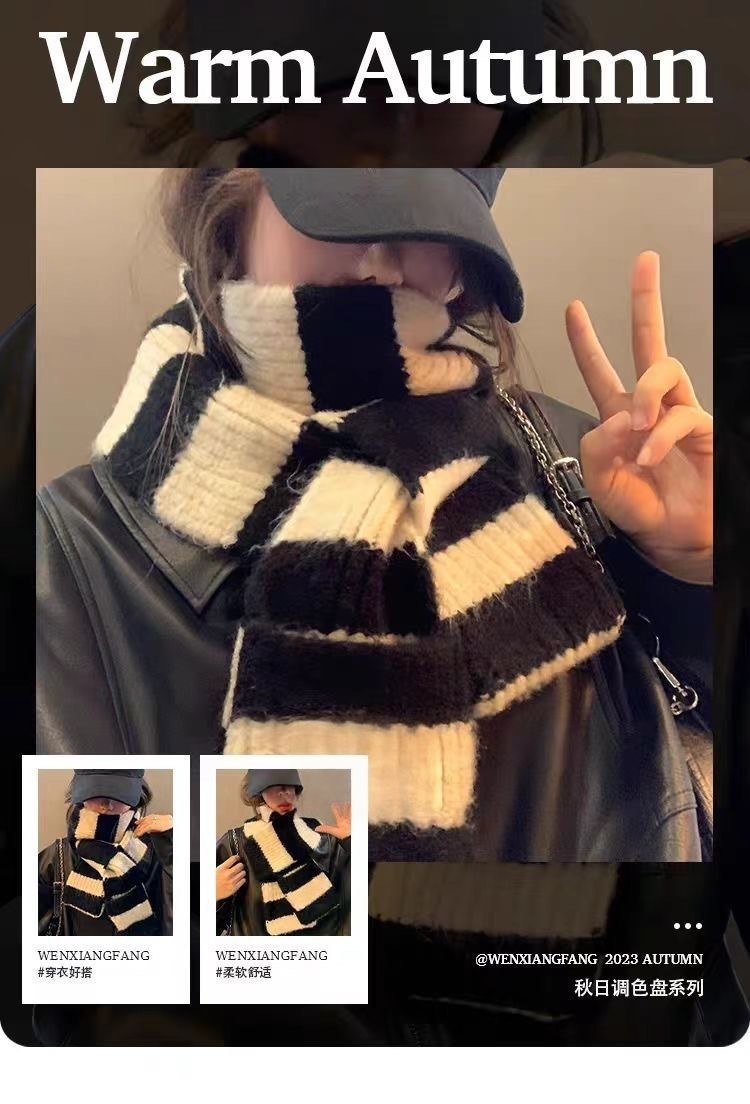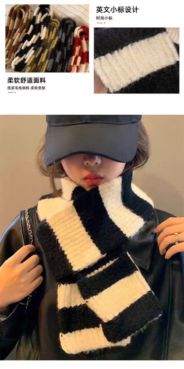 【百搭好看❕柔软舒适面料】冬季美拉德条纹围巾ins小众韩版百搭针织围脖不掉毛保暖细窄披肩。ja