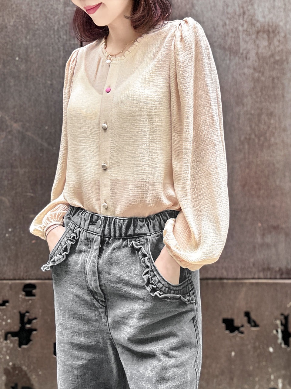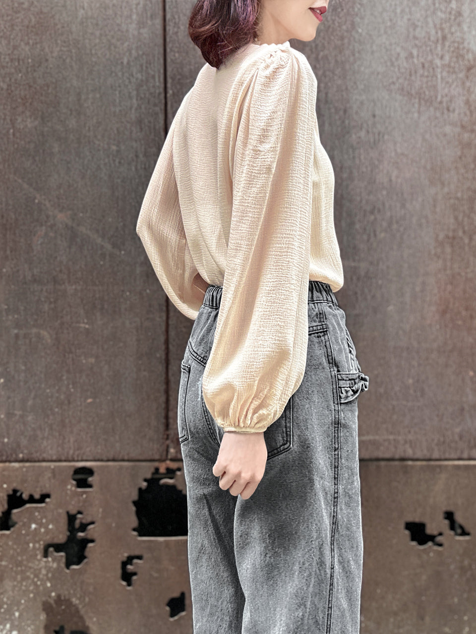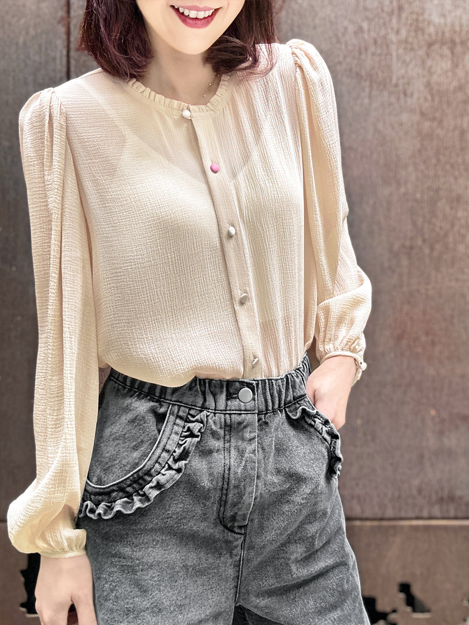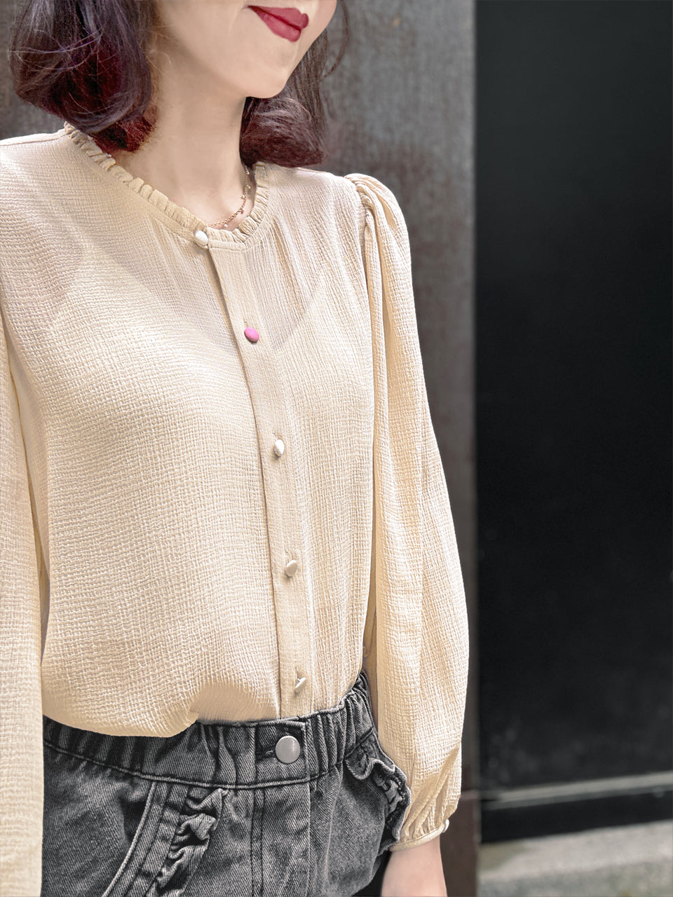 TYNVIE 泡泡袖长袖衬衫-杏色