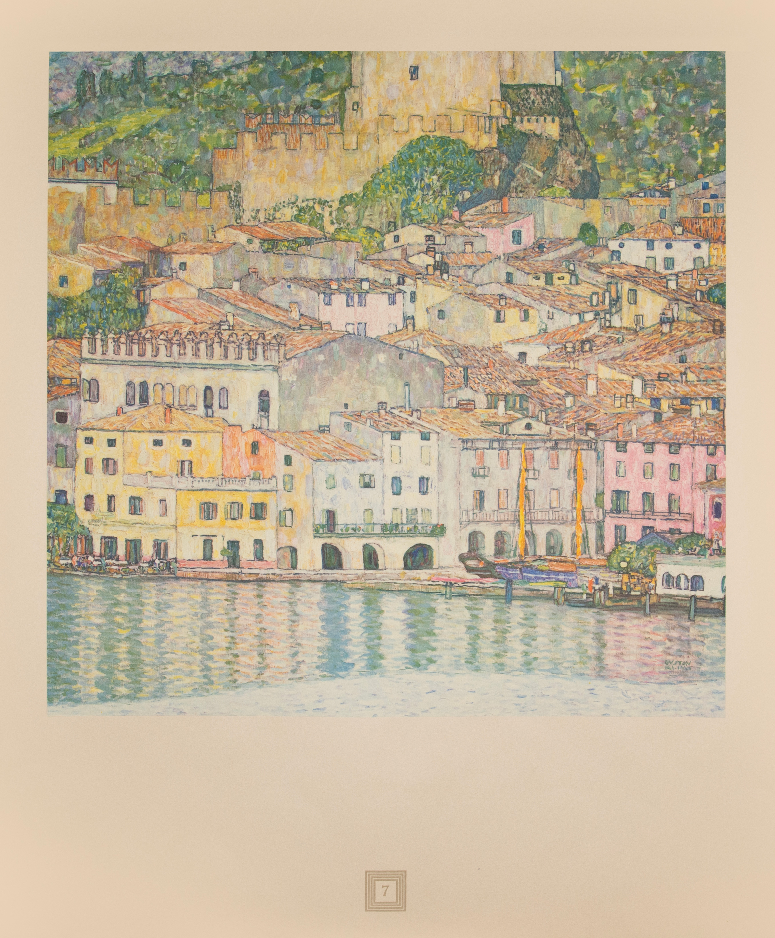 1931年奥地利出品古斯塔夫·克里姆特《加尔达湖畔马尔切西内 Malcesine on Lake Garda》(第7版)彩色珂罗版艺术版画(限量500版)