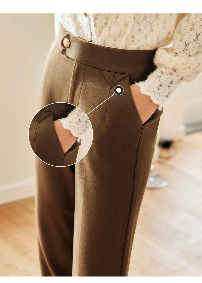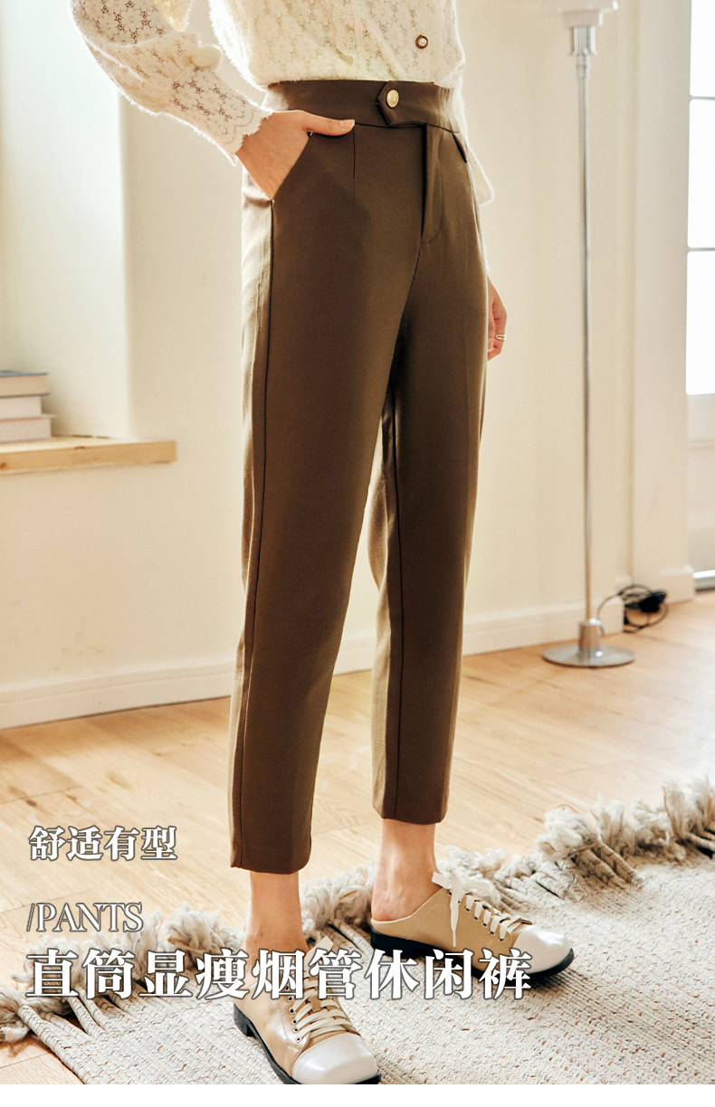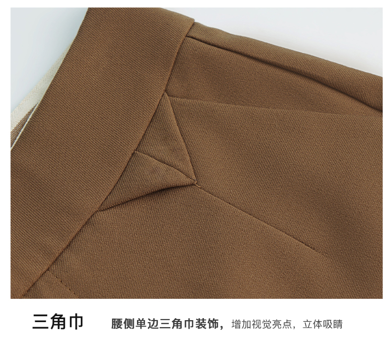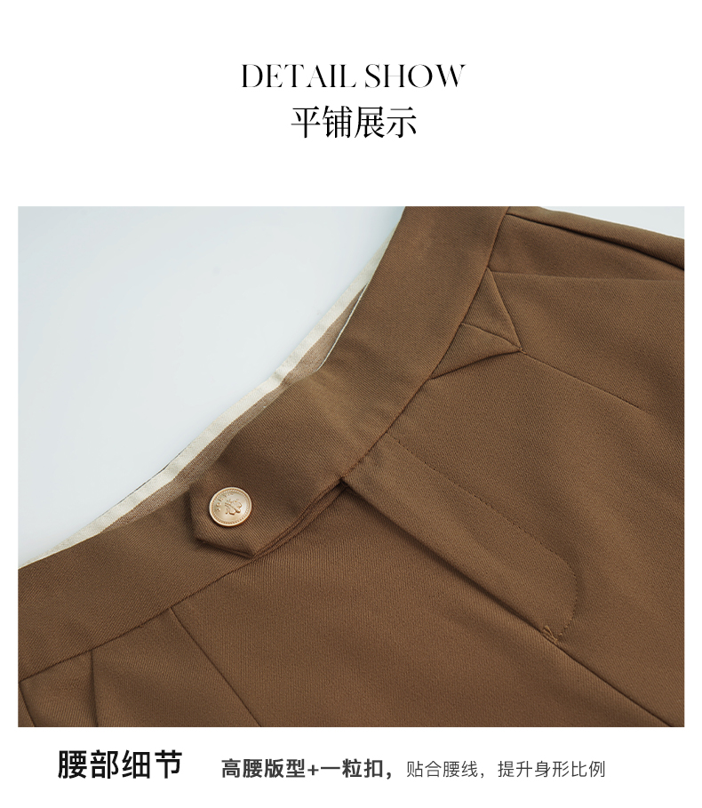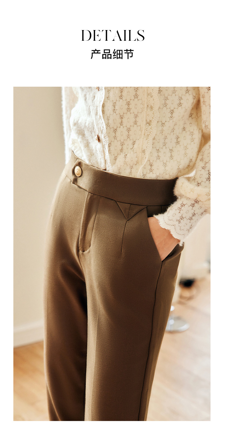 OLrain法式咖色休闲裤女早秋2022新款时尚气质阔腿显瘦烟管直筒裤