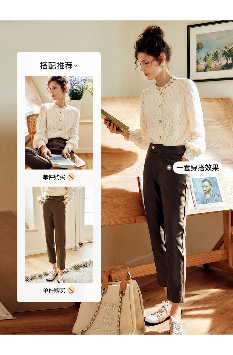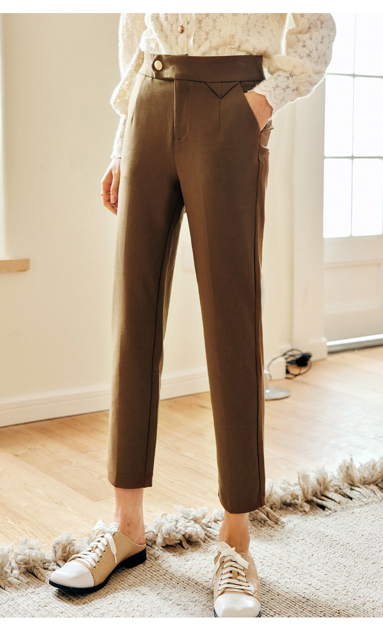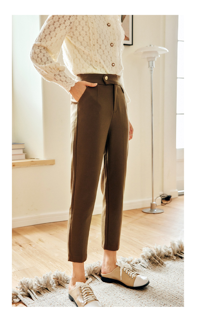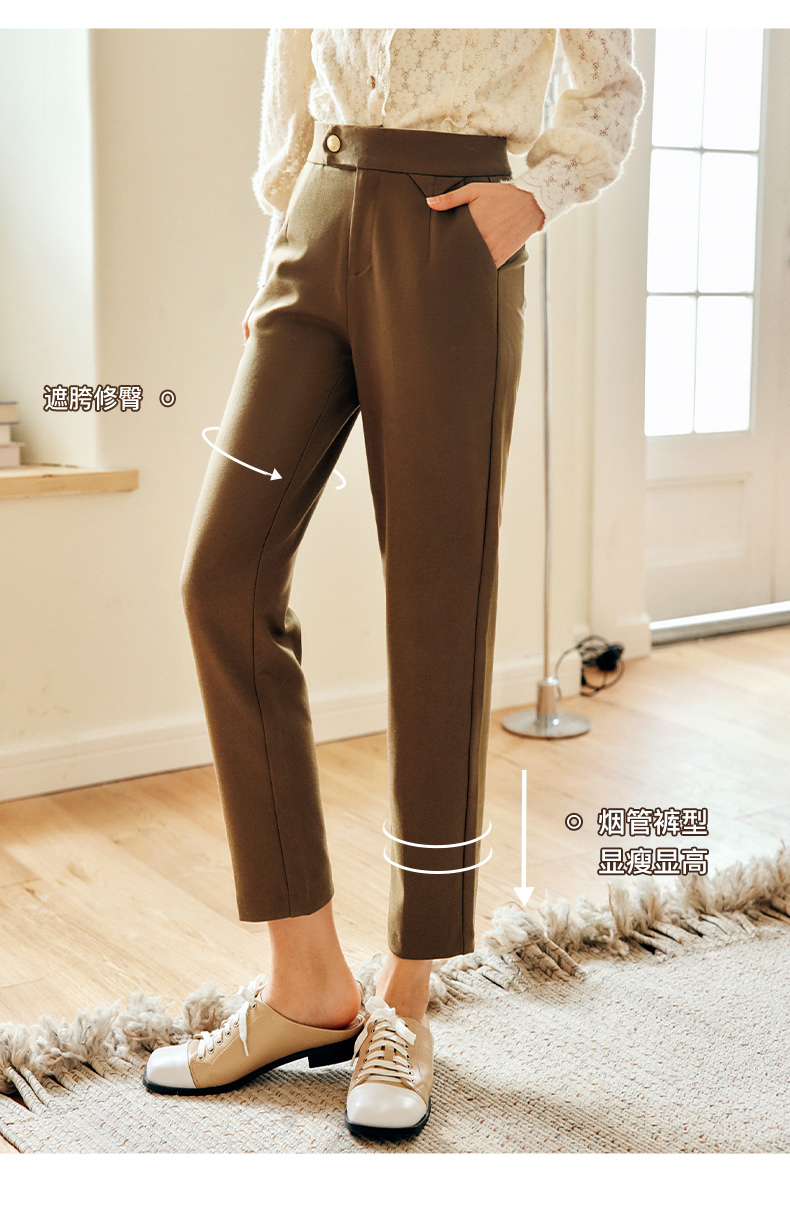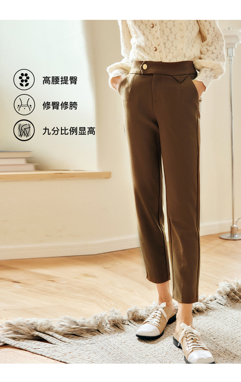 OLrain法式咖色休闲裤女早秋2022新款时尚气质阔腿显瘦烟管直筒裤