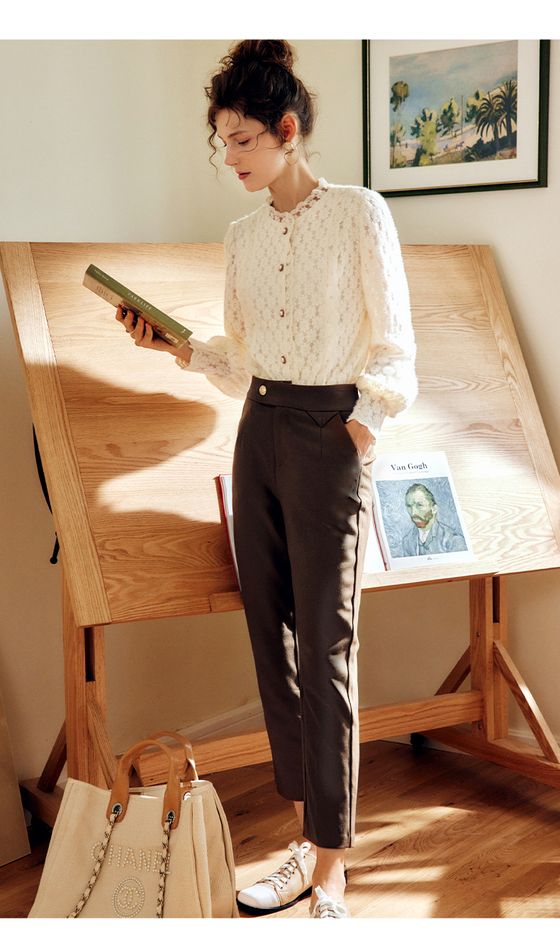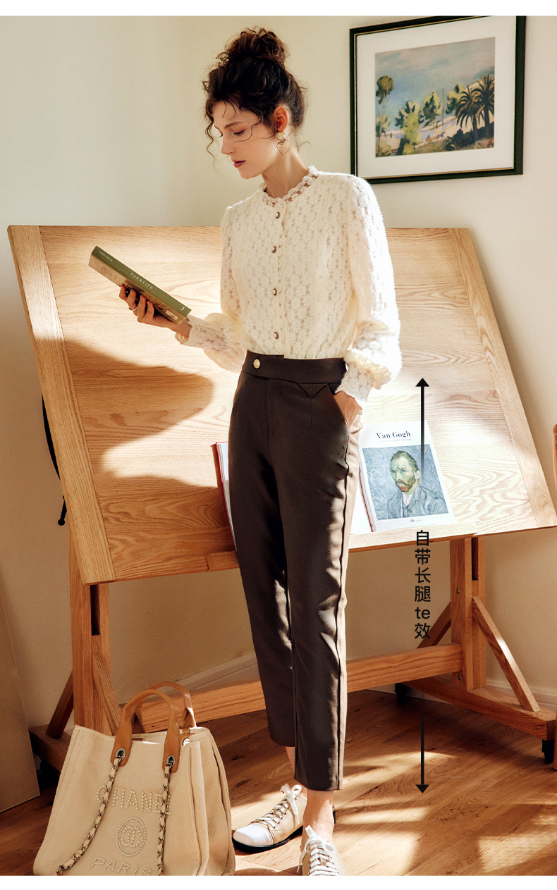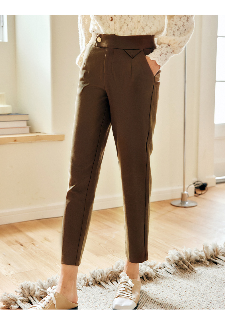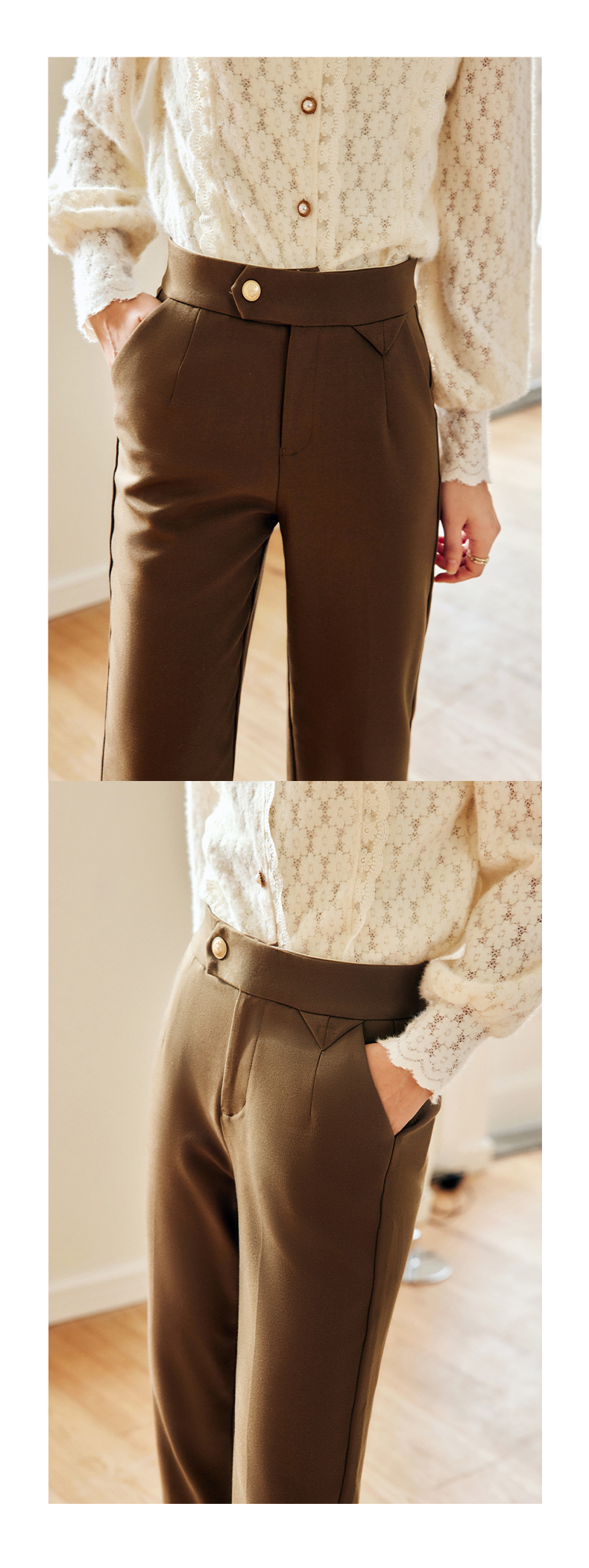OLrain法式咖色休闲裤女早秋2022新款时尚气质阔腿显瘦烟管直筒裤