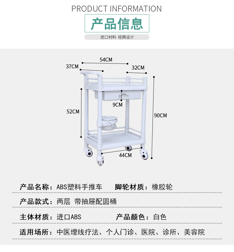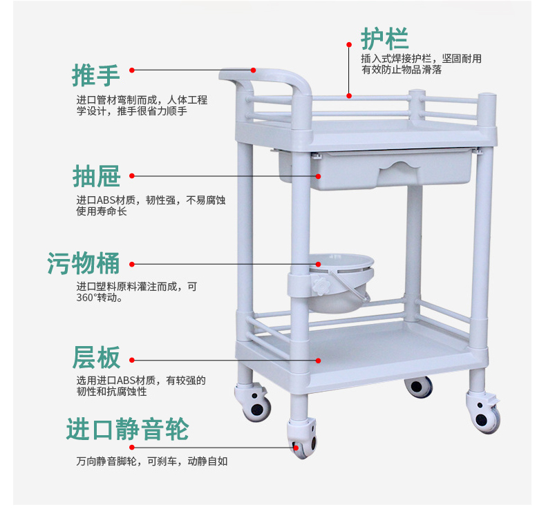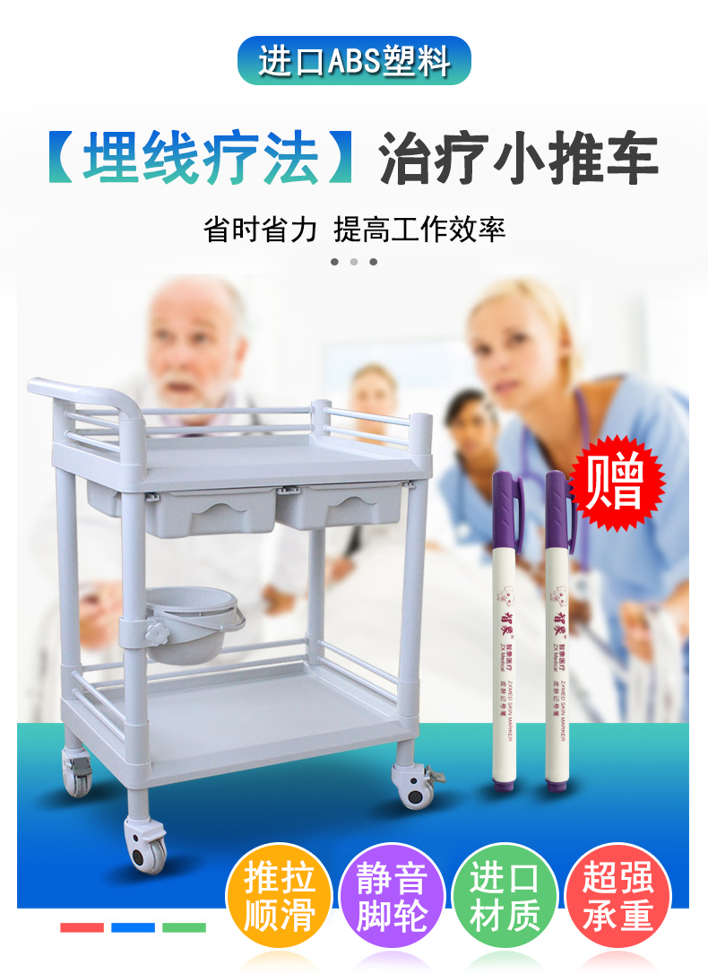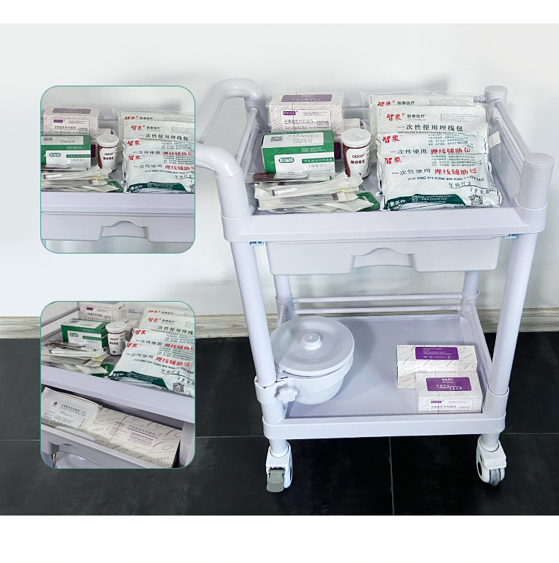 工作室中医室埋线疗法用小推车 带抽屉配圆桶 赠记号笔2支