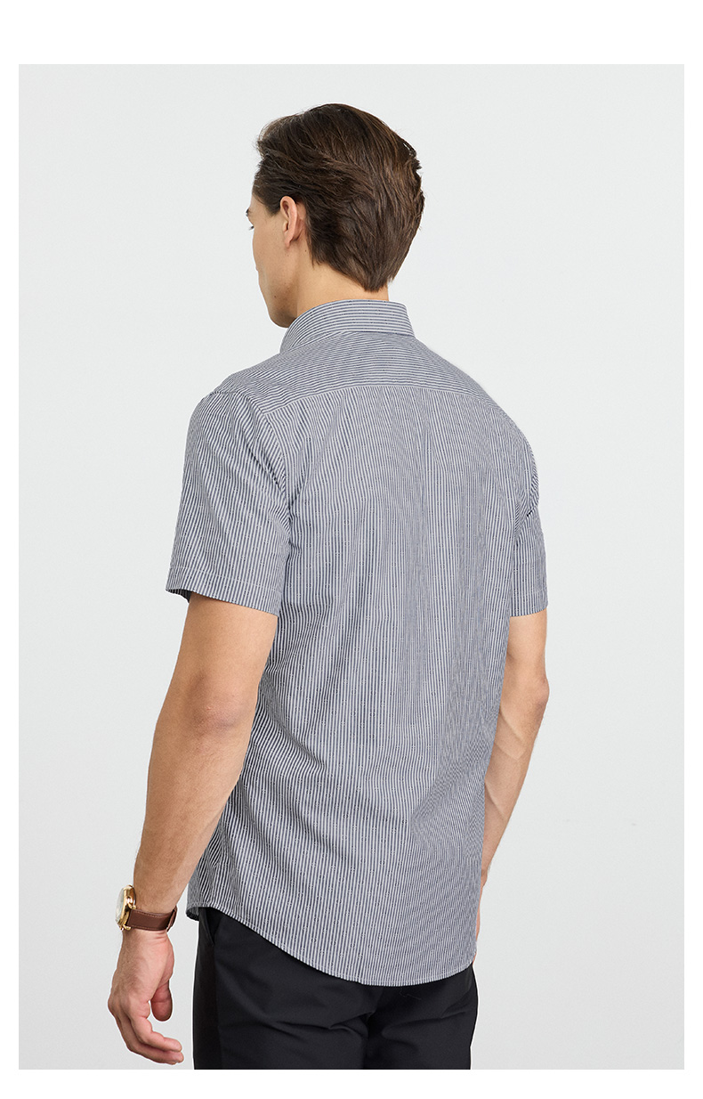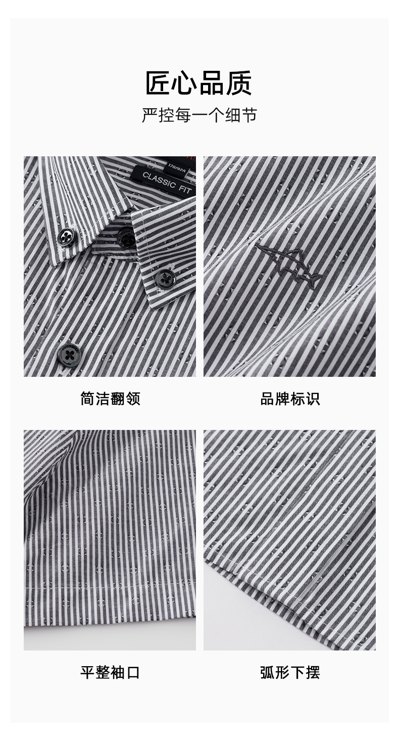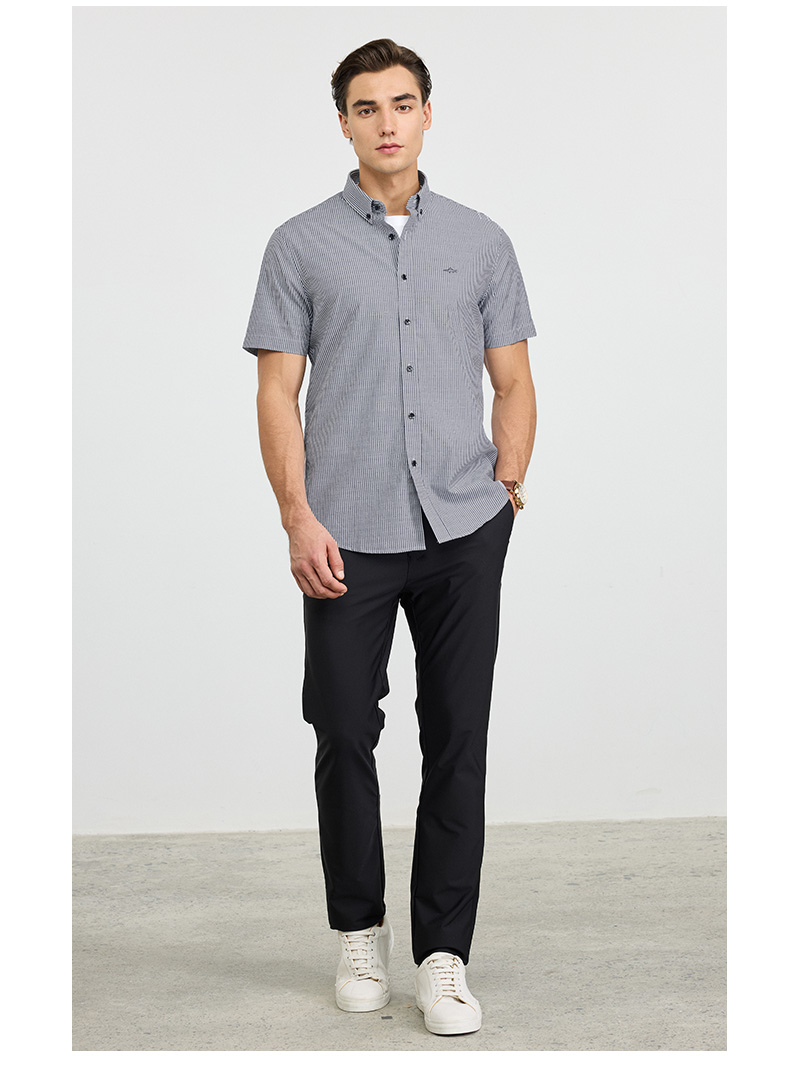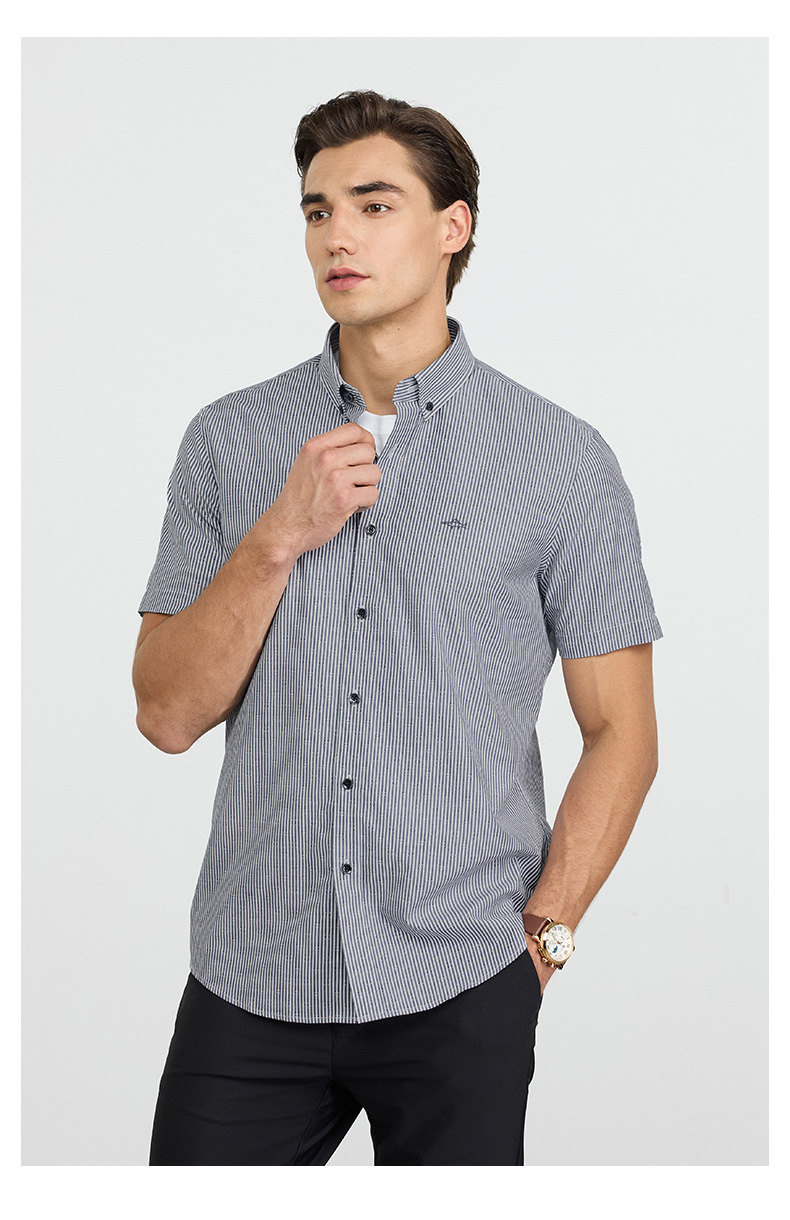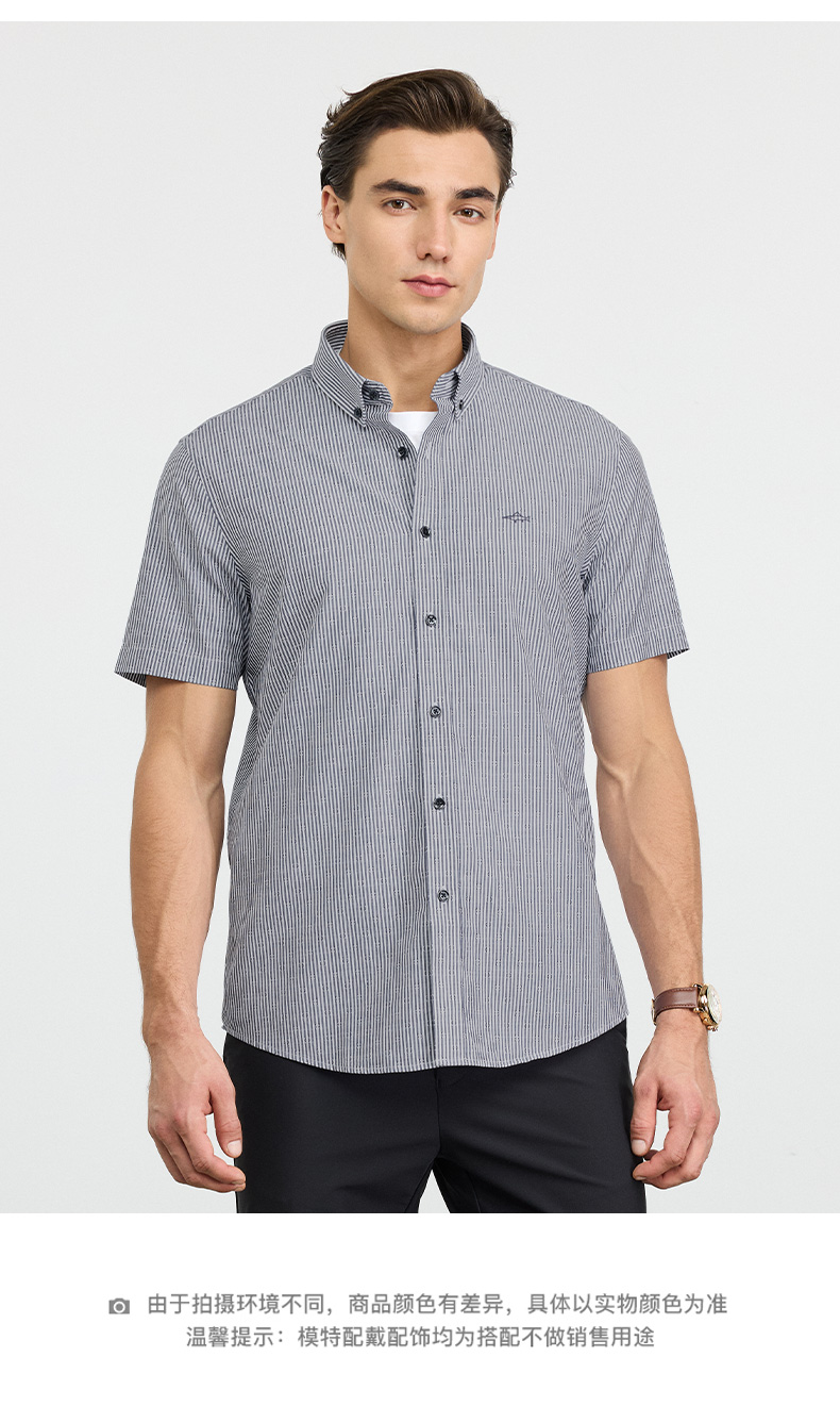 【纯棉】德鲨2026夏新款短袖衬衫男青年时尚条纹打底上衣男装衬衣