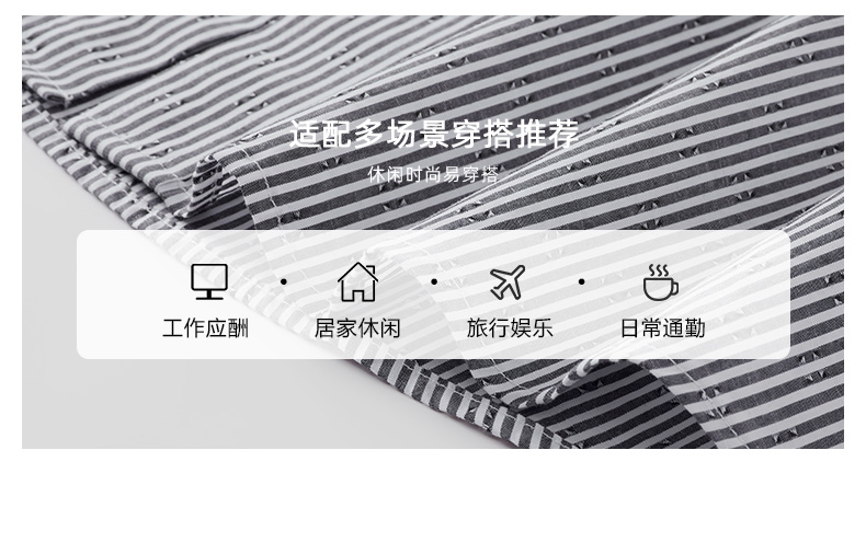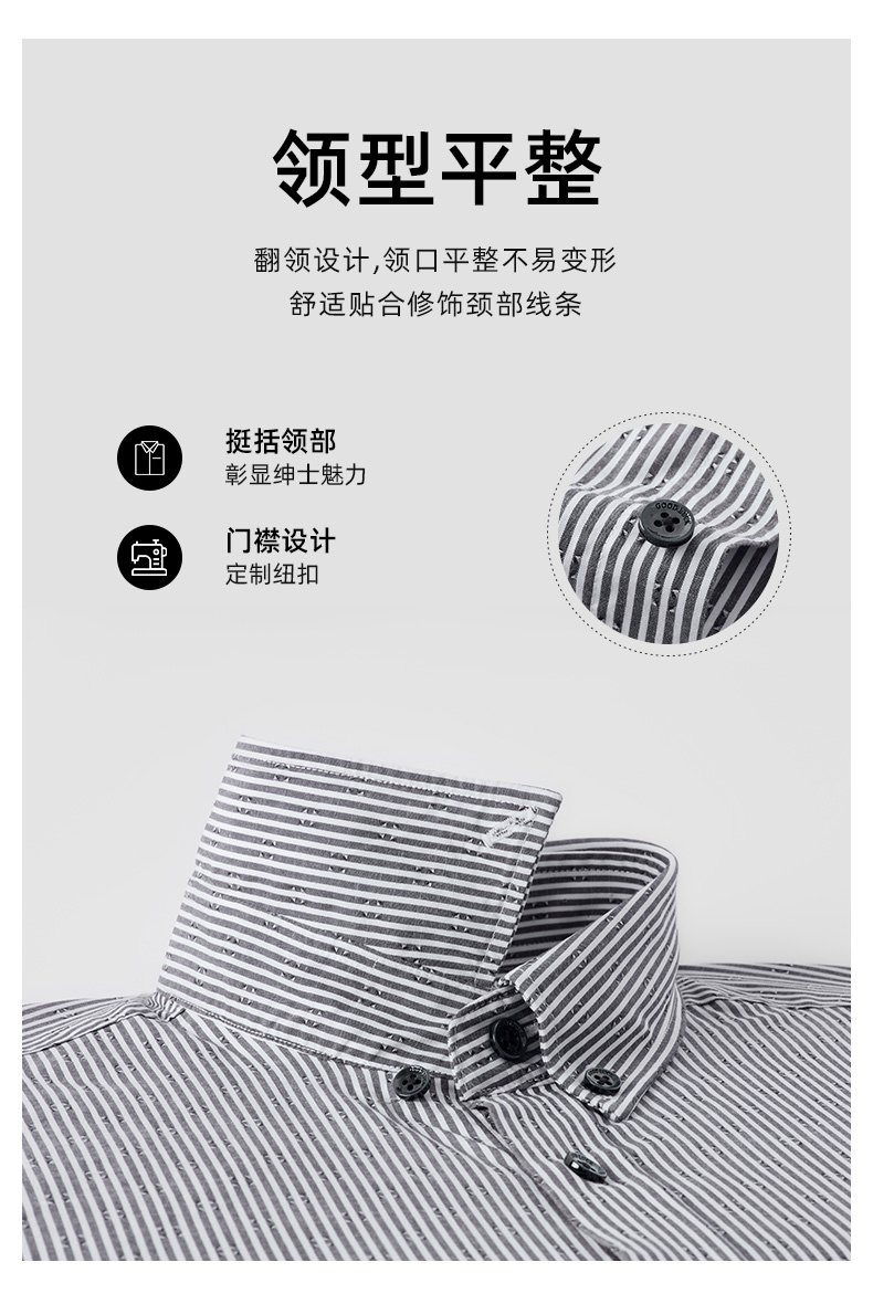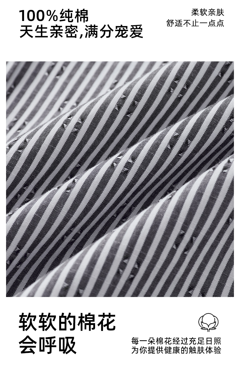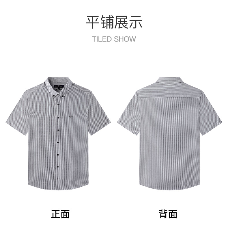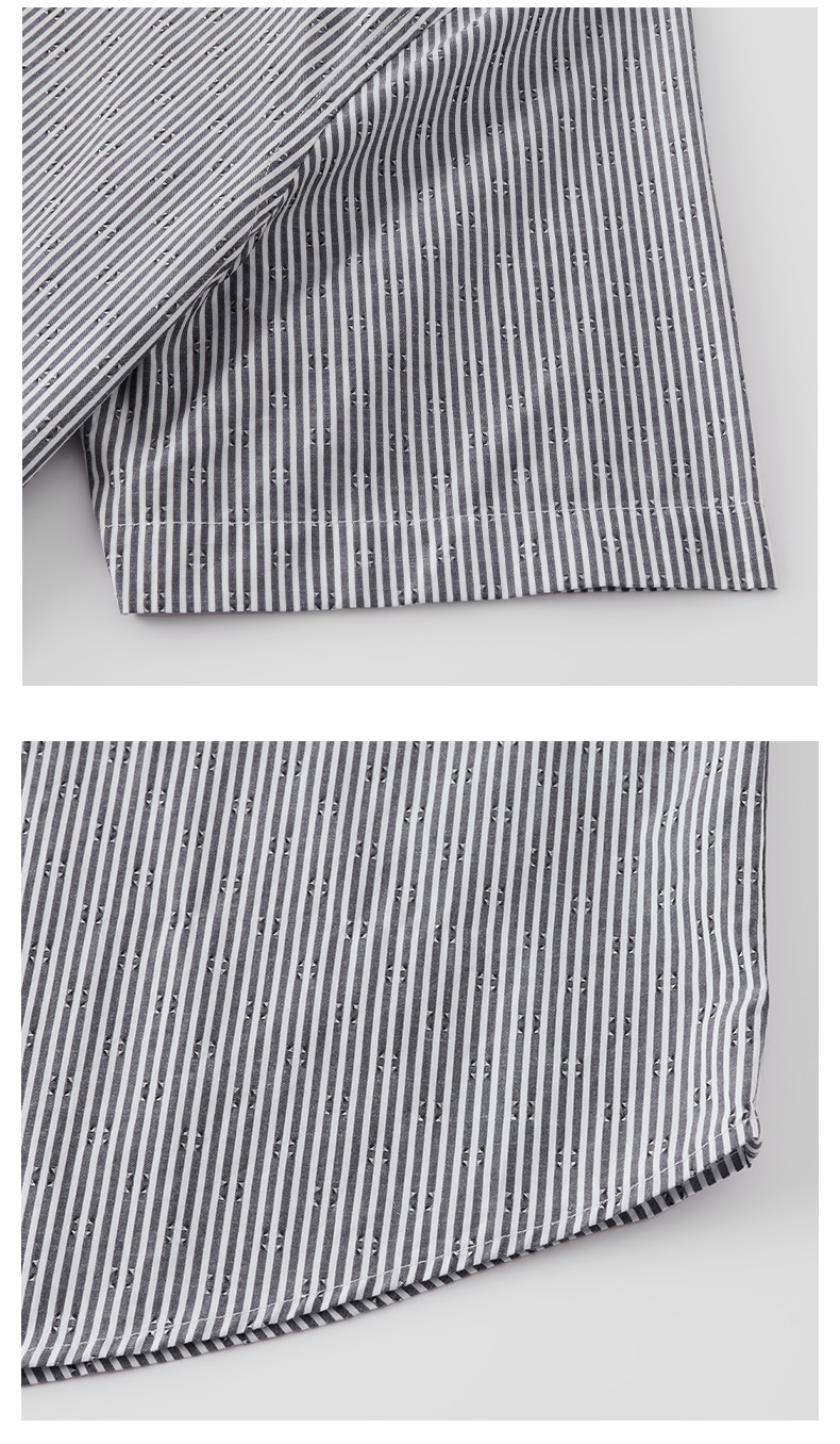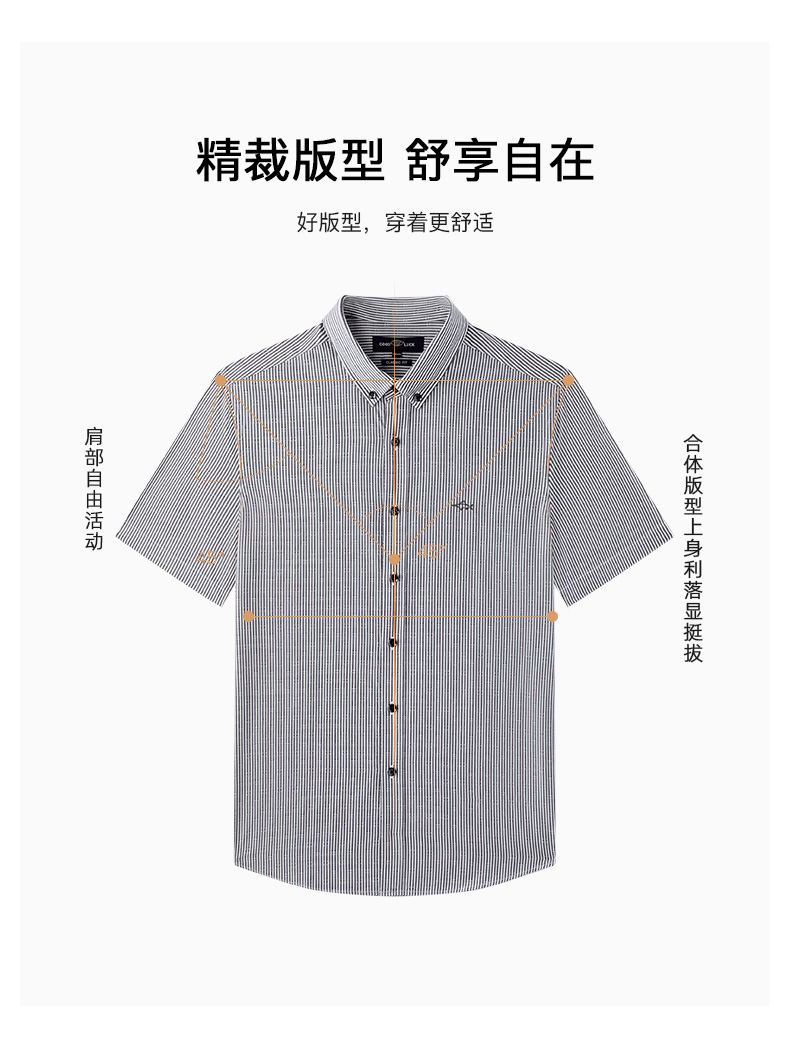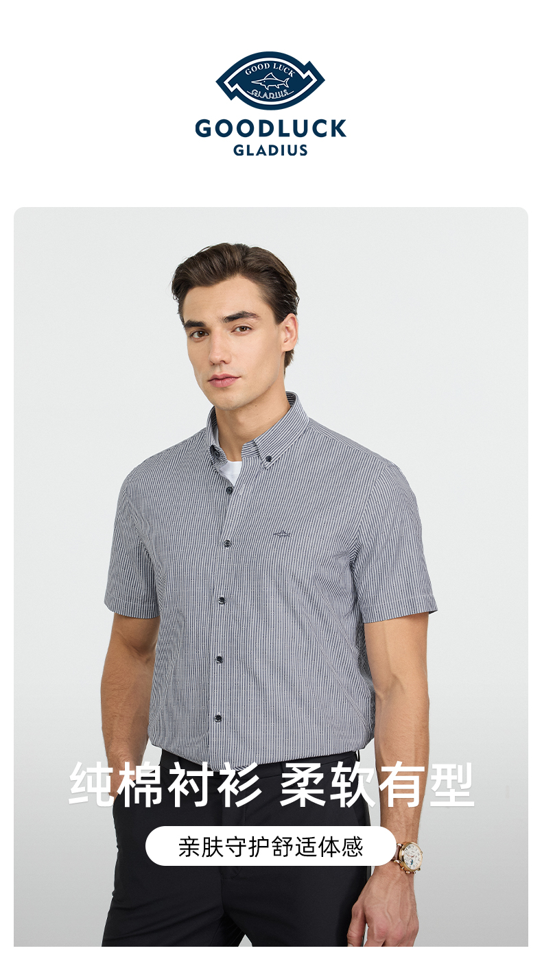 【纯棉】德鲨2026夏新款短袖衬衫男青年时尚条纹打底上衣男装衬衣
