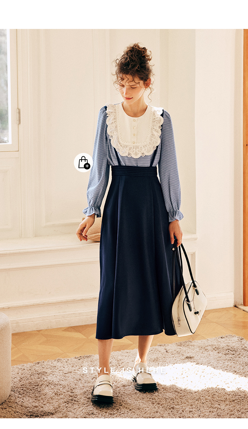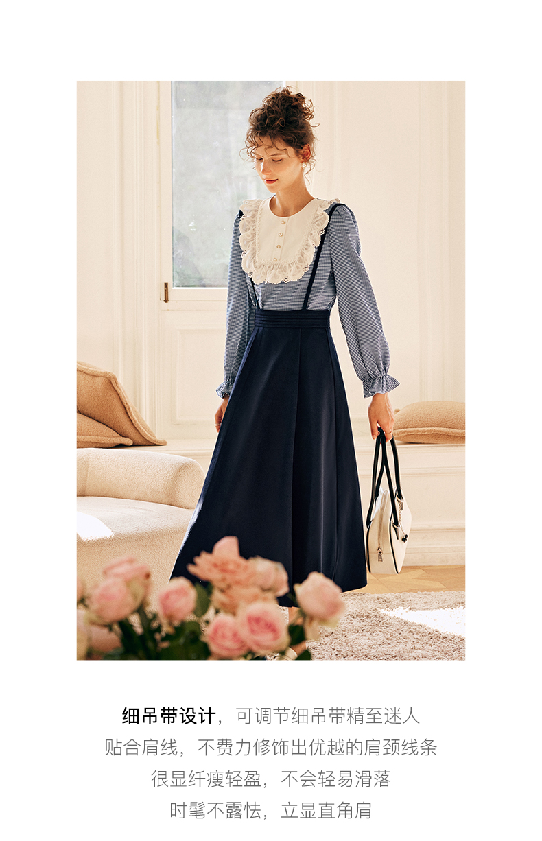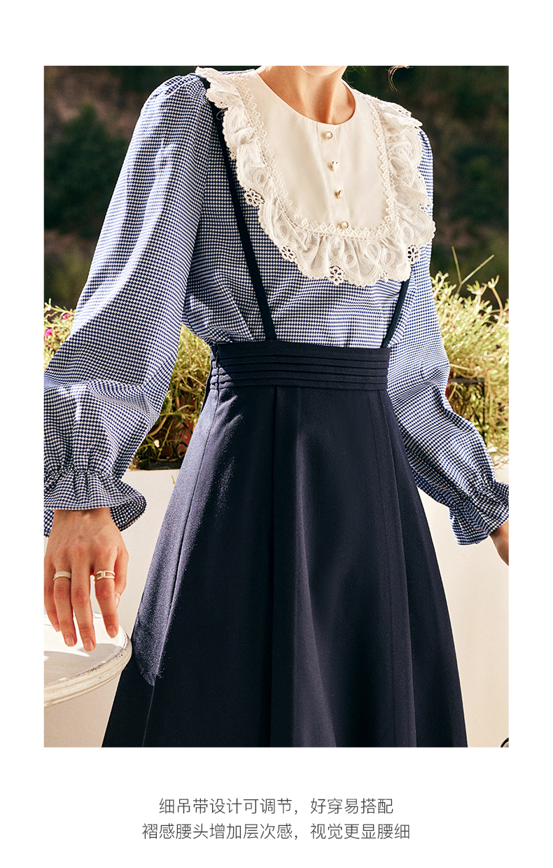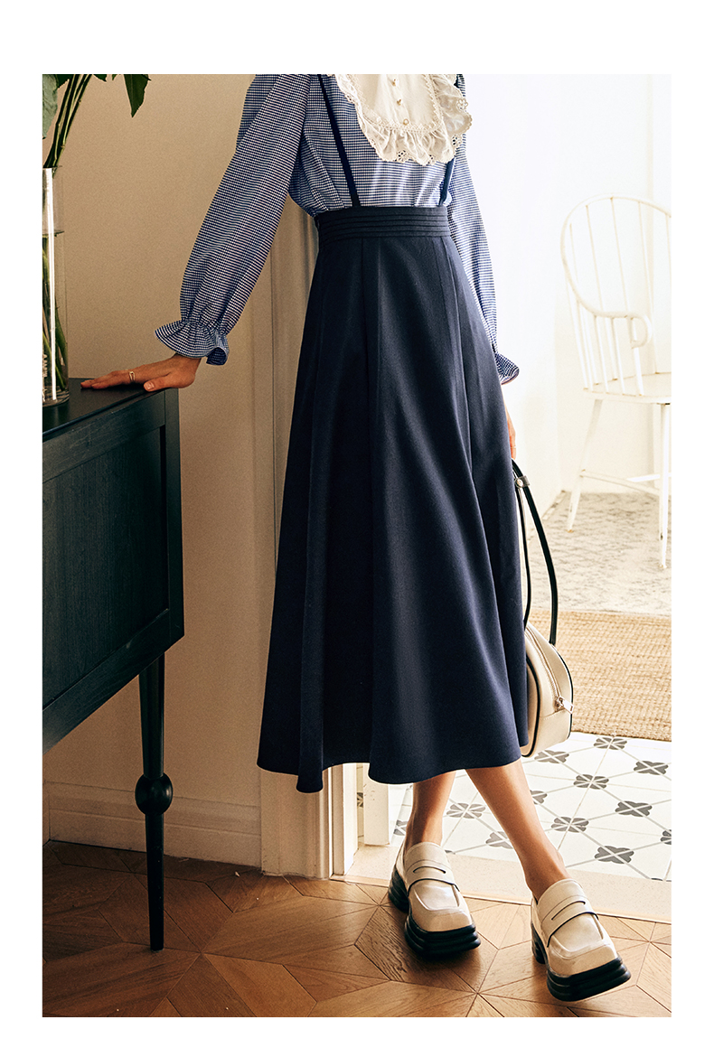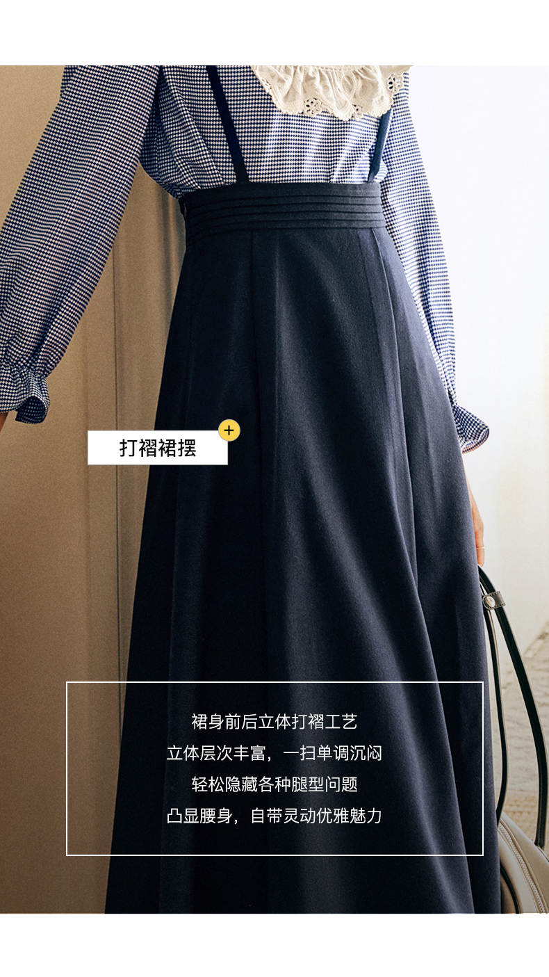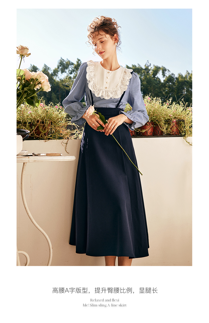 OLrain欧芮儿法式藏青色吊带半身裙女夏季2023新款高腰A字伞摆裙