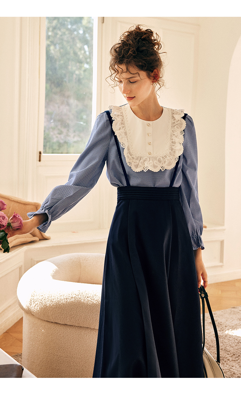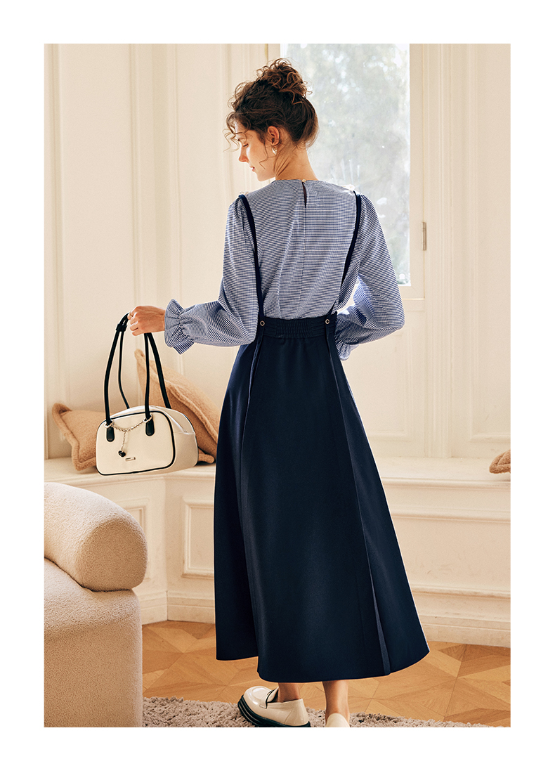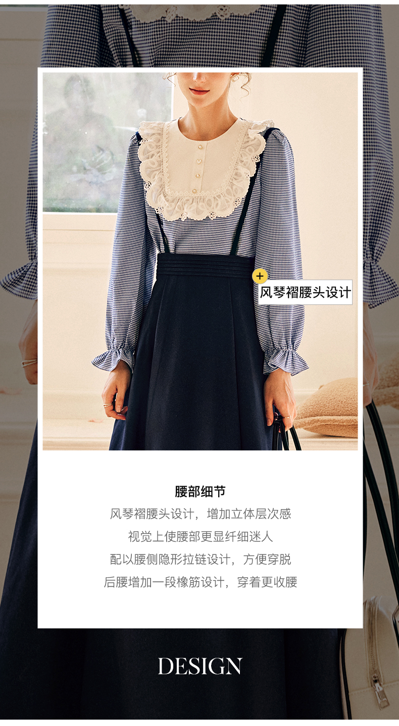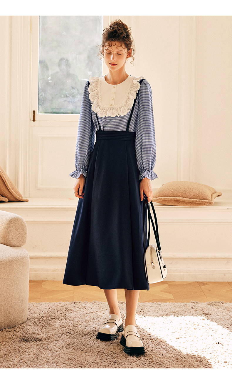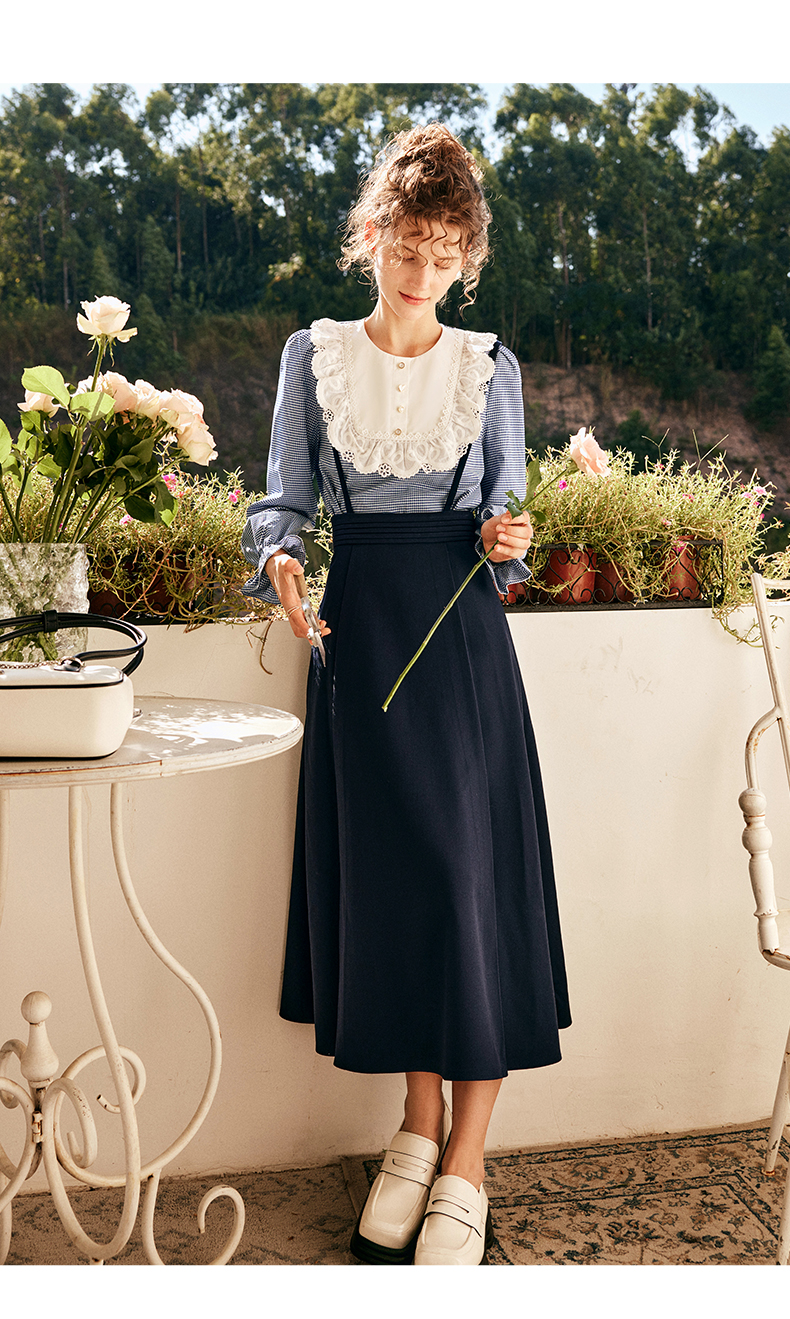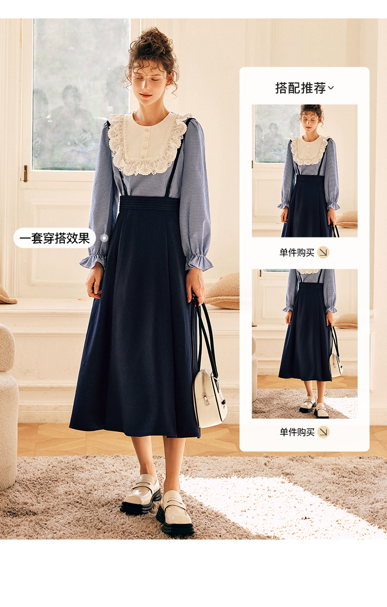 OLrain欧芮儿法式藏青色吊带半身裙女夏季2023新款高腰A字伞摆裙