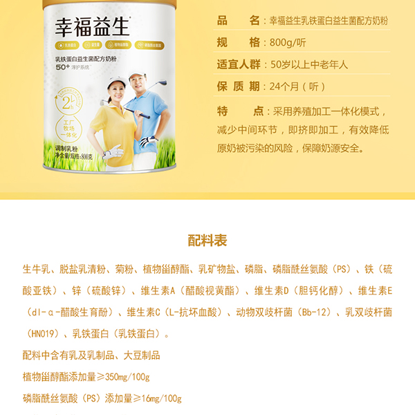 幸福益生 中老年配方奶粉;乳铁蛋白益生菌配方奶粉;