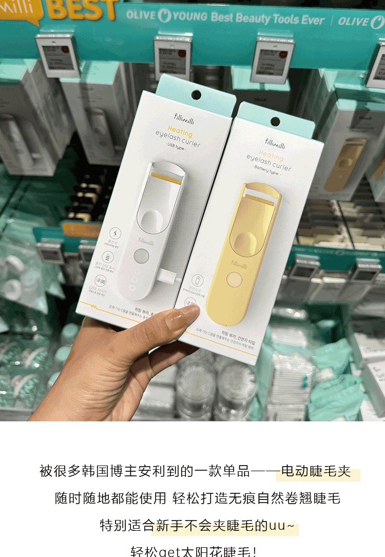 【园园韩国采购】韩国fillimilli 多功能眼部眼影刷/扇形阴影刷/电烫睫毛夹加热卷翘纤长充电款 电池款