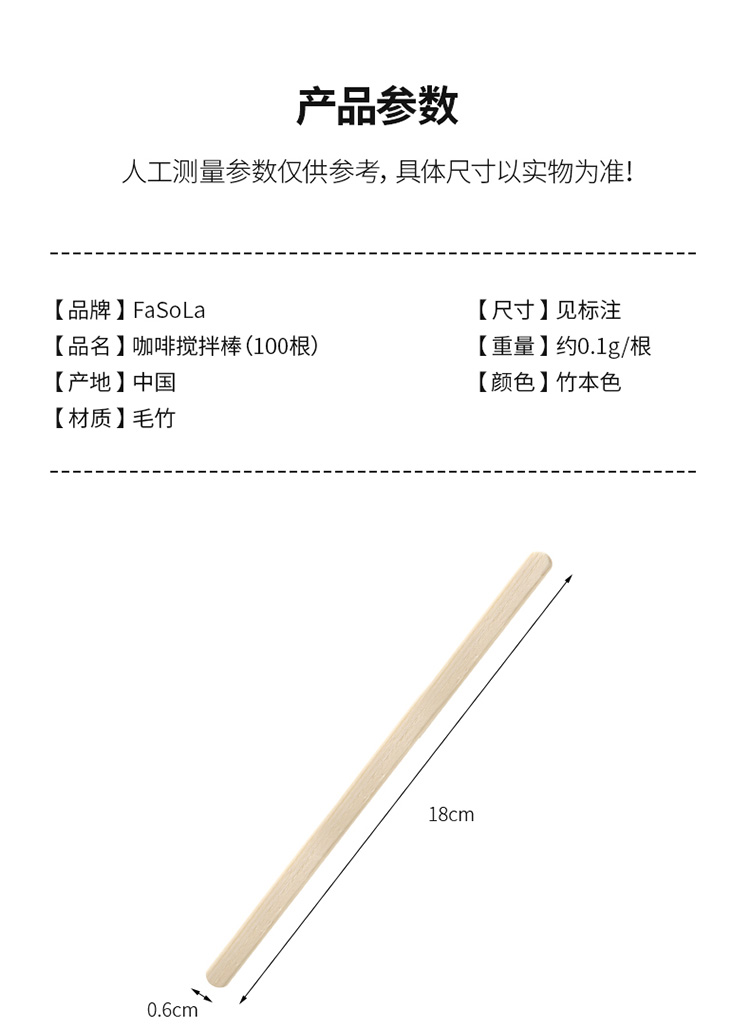 FaSoLa咖啡搅拌棒一次性蜂蜜饮品木质婴儿奶粉搅拌棒长柄独立包装