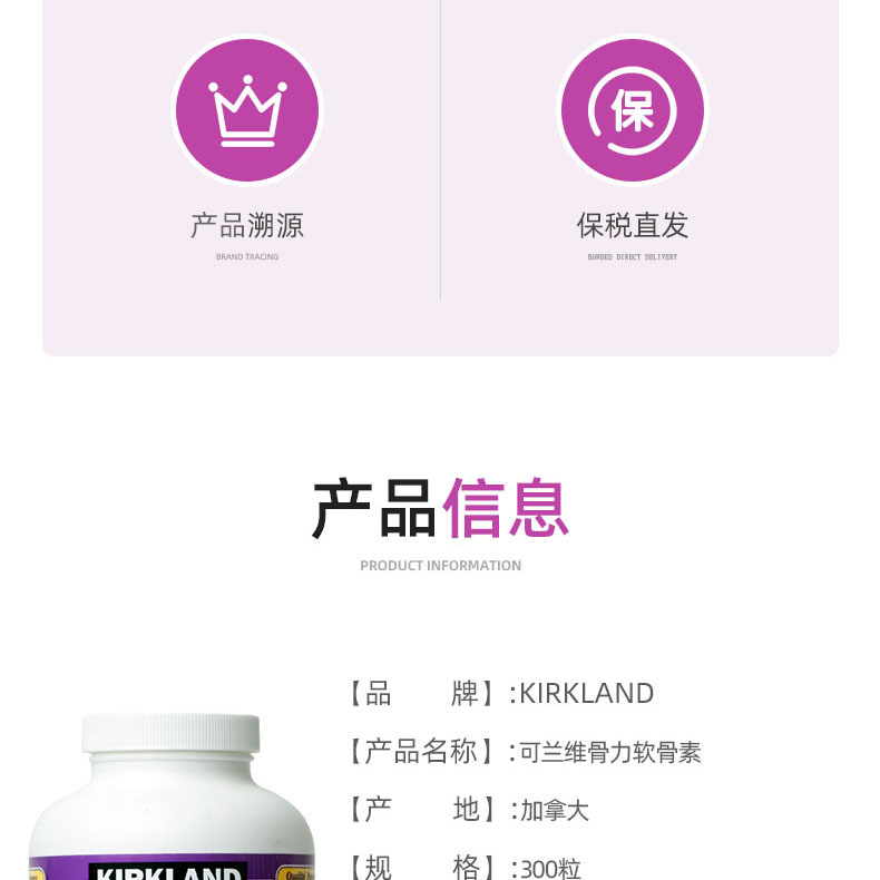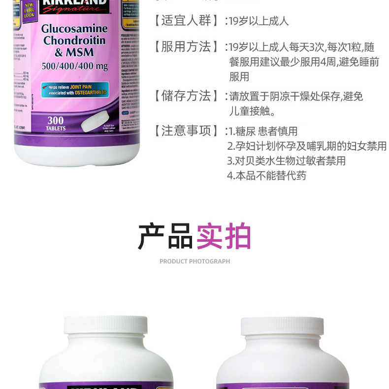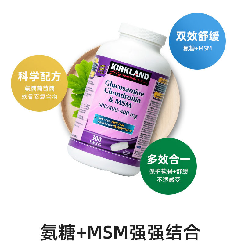 Kirkland维骨力氨糖软骨素MSM关节润滑300粒1瓶 #石家庄仓