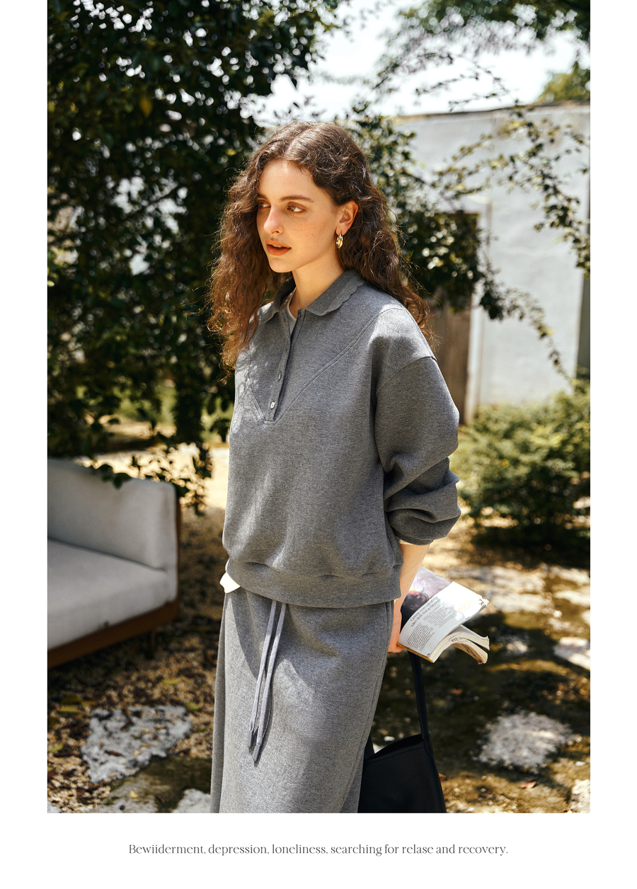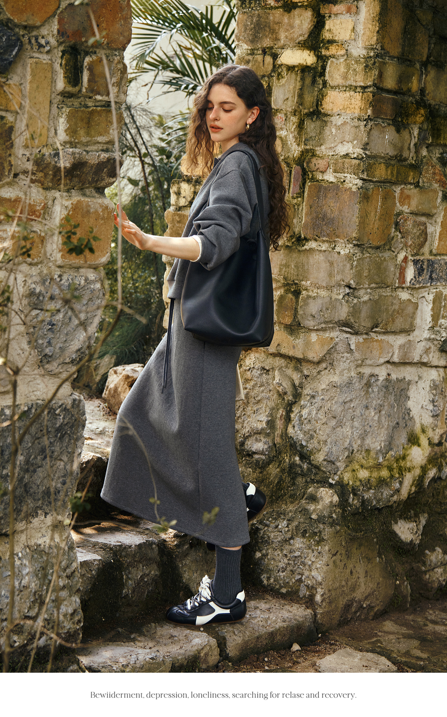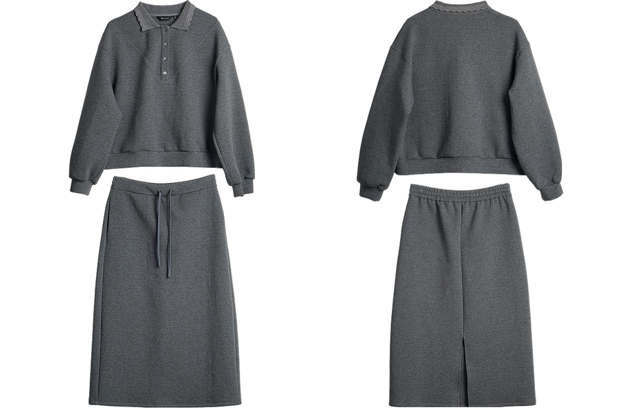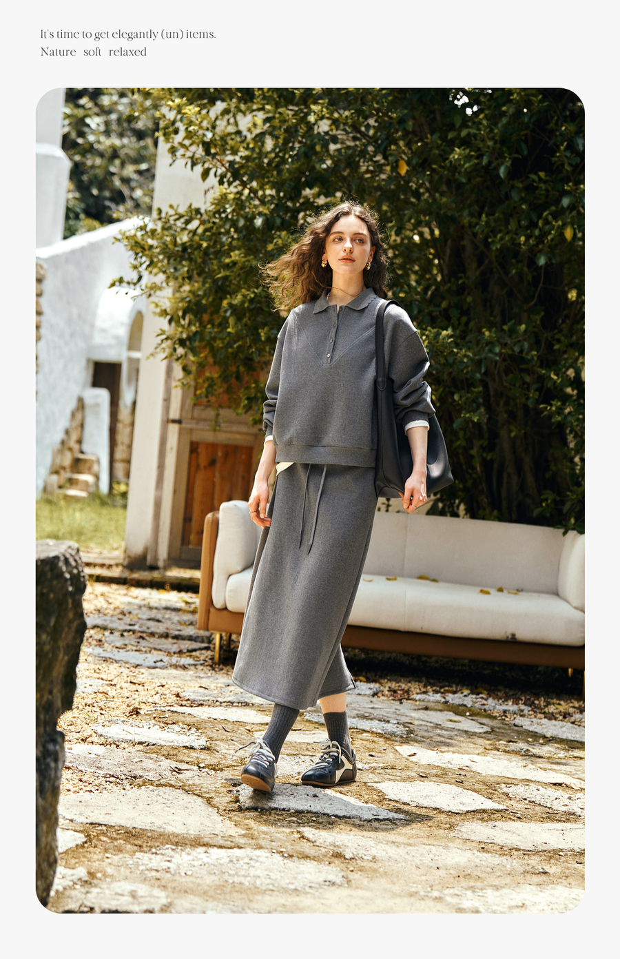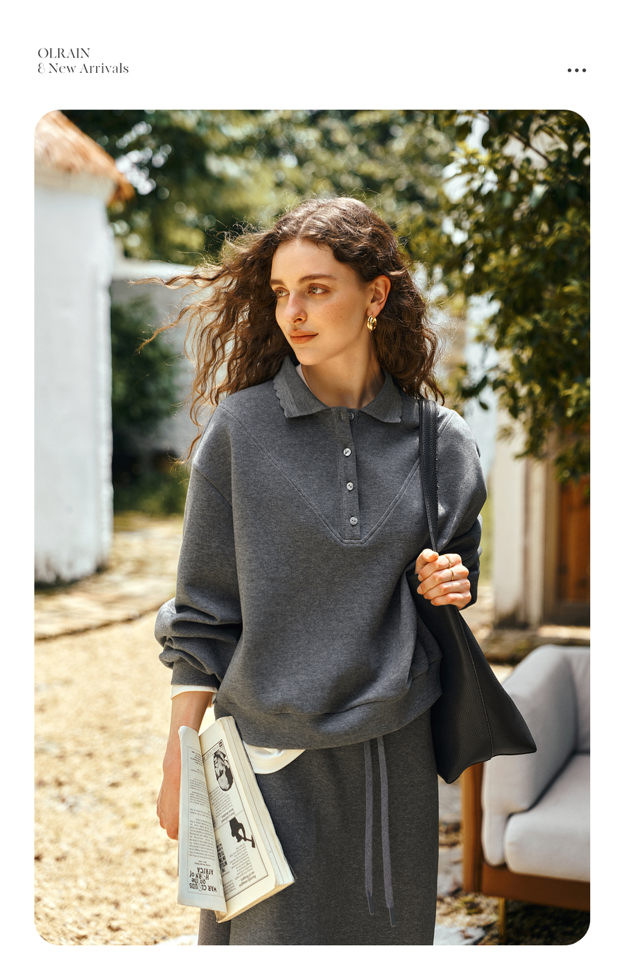 OLrain欧芮儿2025秋季新款女气质格雷系设计感深灰色上衣半裙套装