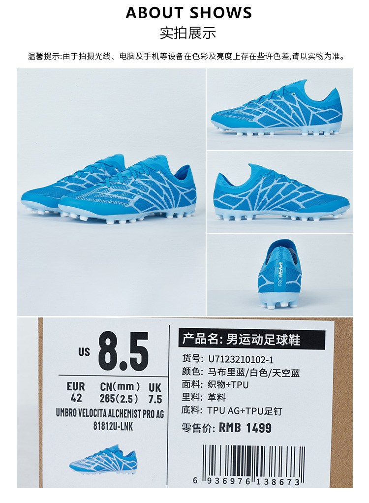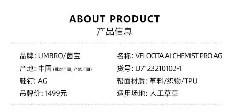 SFS茵宝UMBRO VELOCITA ALCHEMIST PRO高端短钉AG人草低帮足球鞋