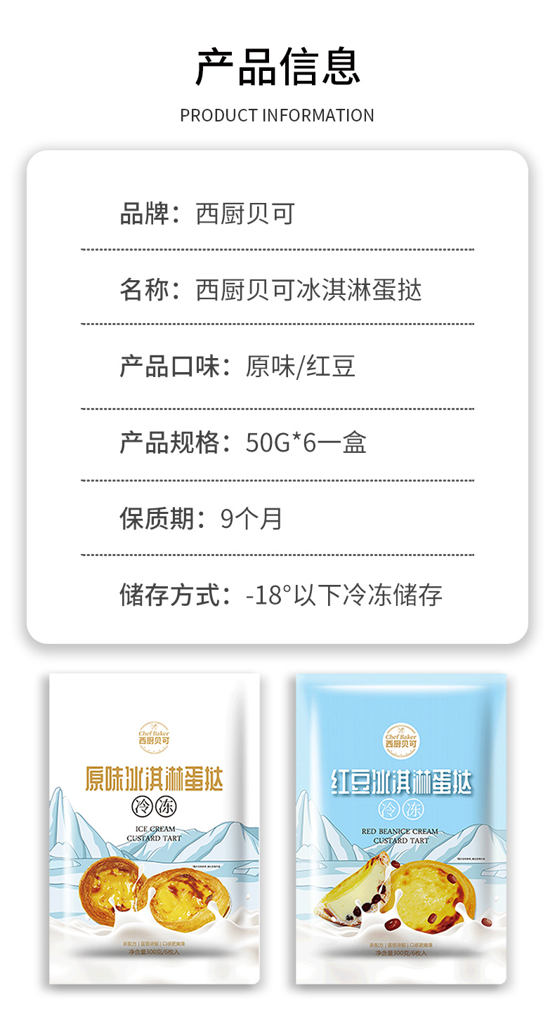 2袋西厨贝可冰淇淋蛋挞 原味+红豆味 香糯微甜下午茶