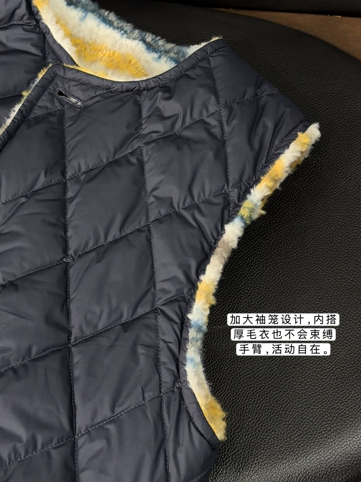 袖笼设计,内搭厚毛衣也不会束缚手臂,