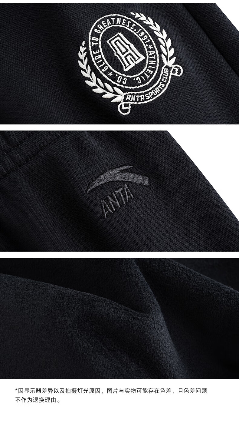 安踏加绒针织运动裤 女秋冬新款高腰宽松保暖收口休闲卫裤162548304N 基础黑-3
