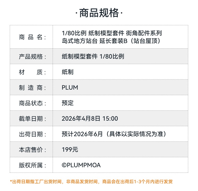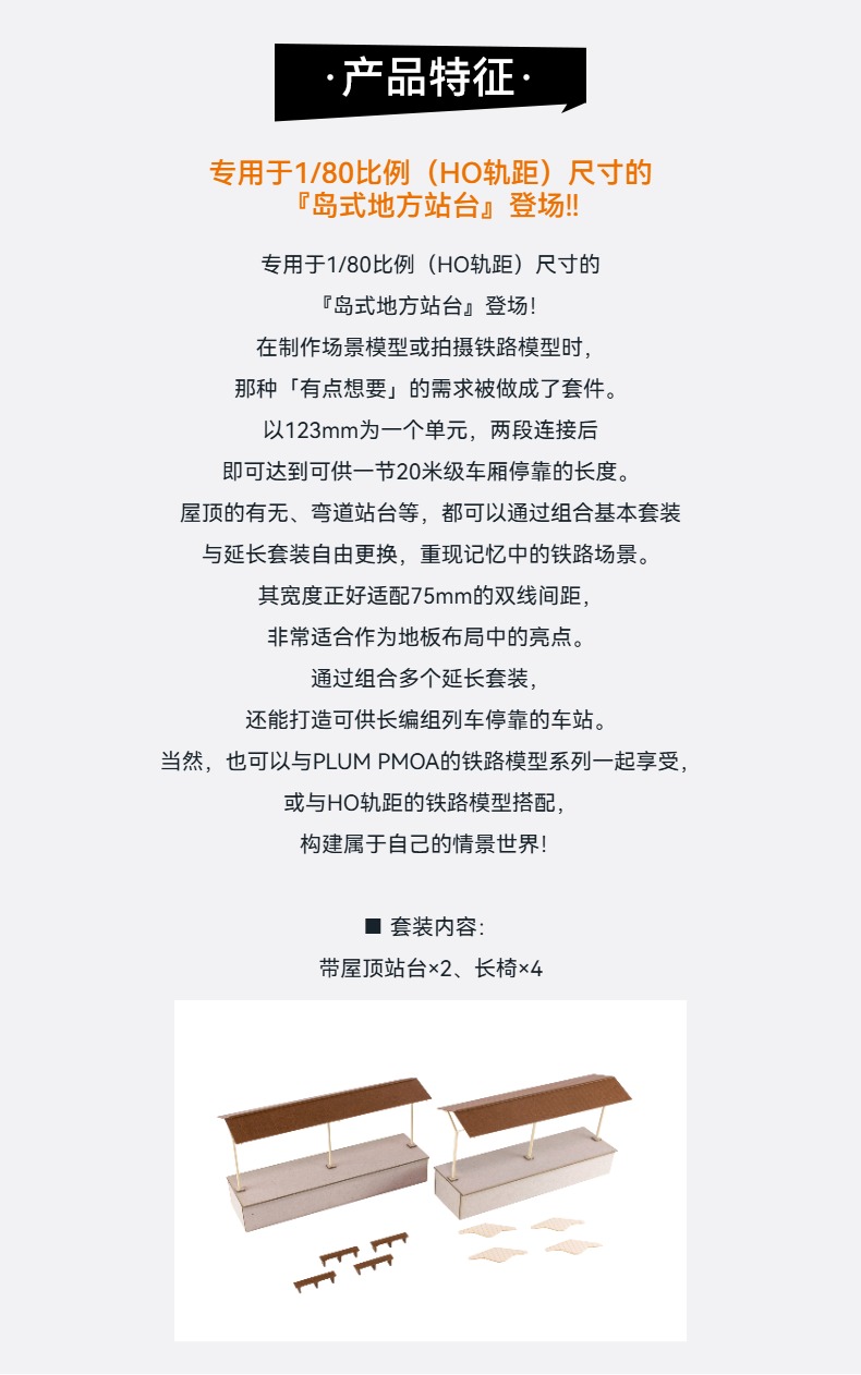 【GSC预售定金】1/80比例 纸制模型套件 街角配件系列 岛式地方站台 延长套装B(站台屋顶)